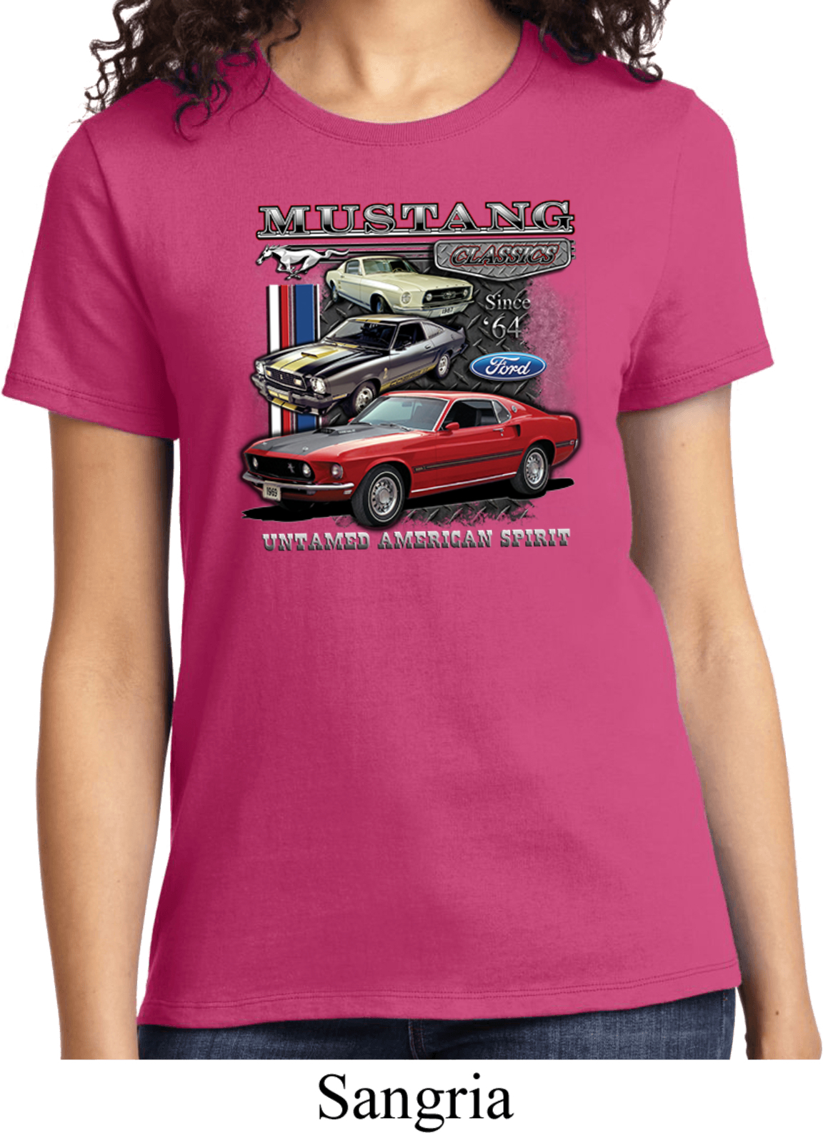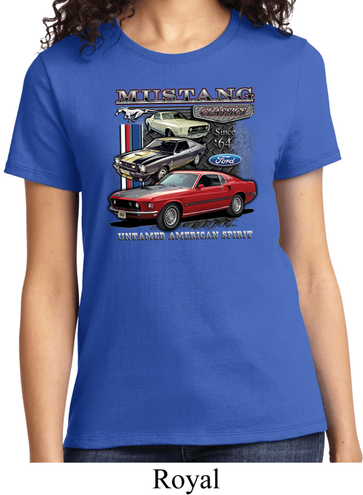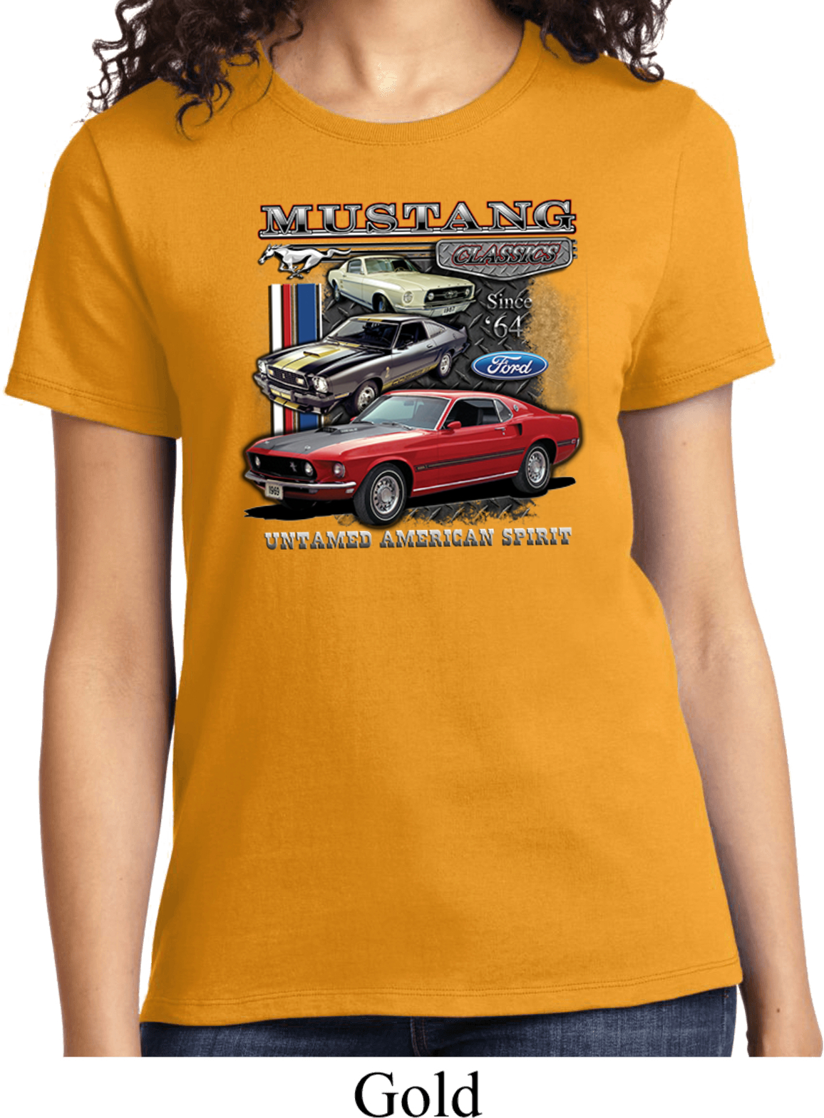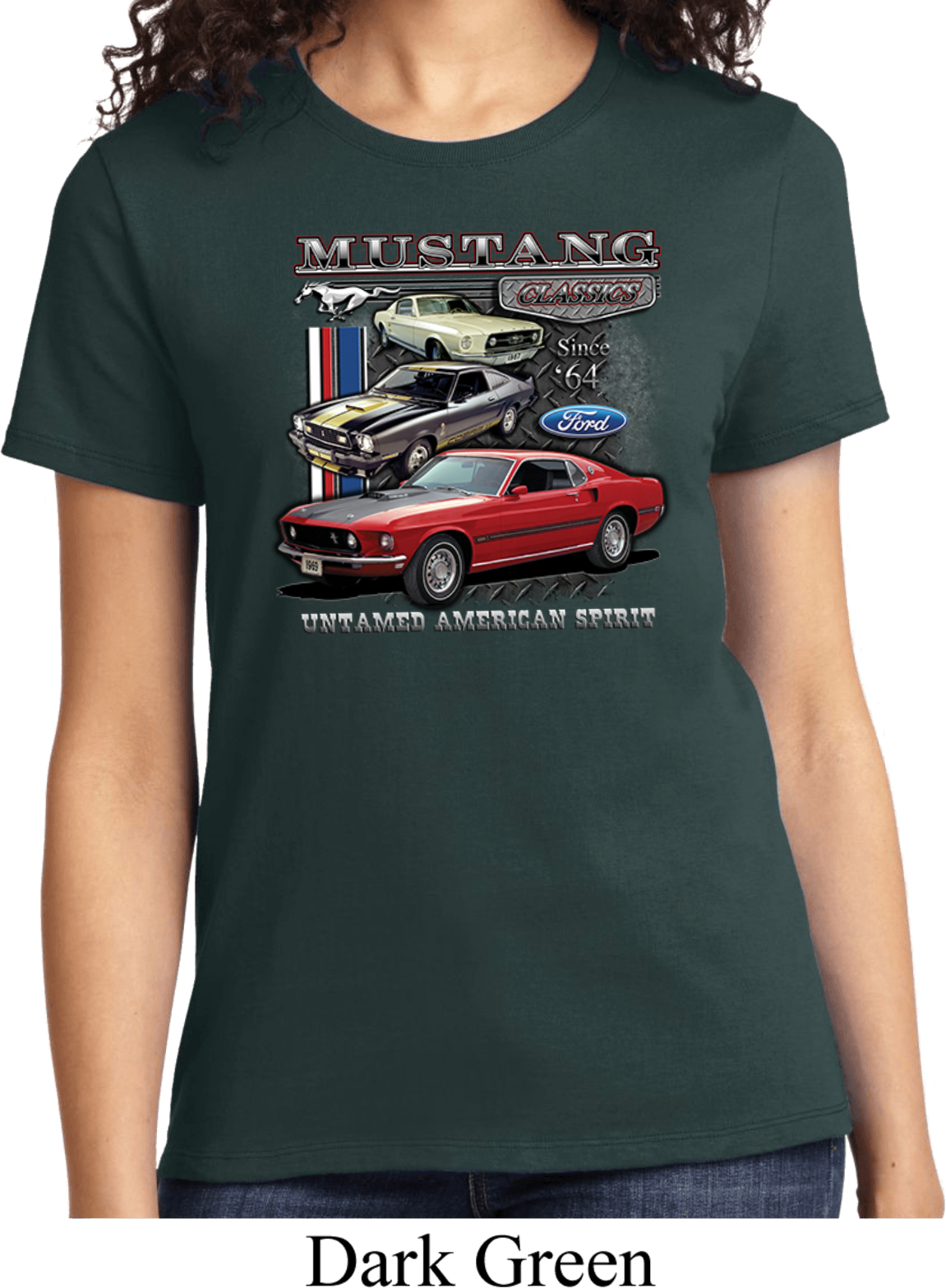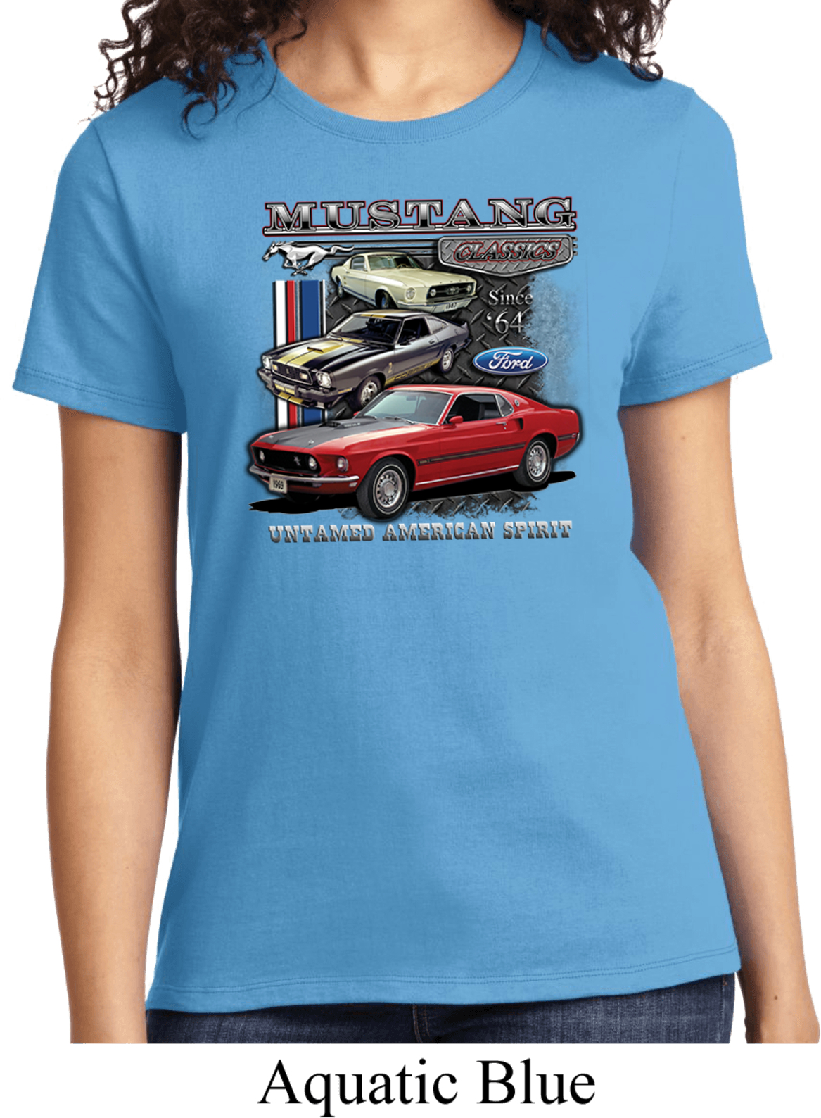 | | Ladies Ford Tee Classic Mustangs Untamed T-shirtA ladies t-shirt featuring Ford Mustang Classics since 1964, Untamed American Spirit. Our ladies shirt is made of 100% cotton. (Athletic Heather is made with a blend of cotton/poly) Available in sizes Small through 4XL. Machine wash cold with like colors; dry low heat. ![]() |