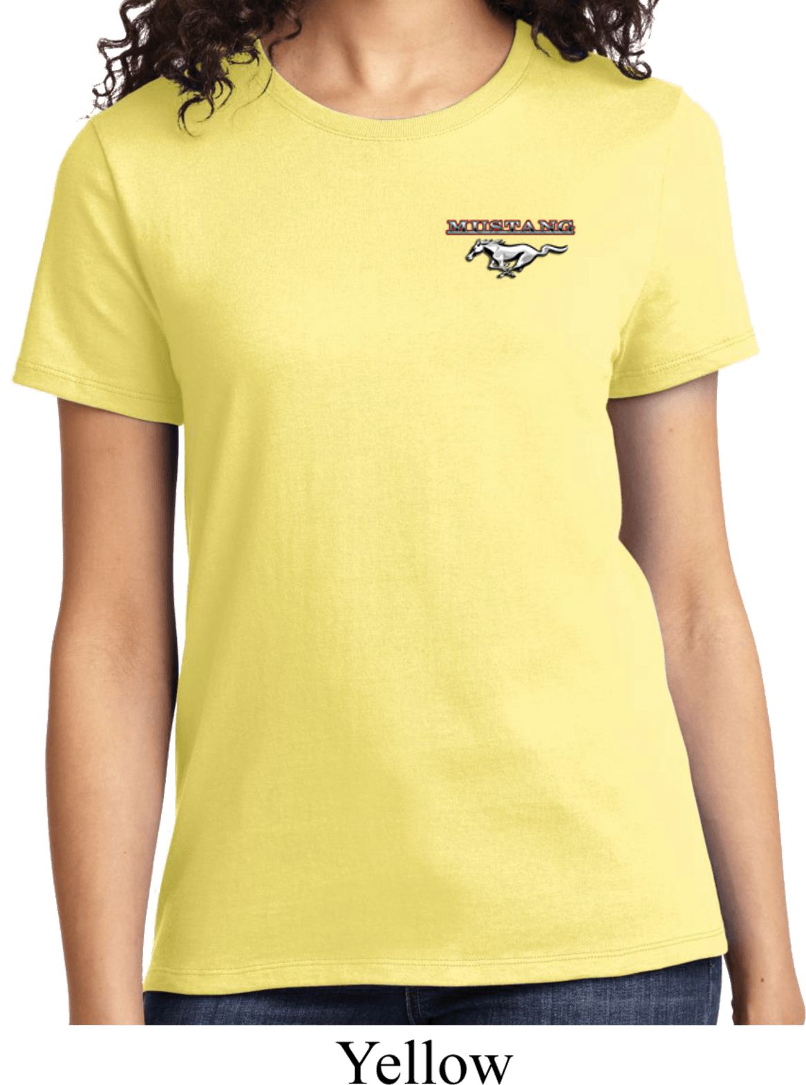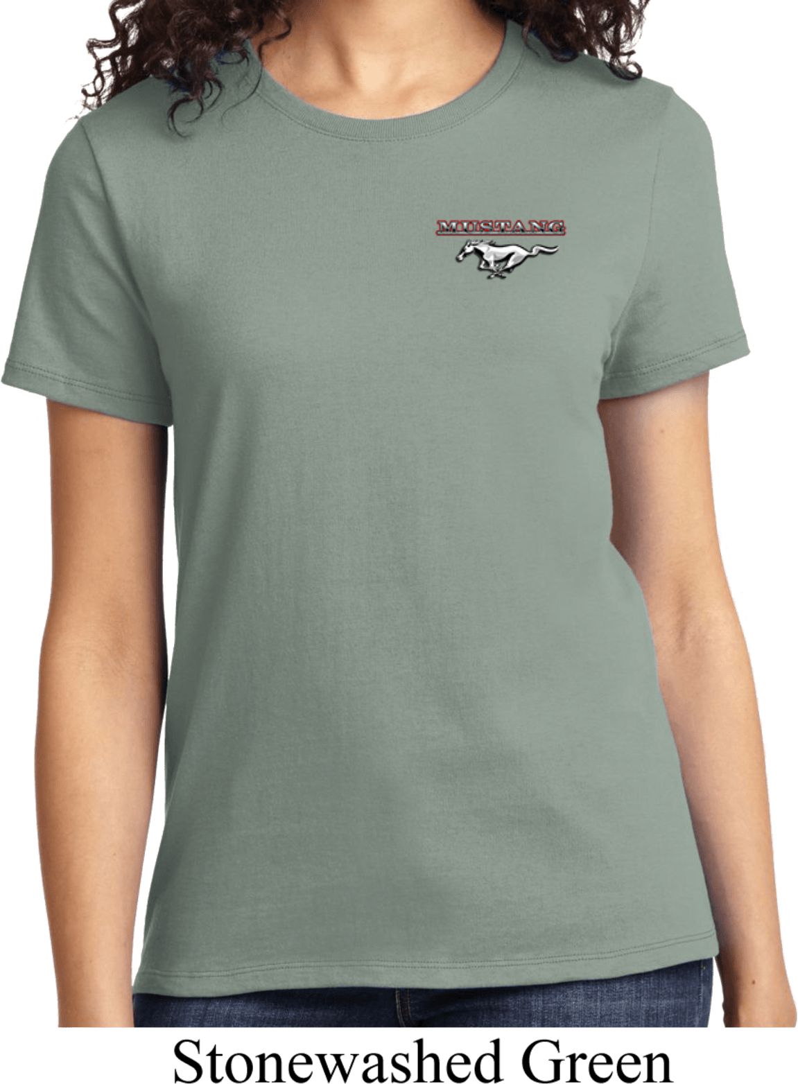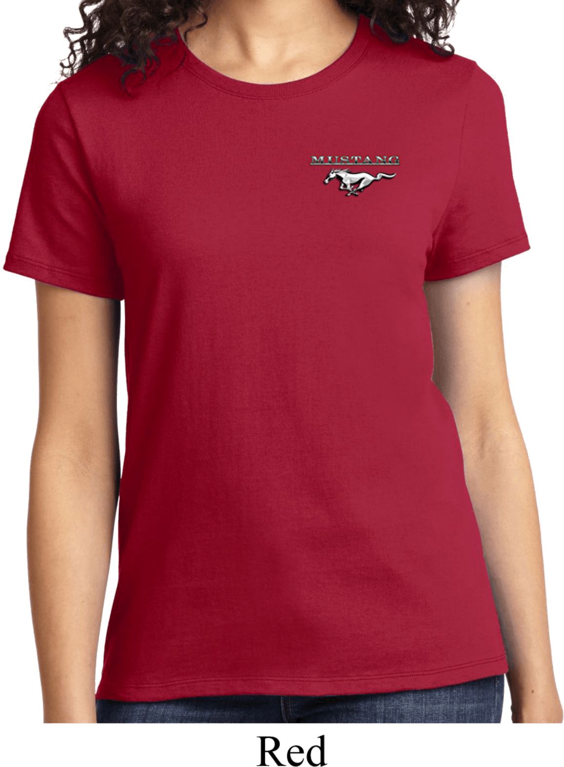 | | Ladies Ford Tee Mustang Pocket Print T-shirtA classic ladies shirt featuring Ford Mustang as a pocket print. Our ladies tee is made of 100% cotton. (Ash and Athletic Heather are made with a blend of cotton/poly) Available in sizes Small through 4XL. Machine wash cold with like colors; dry low heat. Please note: This shirt does not have a pocket. ![]() |