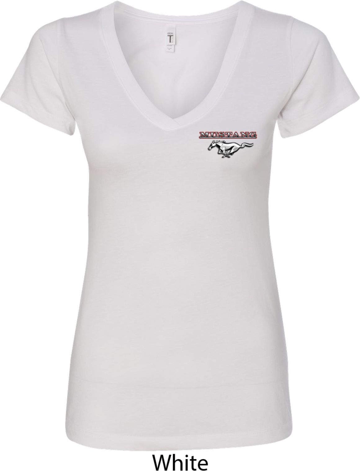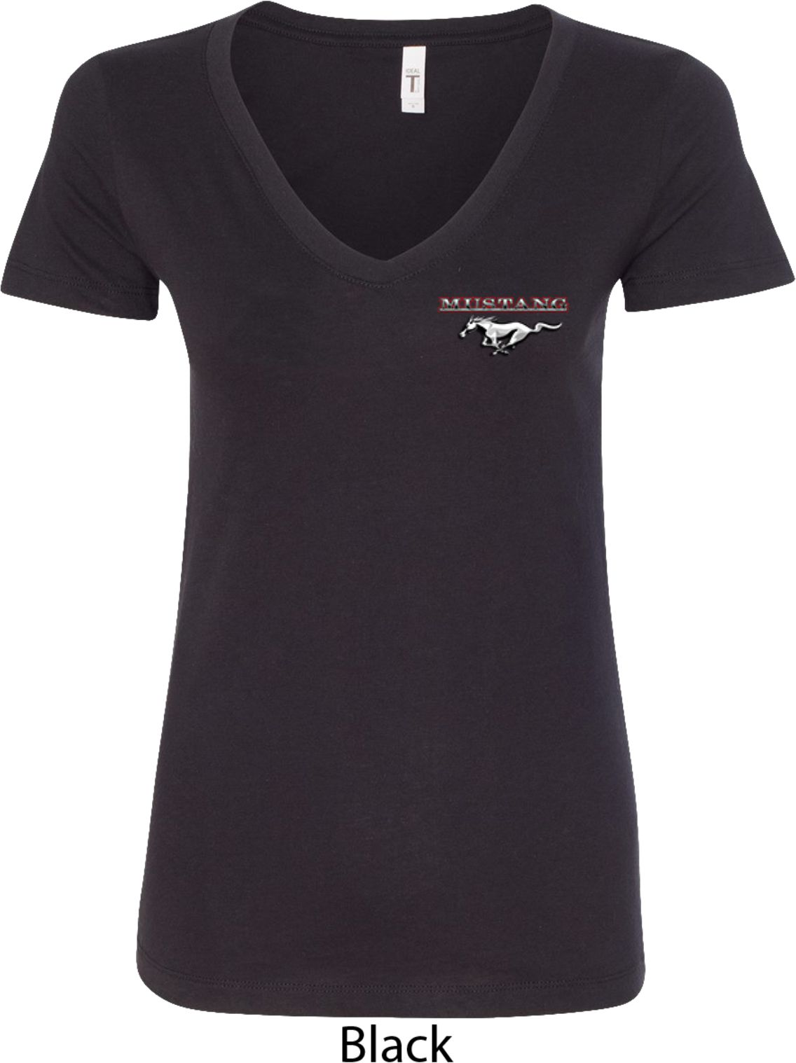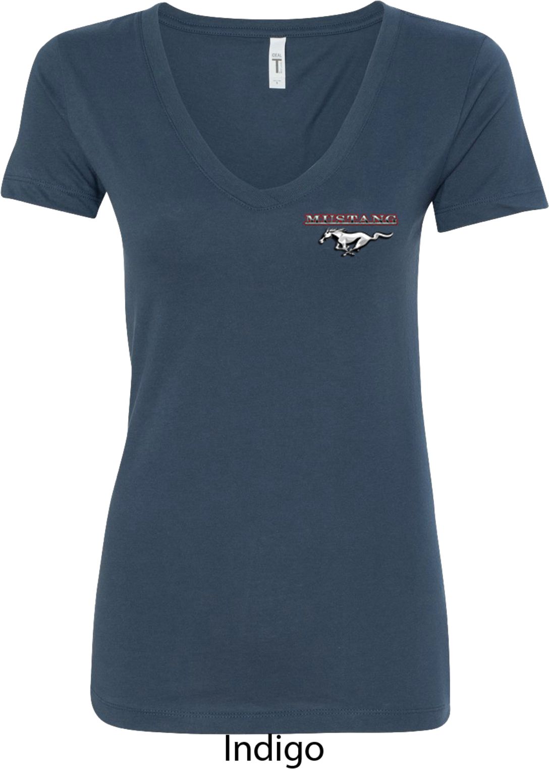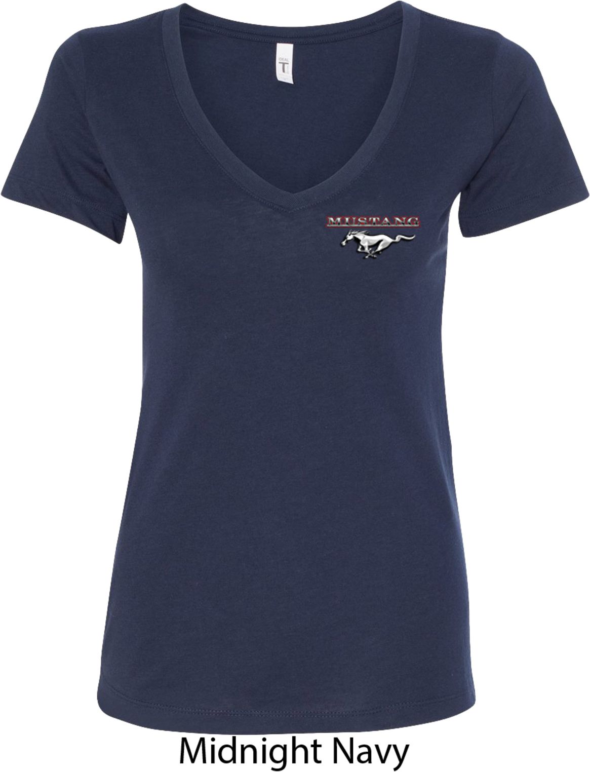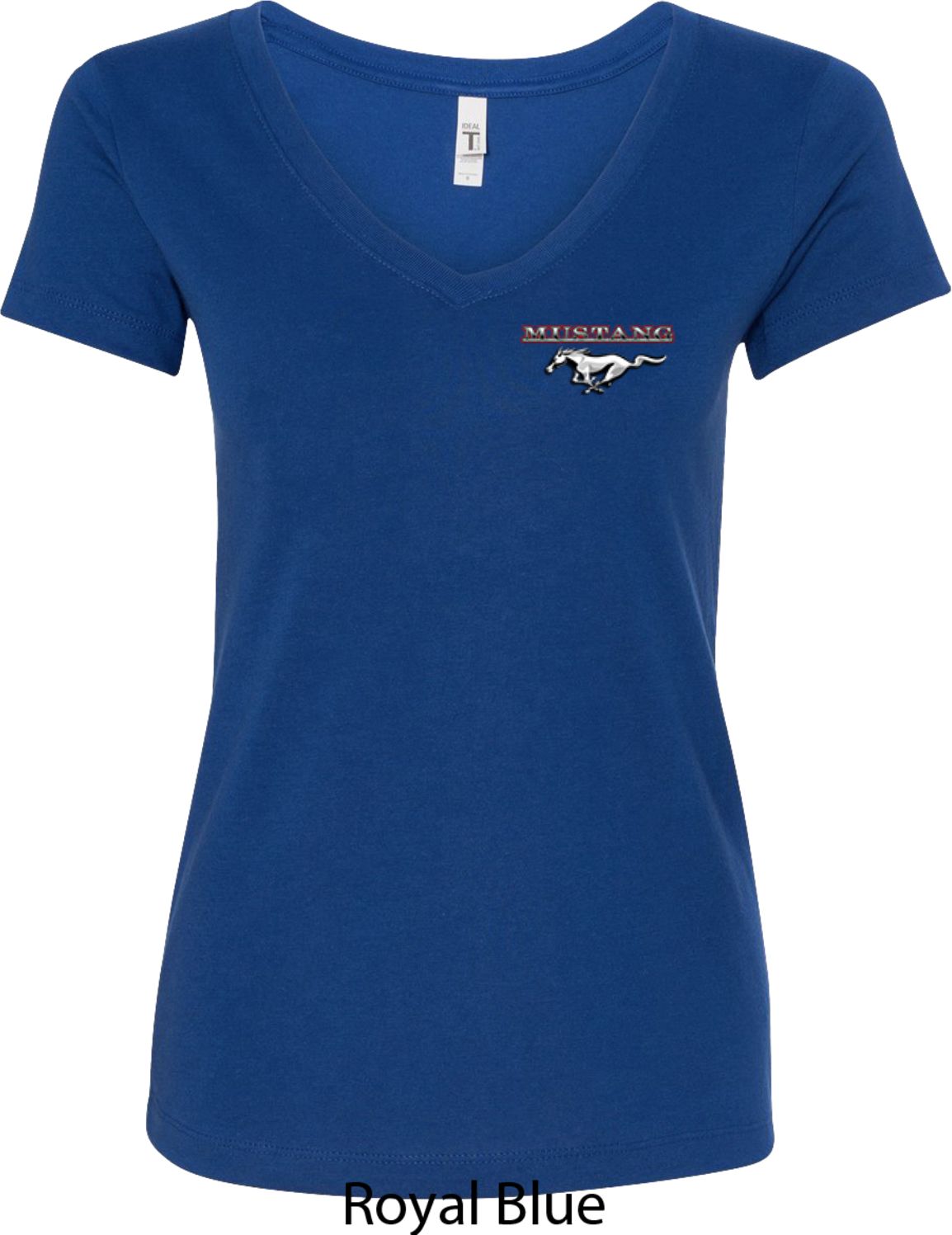 | | Ladies Ford Tee Mustang Pocket Print V-neck ShirtA fitted ladies v-neck featuring Ford Mustang as a pocket print. Our ladies tee is made with a blend of cotton/poly. Available in sizes Small through 2XL. Machine wash cold with like colors; dry low heat. Please note: This shirt does not have a pocket. ![]() |