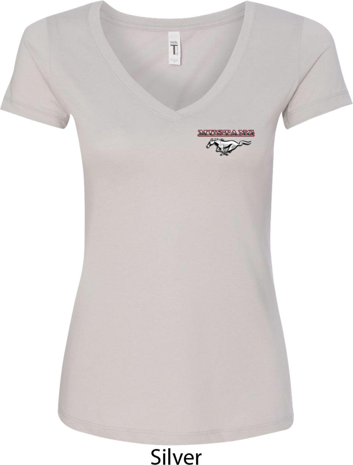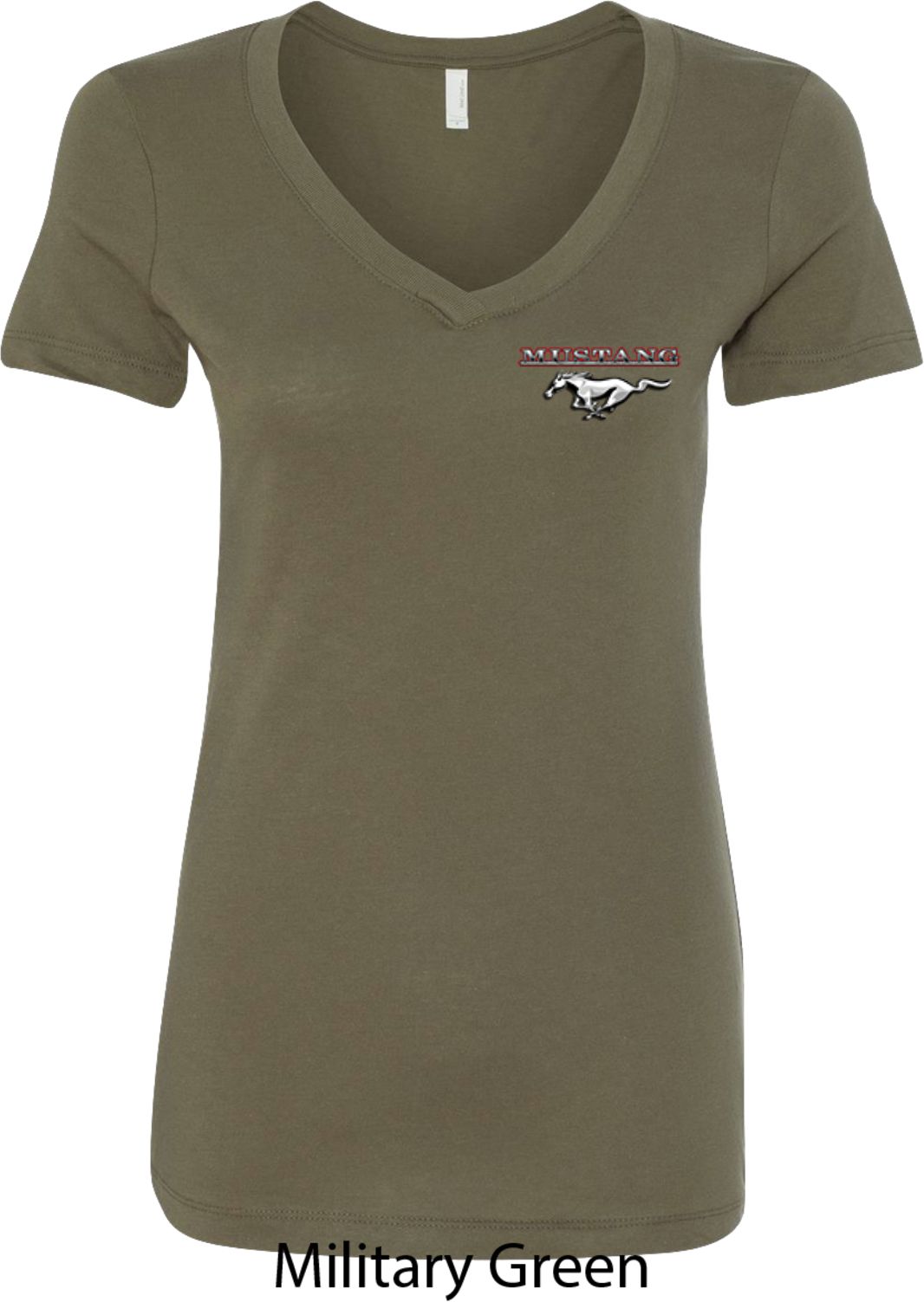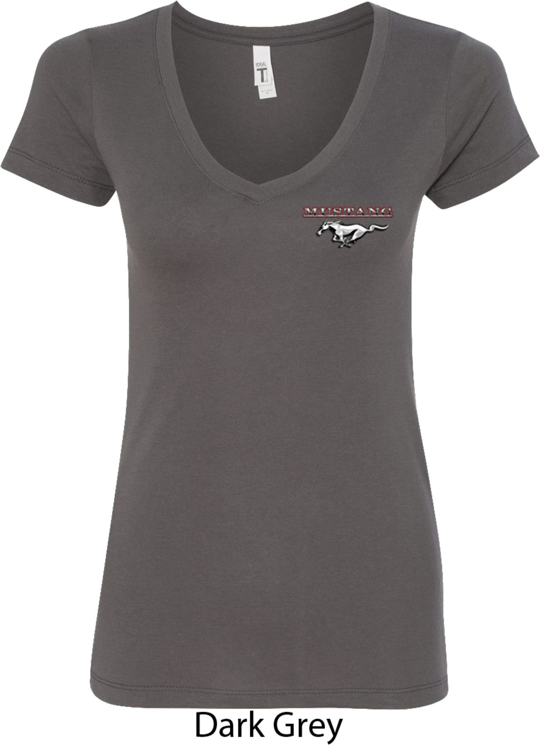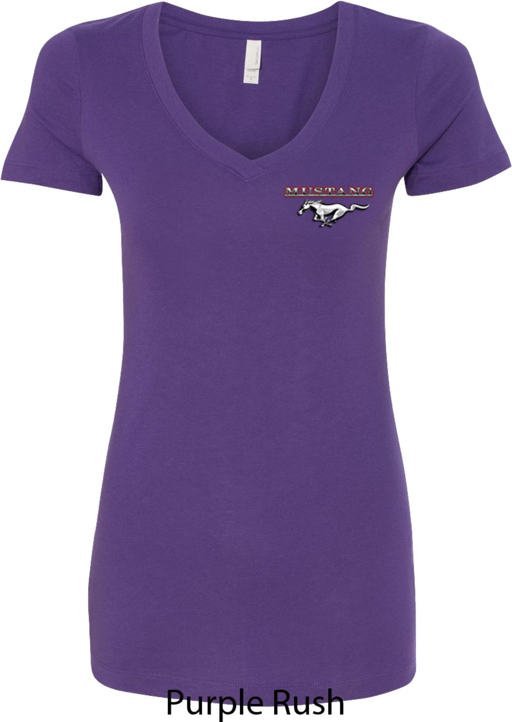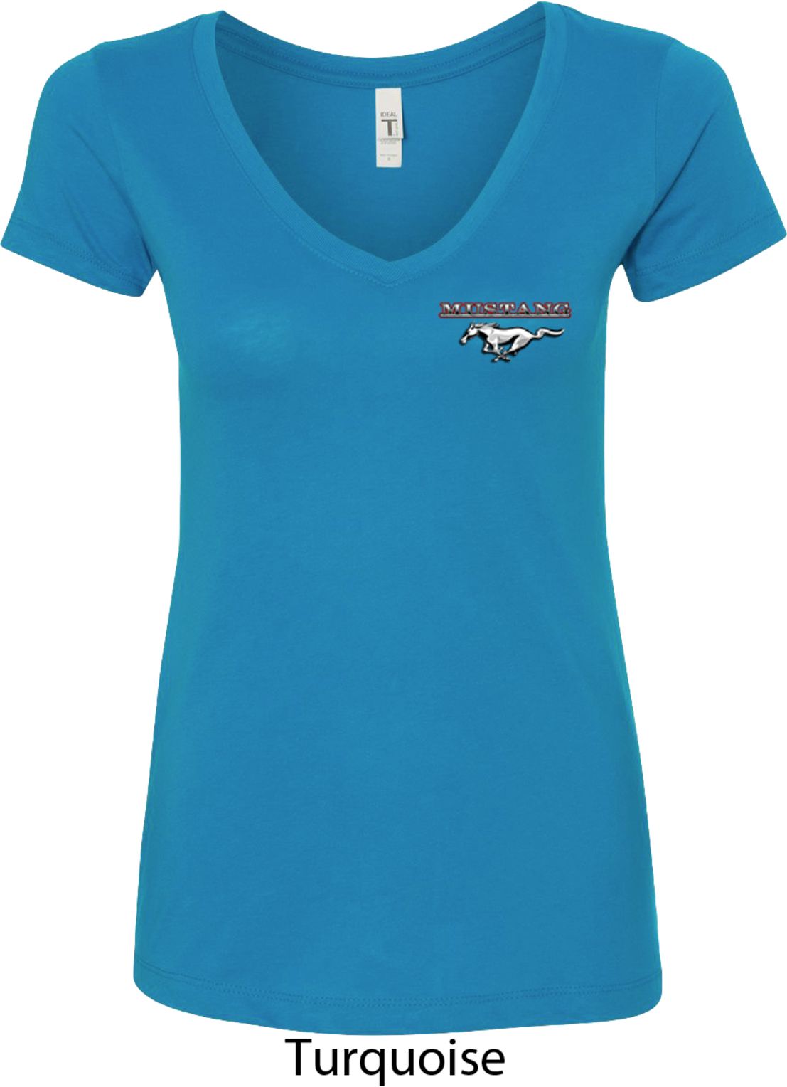 | | Ladies Ford Tee Mustang Pocket Print V-neck ShirtA fitted ladies v-neck featuring Ford Mustang as a pocket print. Our ladies tee is made with a blend of cotton/poly. Available in sizes Small through 2XL. Machine wash cold with like colors; dry low heat. Please note: This shirt does not have a pocket. ![]() |