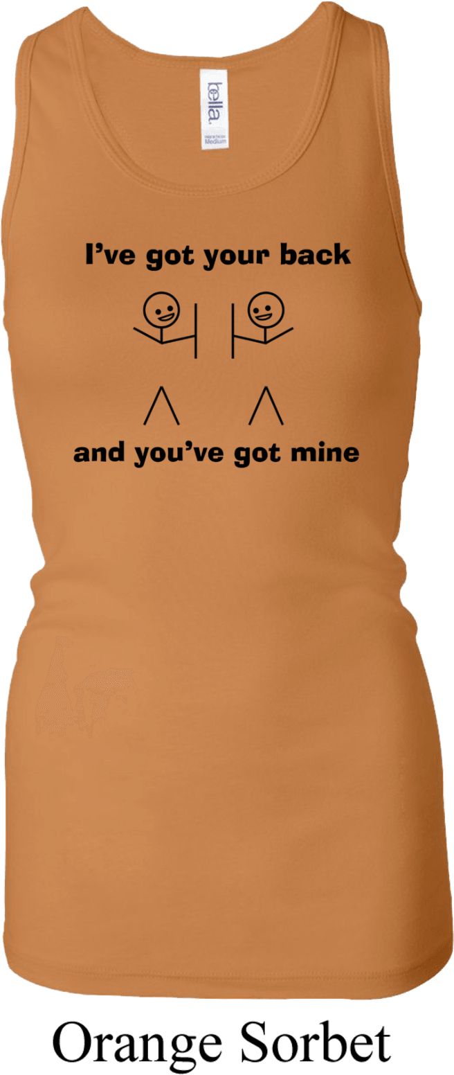 | | Ladies Funny Tanktop I've Got Your Back Longer Length Racerback TankLadies Funny Tanktop I've Got Your Back Longer Length Racerback Tank A cotton/spandex blend Available in Ladies Small, Ladies Medium, Ladies Large, Ladies XL & Ladies 2XL Also available in colors Berry, Ocean Blue, Orange Sorbet, Pink, Red, Teal, and White ![]() |