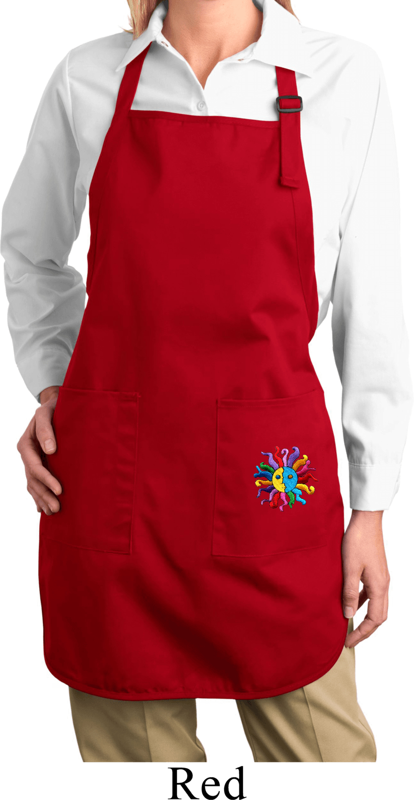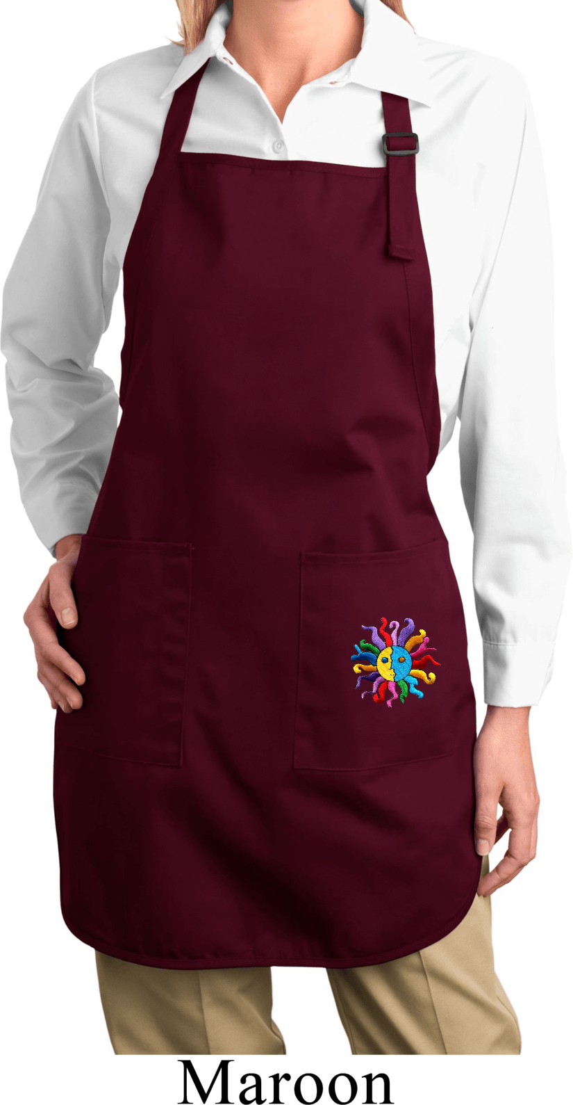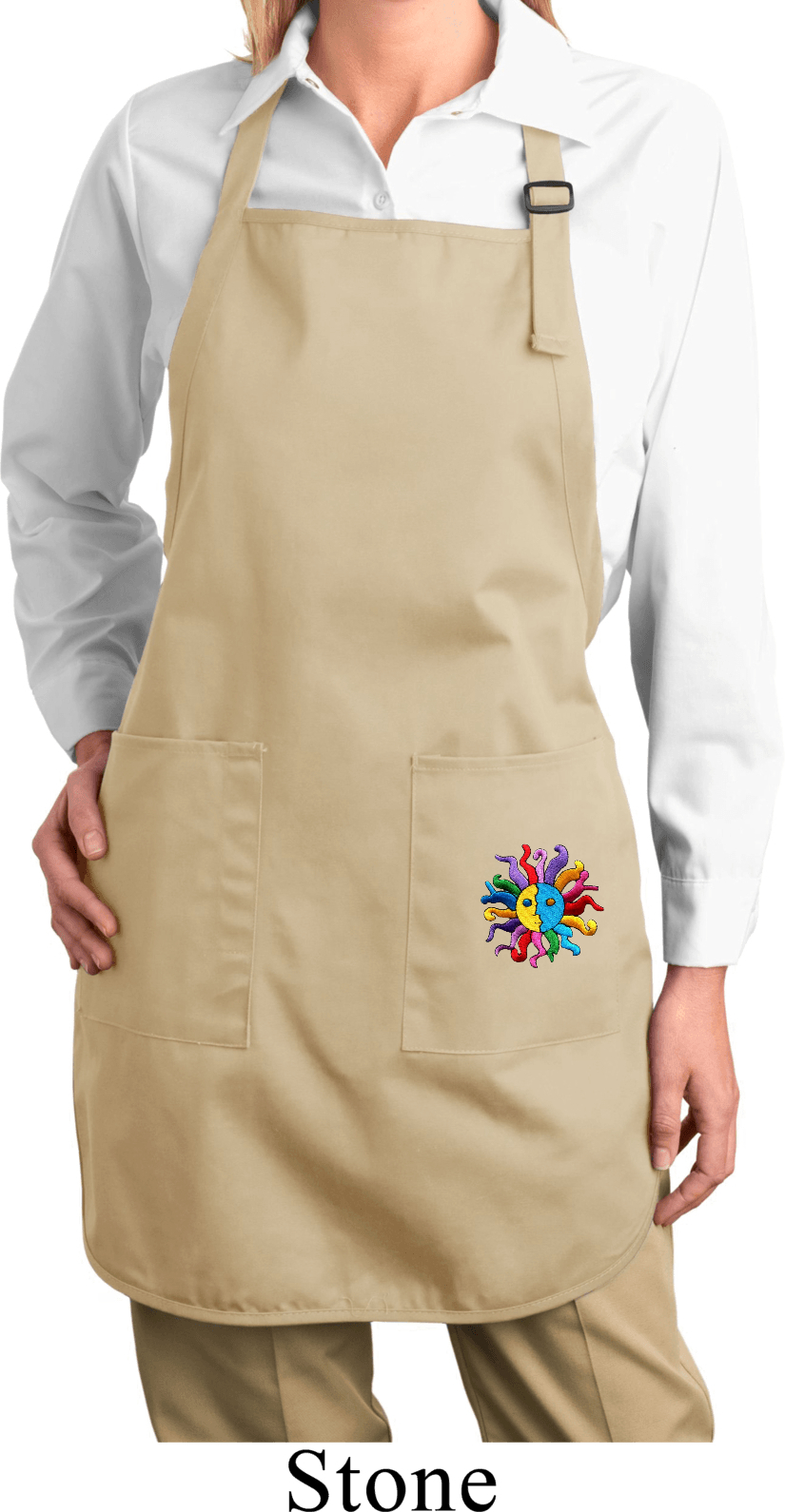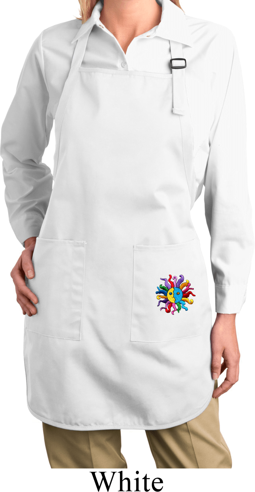 | | Ladies Hippie Sun Patch Bottom Print Full Length Apron with PocketsLadies Hippie Sun Patch Bottom Print Full Length Apron with Pockets A 100% cotton twill One Size Also available in colors Black, Coffee, Hunter Green, Maroon, Navy, Red, Royal, Stone, Washed Denim, and White |