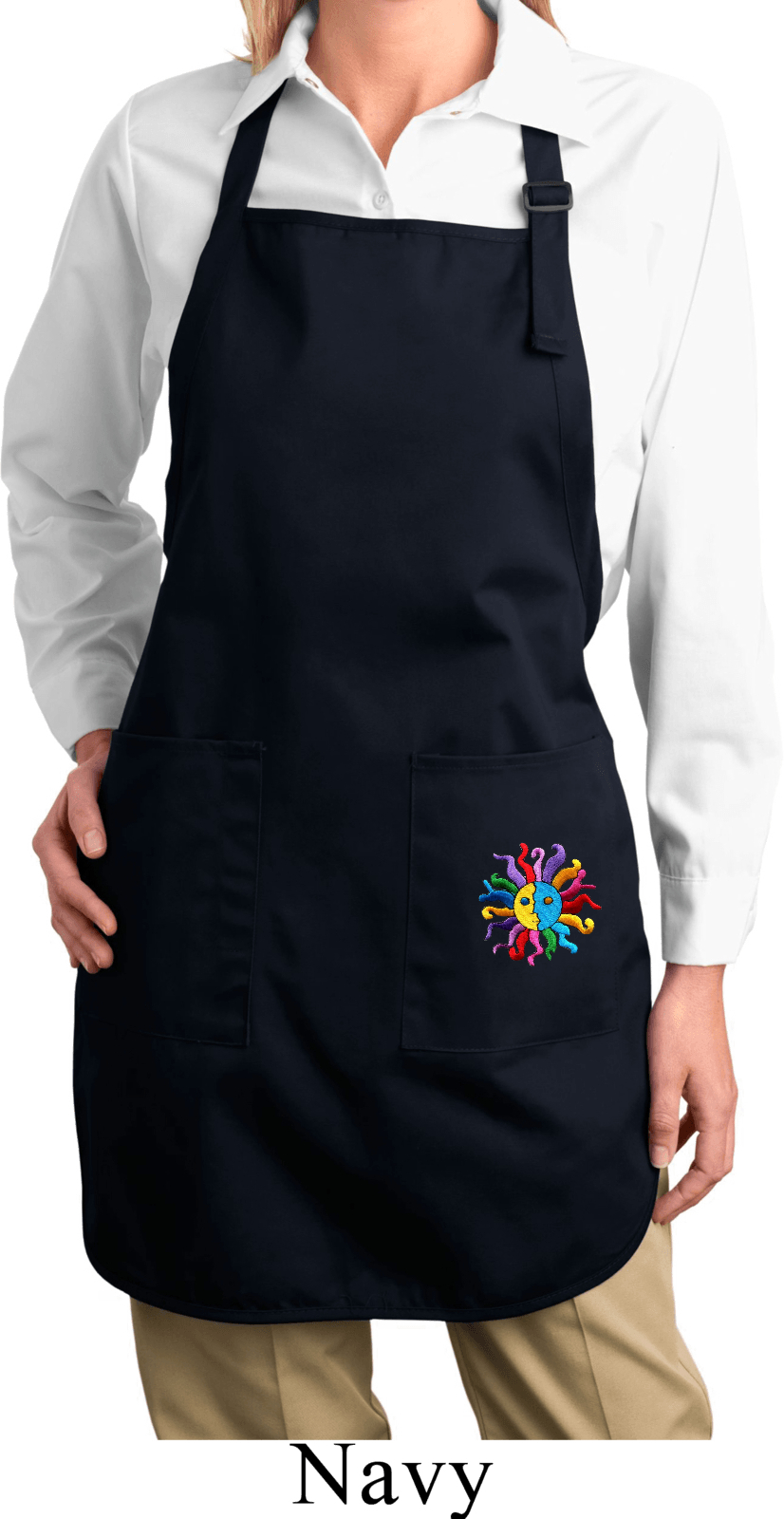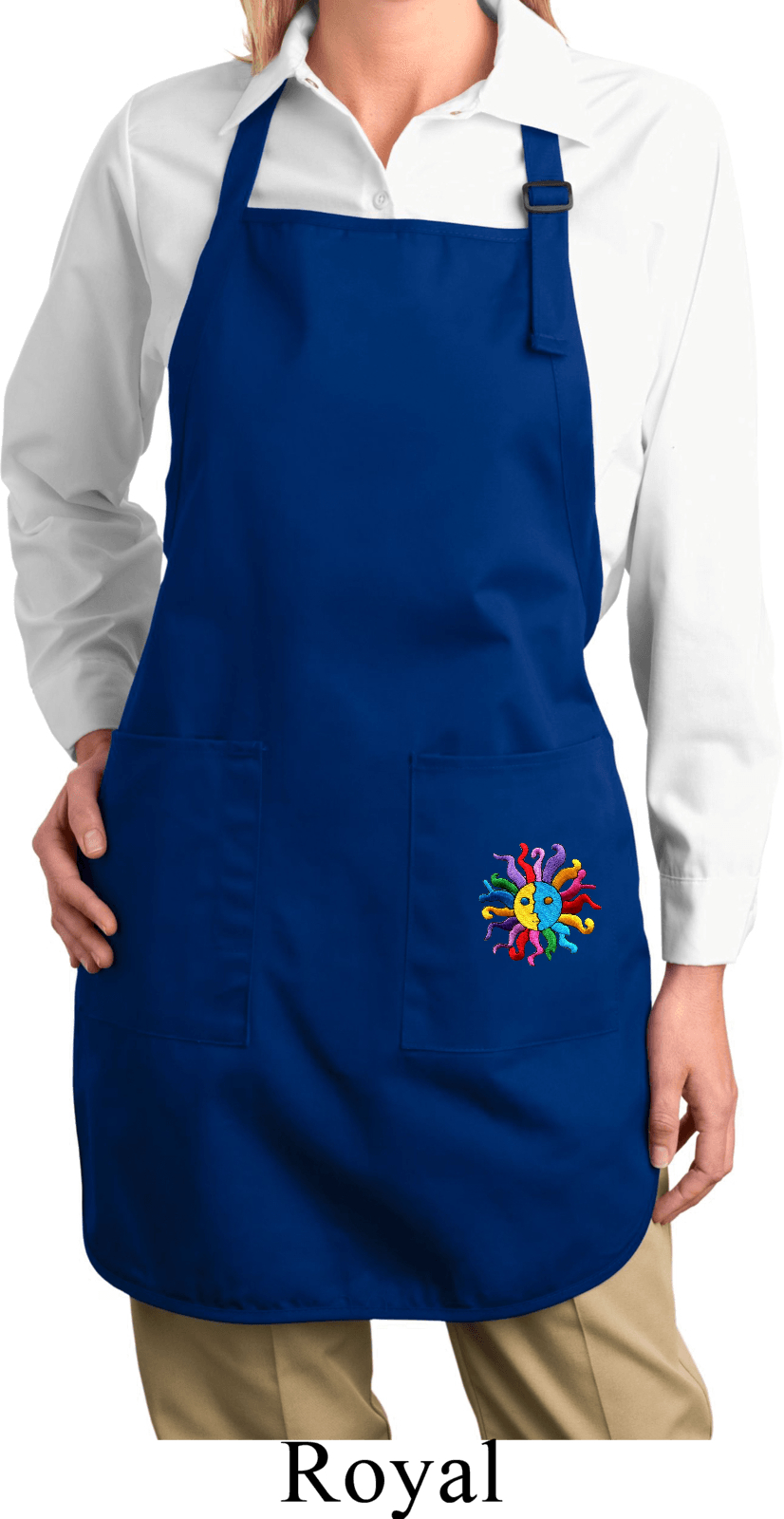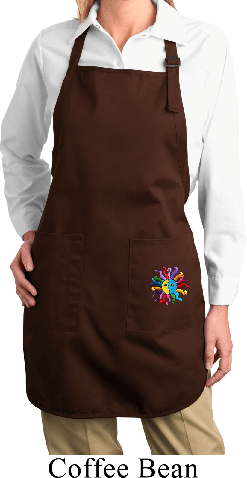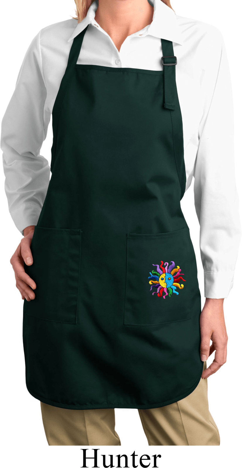 | | Ladies Hippie Sun Patch Bottom Print Full Length Apron with PocketsLadies Hippie Sun Patch Bottom Print Full Length Apron with Pockets A 100% cotton twill One Size Also available in colors Black, Coffee, Hunter Green, Maroon, Navy, Red, Royal, Stone, Washed Denim, and White |
