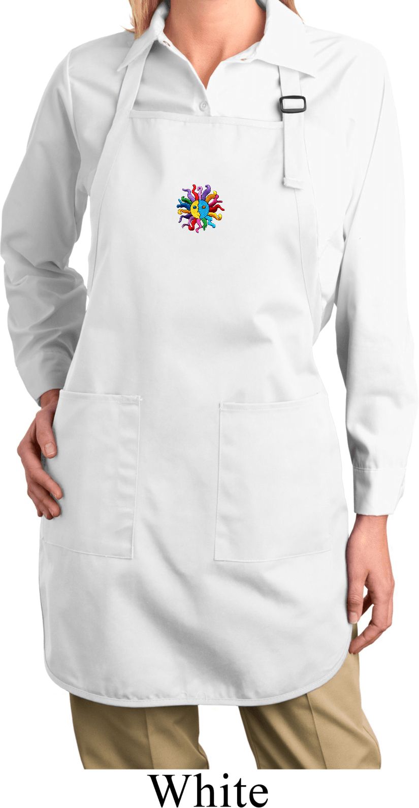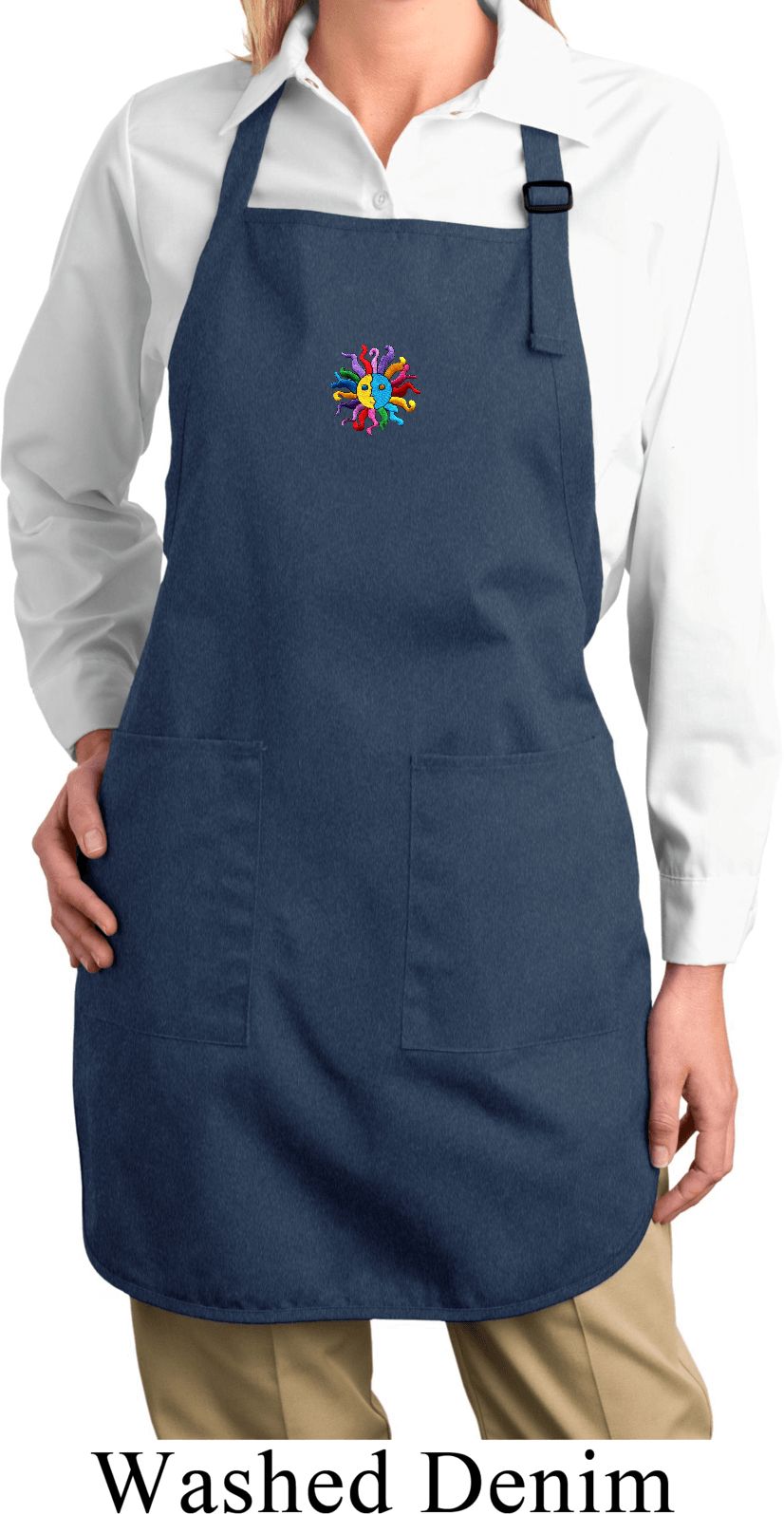 | | Ladies Hippie Sun Patch Middle Print Full Length Apron with PocketsLadies Hippie Sun Patch Middle Print Full Length Apron with Pockets A 100% cotton twill One Size Also available in colors Black, Coffee, Hunter Green, Maroon, Navy, Red, Royal, Stone, Washed Denim, and White |