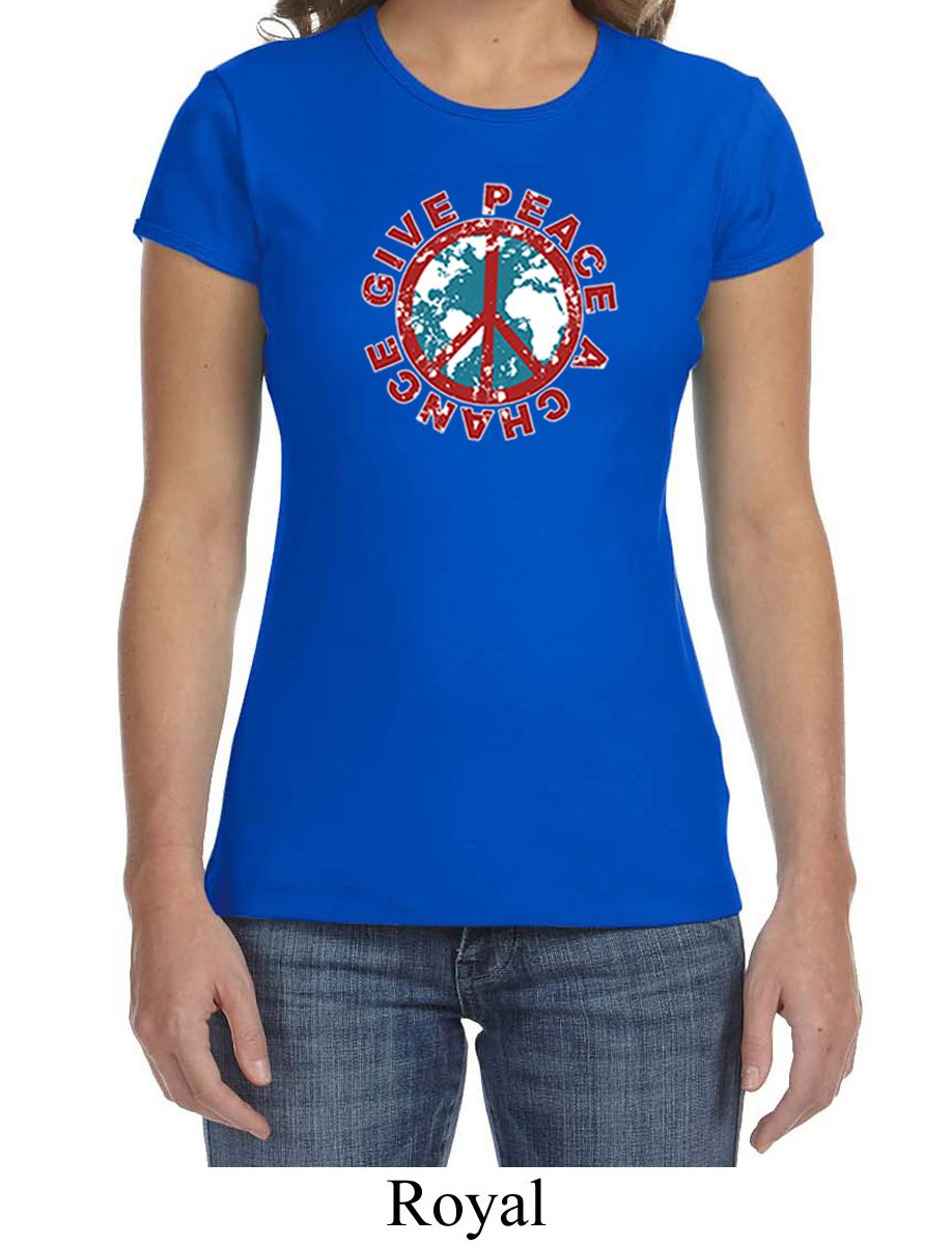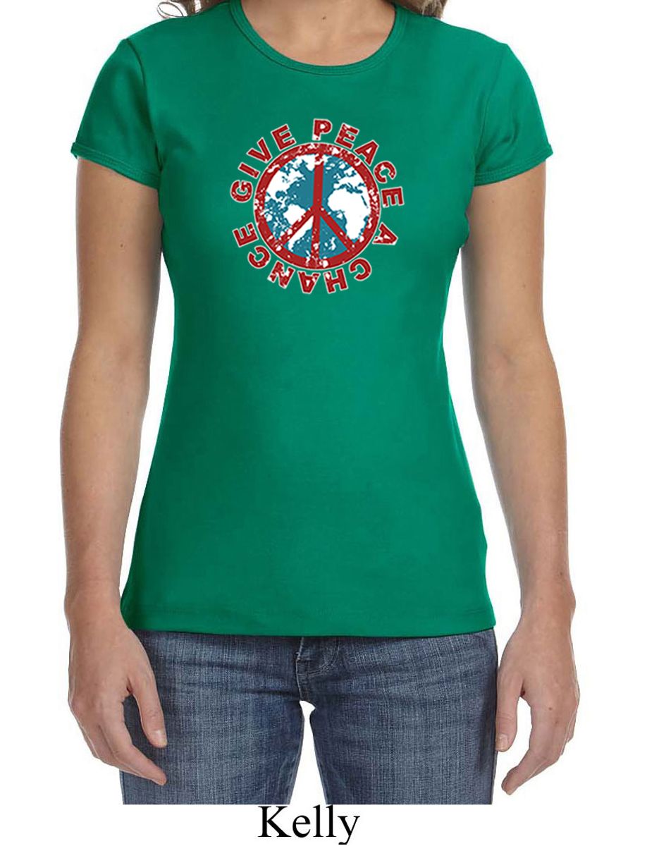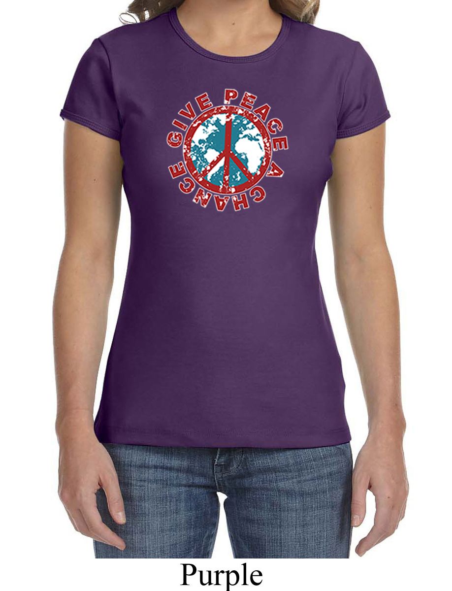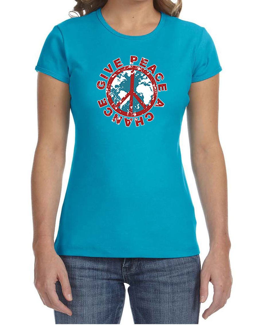 | | Ladies Peace Shirt Give Peace a Chance Crewneck Tee T-ShirtLadies Peace Shirt Give Peace a Chance Crewneck Tee T-Shirt 100% cotton Available in Ladies Small, Ladies Medium, Ladies Large, Ladies XL & Ladies 2XL Also available in colors Black, Chocolate, Fuschia, Kelly, Navy, Purple, Red, Royal, Turquoise, and White ![]() |