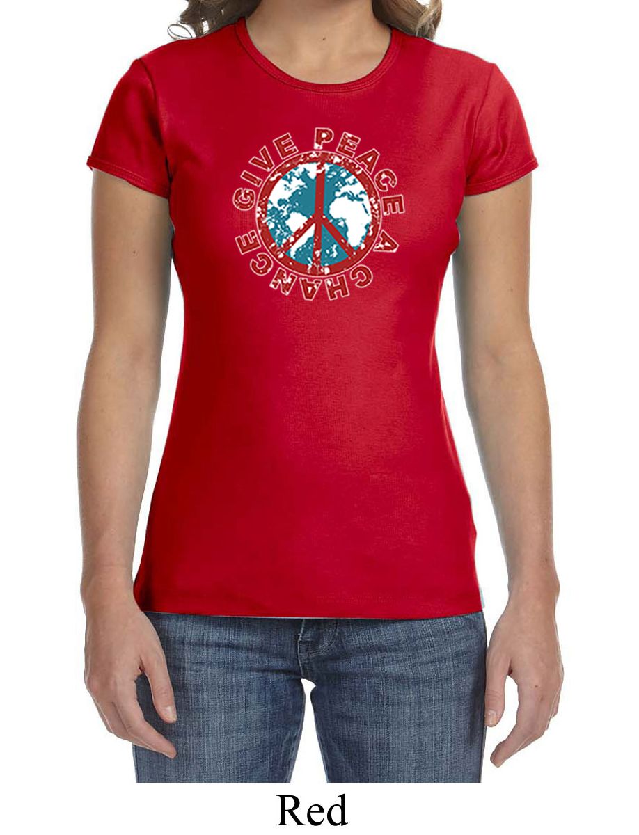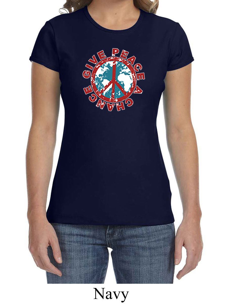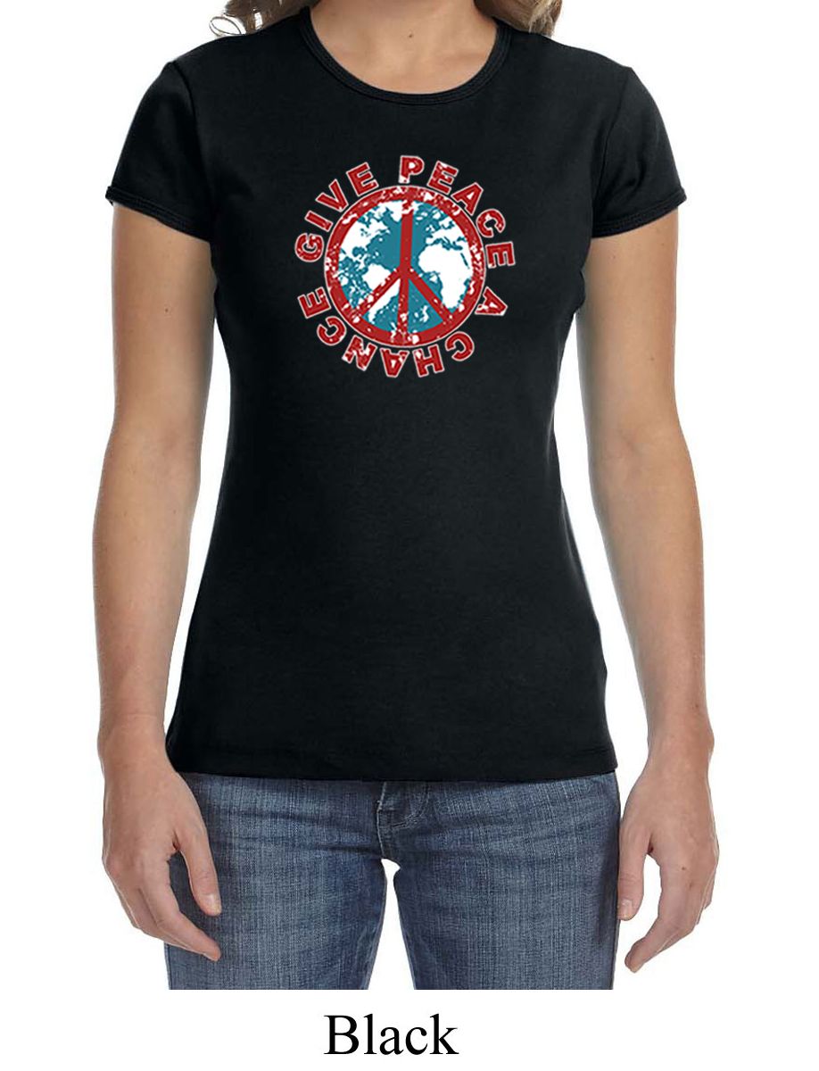 | | Ladies Peace Shirt Give Peace a Chance Crewneck Tee T-ShirtLadies Peace Shirt Give Peace a Chance Crewneck Tee T-Shirt 100% cotton Available in Ladies Small, Ladies Medium, Ladies Large, Ladies XL & Ladies 2XL Also available in colors Black, Chocolate, Fuschia, Kelly, Navy, Purple, Red, Royal, Turquoise, and White ![]() |