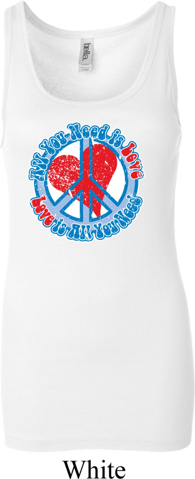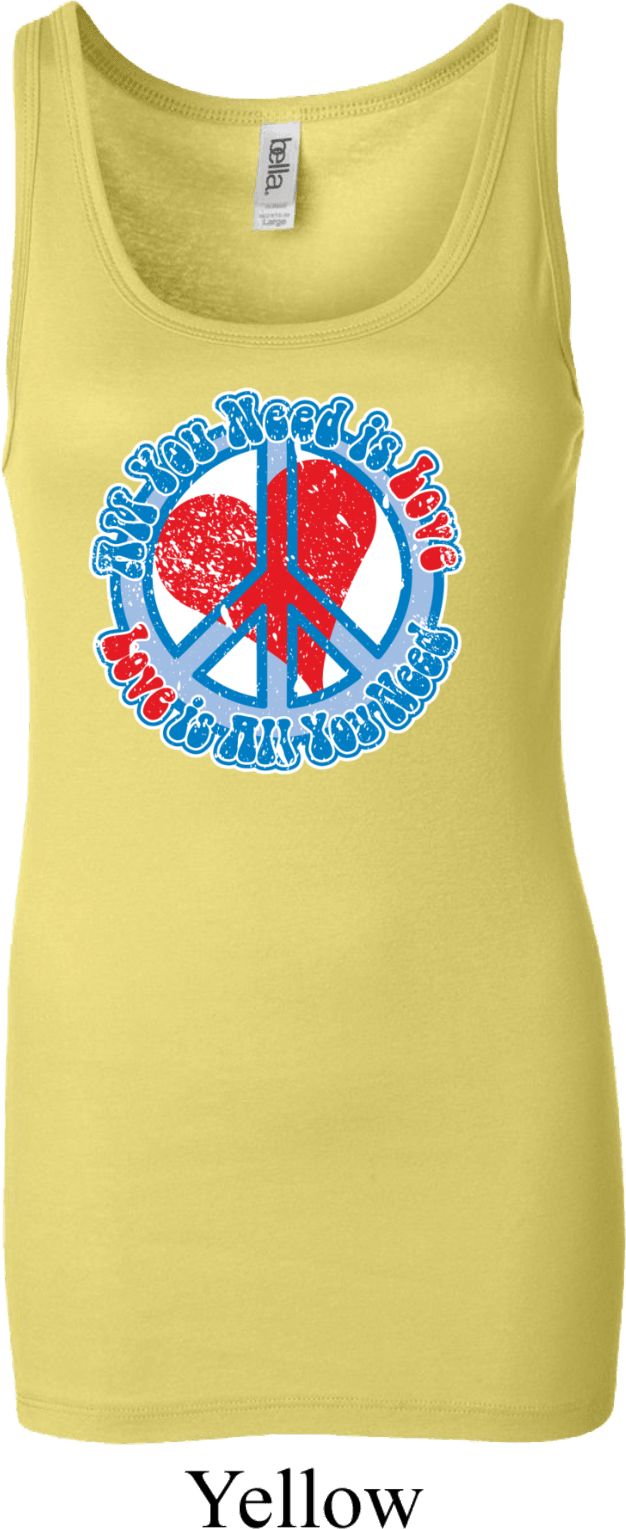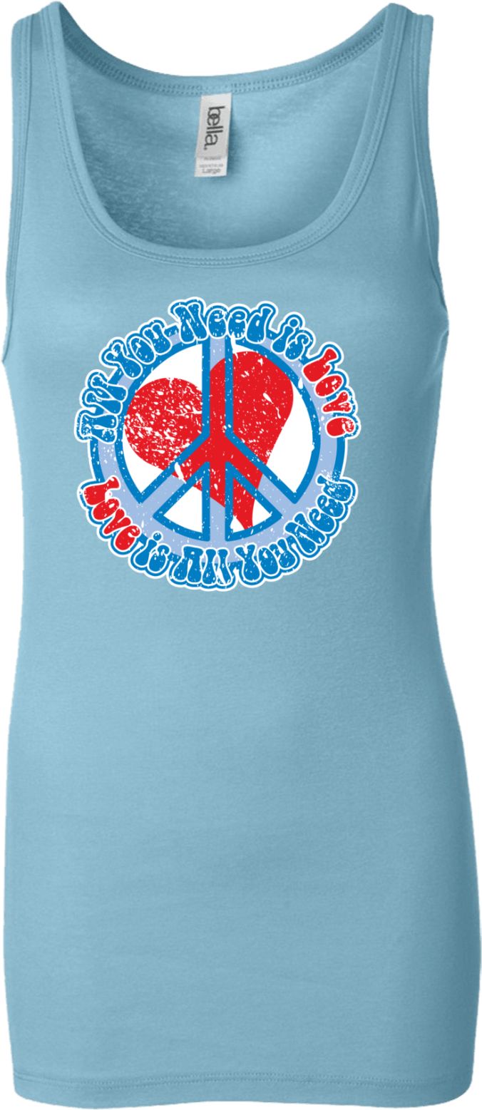 | | Ladies Peace Tanktop All You Need is Love Longer Length Tank TopLadies Peace Tanktop All You Need is Love Longer Length Tank Top A cotton/spandex blend Available in Ladies Small, Ladies Medium, Ladies Large, Ladies XL & Ladies 2XL Also available in colors Berry, Black, Granite, Light Aqua, Maroon, Midnight, Orange Sorbet, Pink, Purple, Red, Royal, Teal, Very Pink, White, and Yellow ![]() |