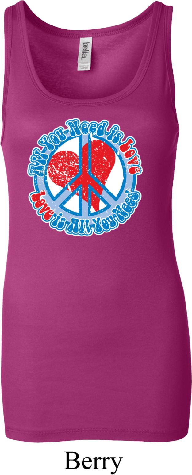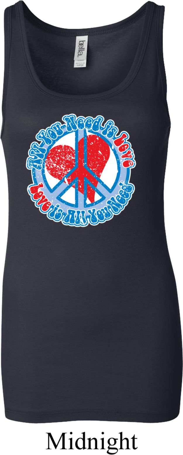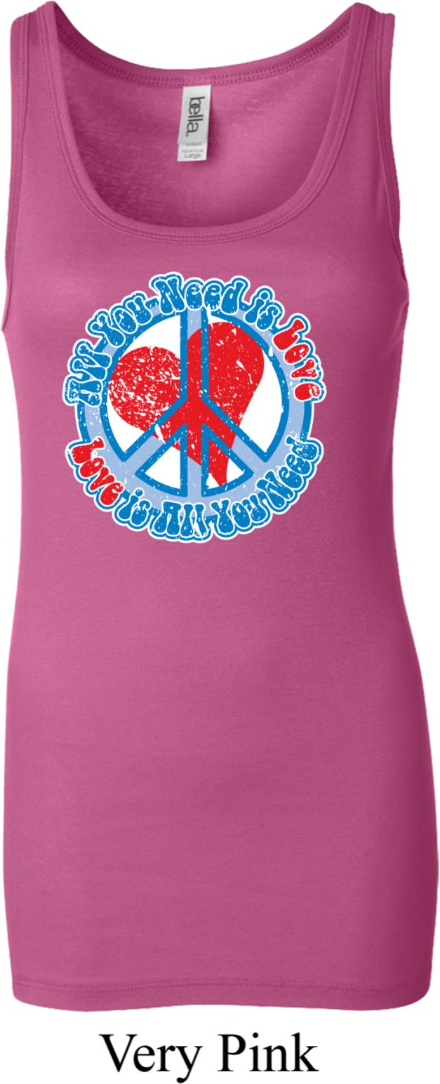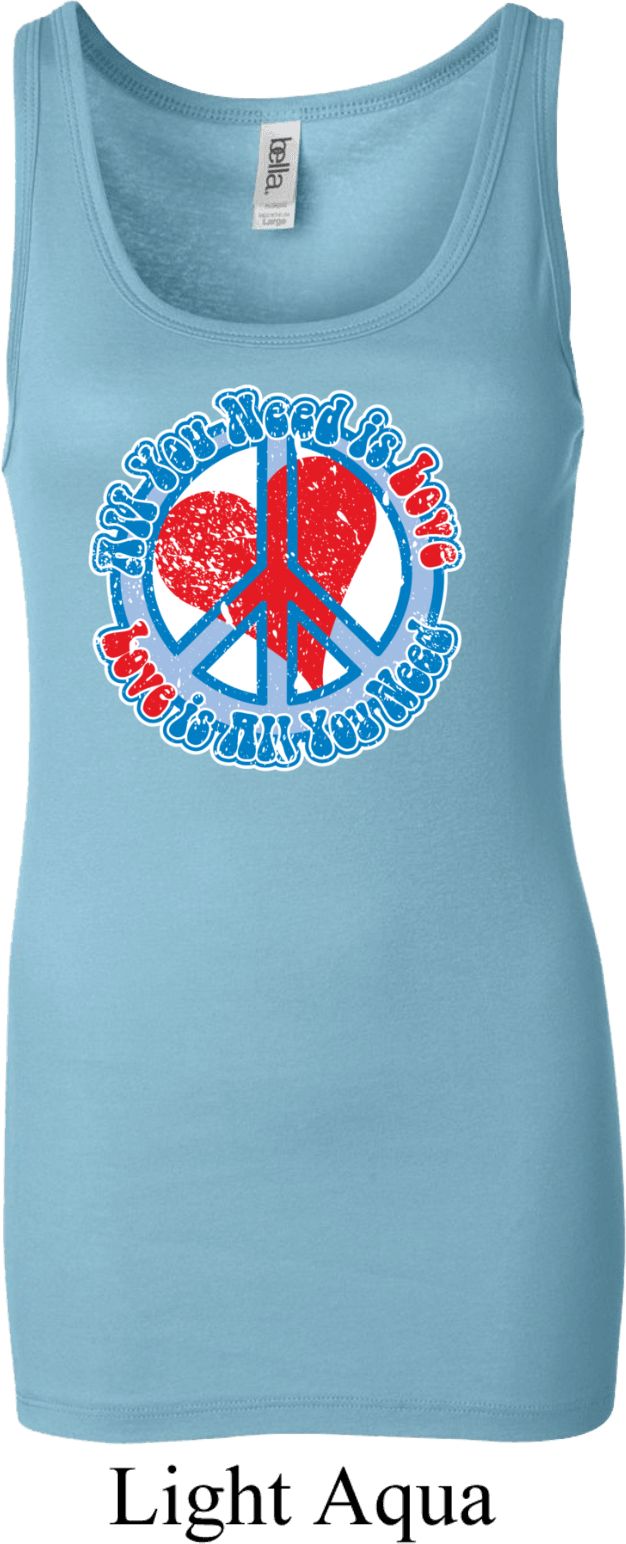 | | Ladies Peace Tanktop All You Need is Love Longer Length Tank TopLadies Peace Tanktop All You Need is Love Longer Length Tank Top A cotton/spandex blend Available in Ladies Small, Ladies Medium, Ladies Large, Ladies XL & Ladies 2XL Also available in colors Berry, Black, Granite, Light Aqua, Maroon, Midnight, Orange Sorbet, Pink, Purple, Red, Royal, Teal, Very Pink, White, and Yellow ![]() |