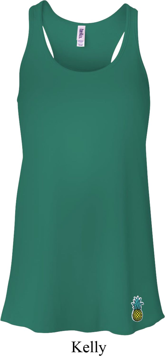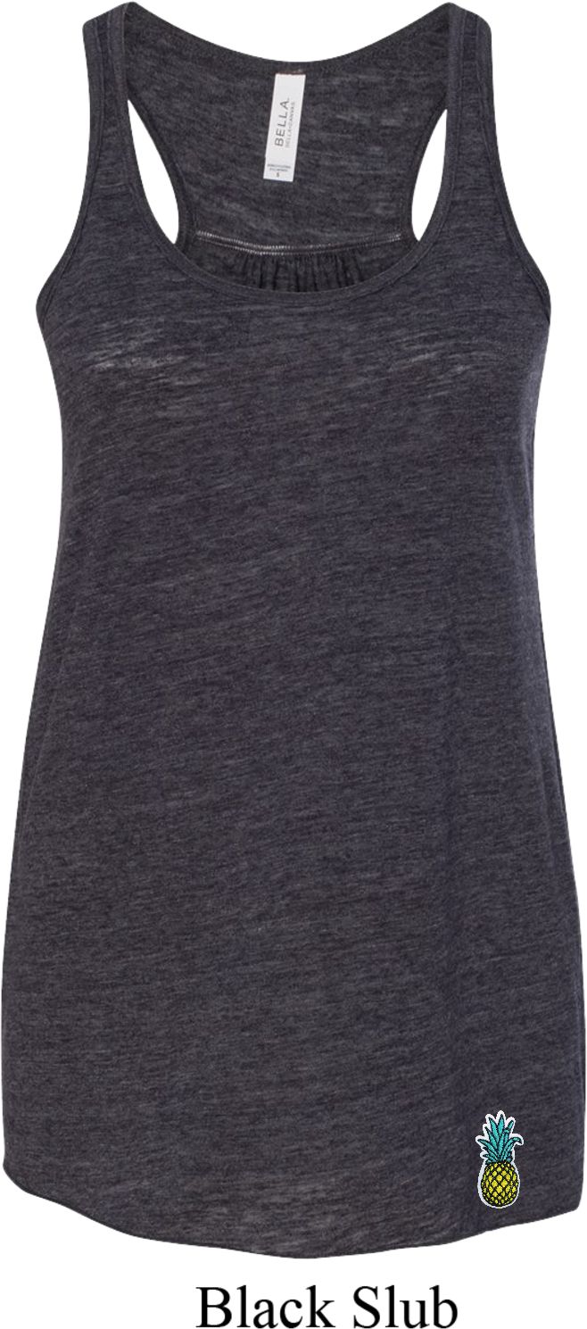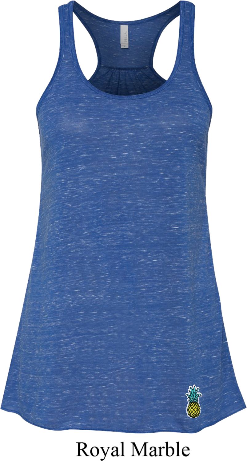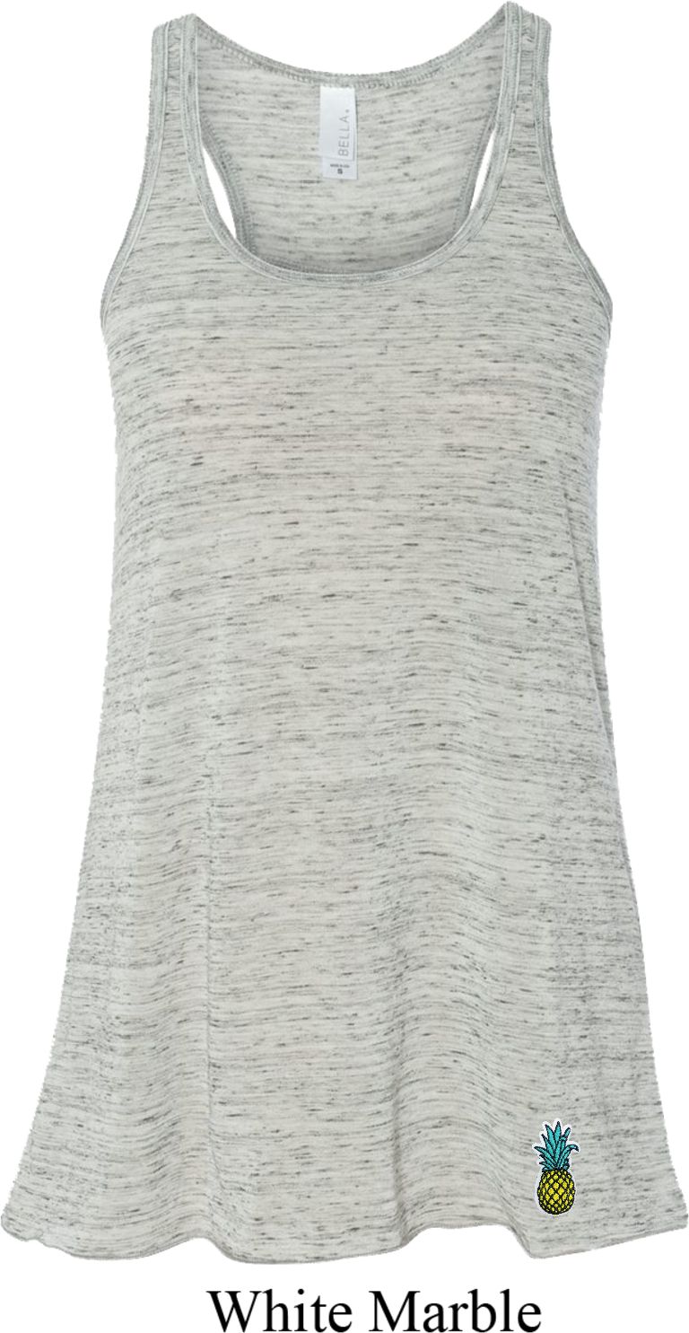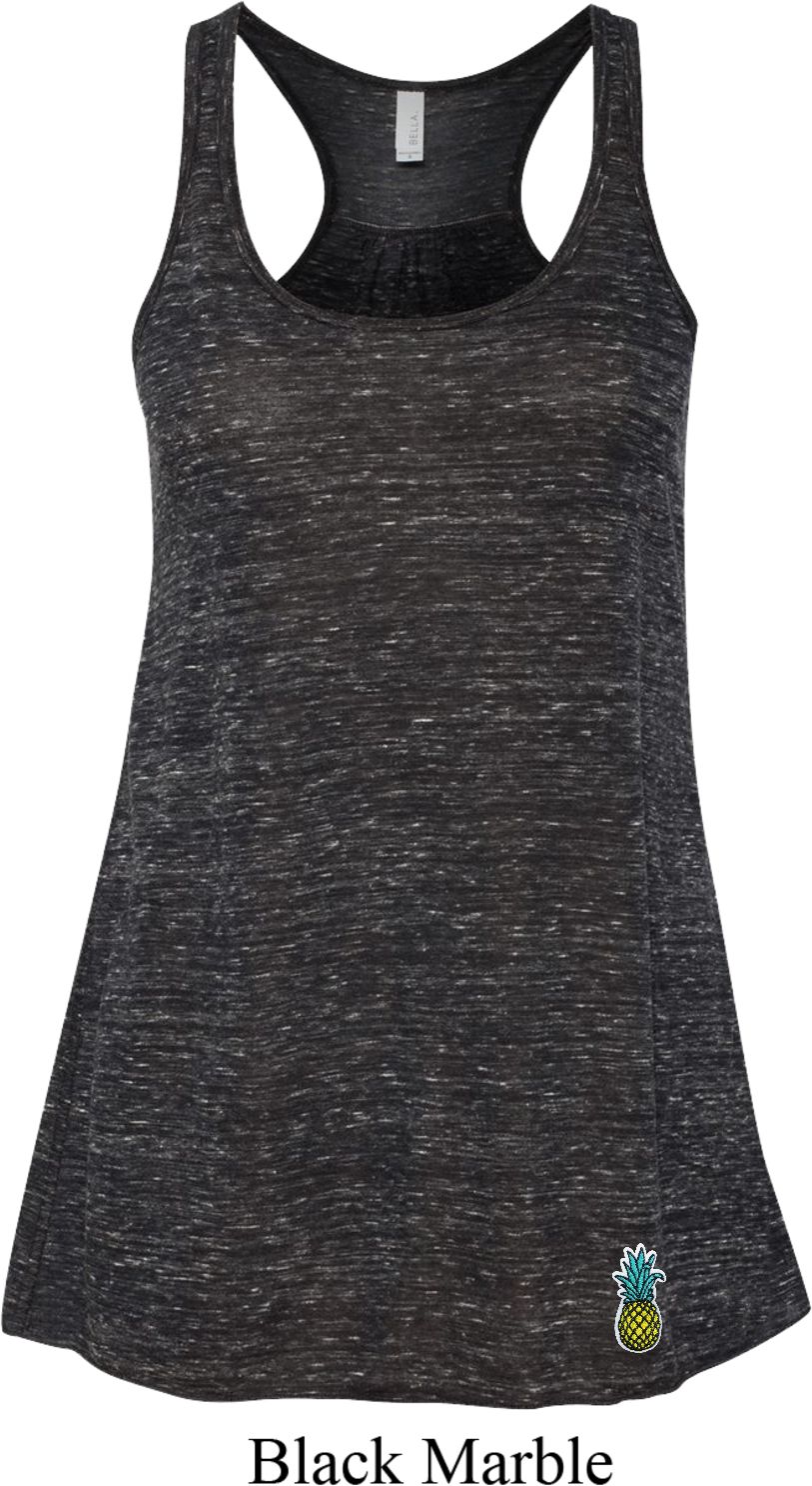 | | Ladies Pineapple Patch Bottom Print Flowy RacerbackThis ladies flowy racerback tanktop has a scrunch back and features a pineapple patch at the bottom. Solid colors are made of poly/rayon, marble colors are made of poly/cotton, and stripe colors are made of rayon/poly. Available in sizes Small through 2XL. ![]() |
