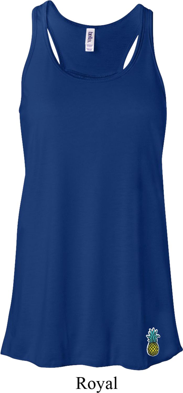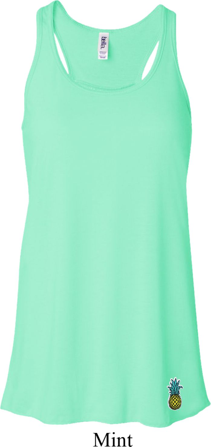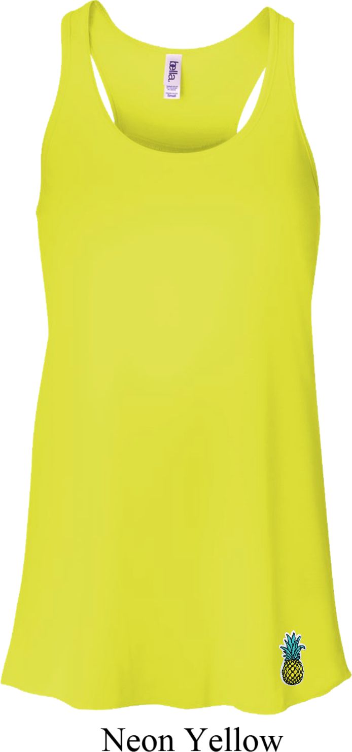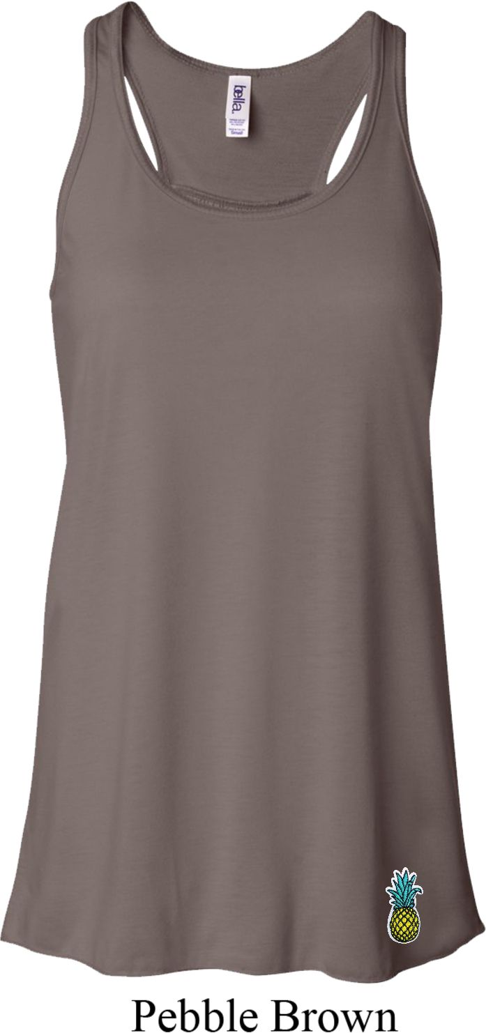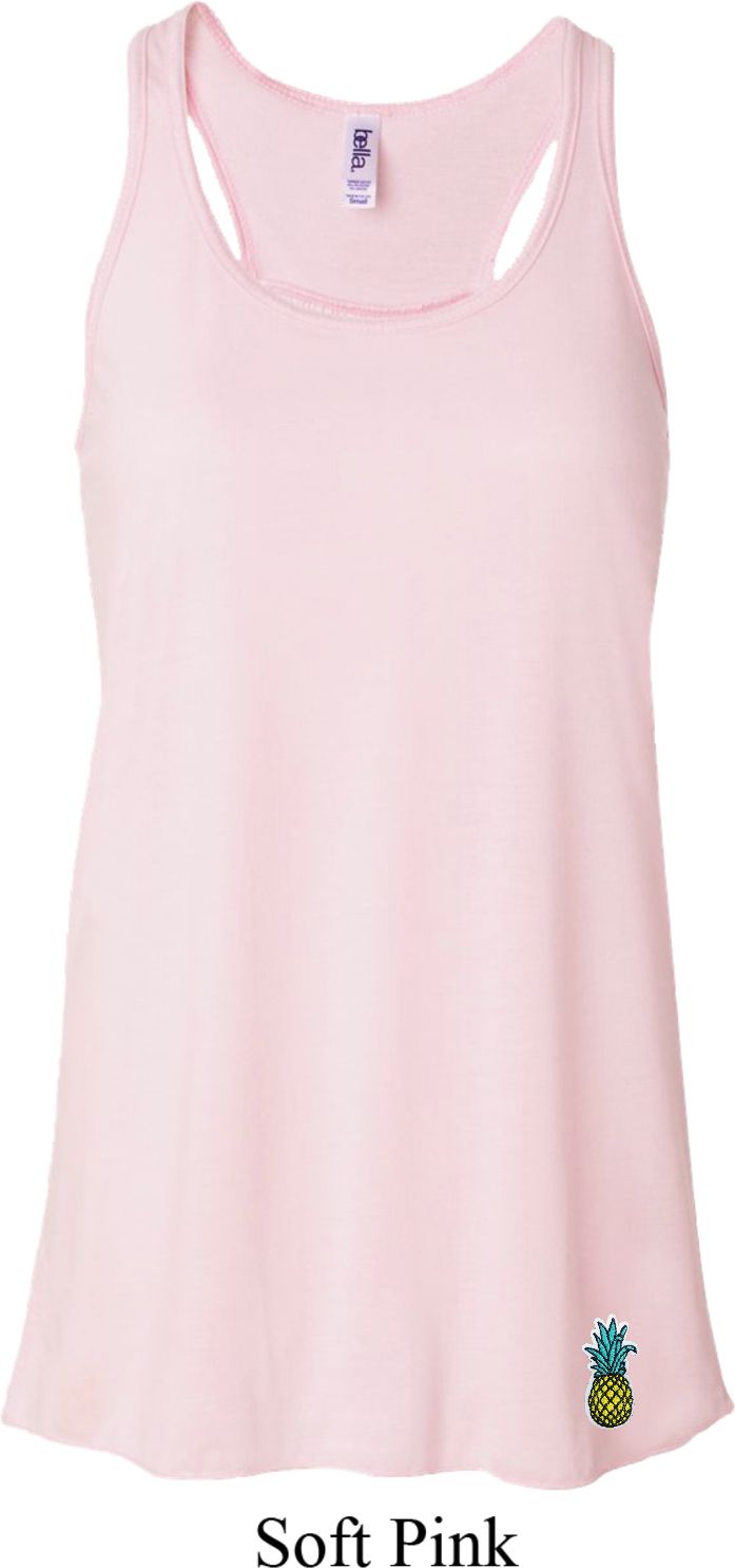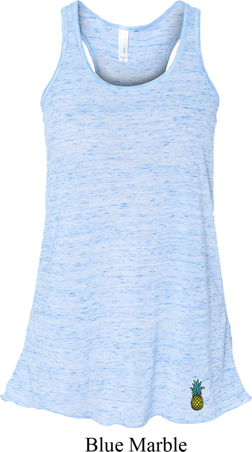 | | Ladies Pineapple Patch Bottom Print Flowy RacerbackThis ladies flowy racerback tanktop has a scrunch back and features a pineapple patch at the bottom. Solid colors are made of poly/rayon, marble colors are made of poly/cotton, and stripe colors are made of rayon/poly. Available in sizes Small through 2XL. ![]() |