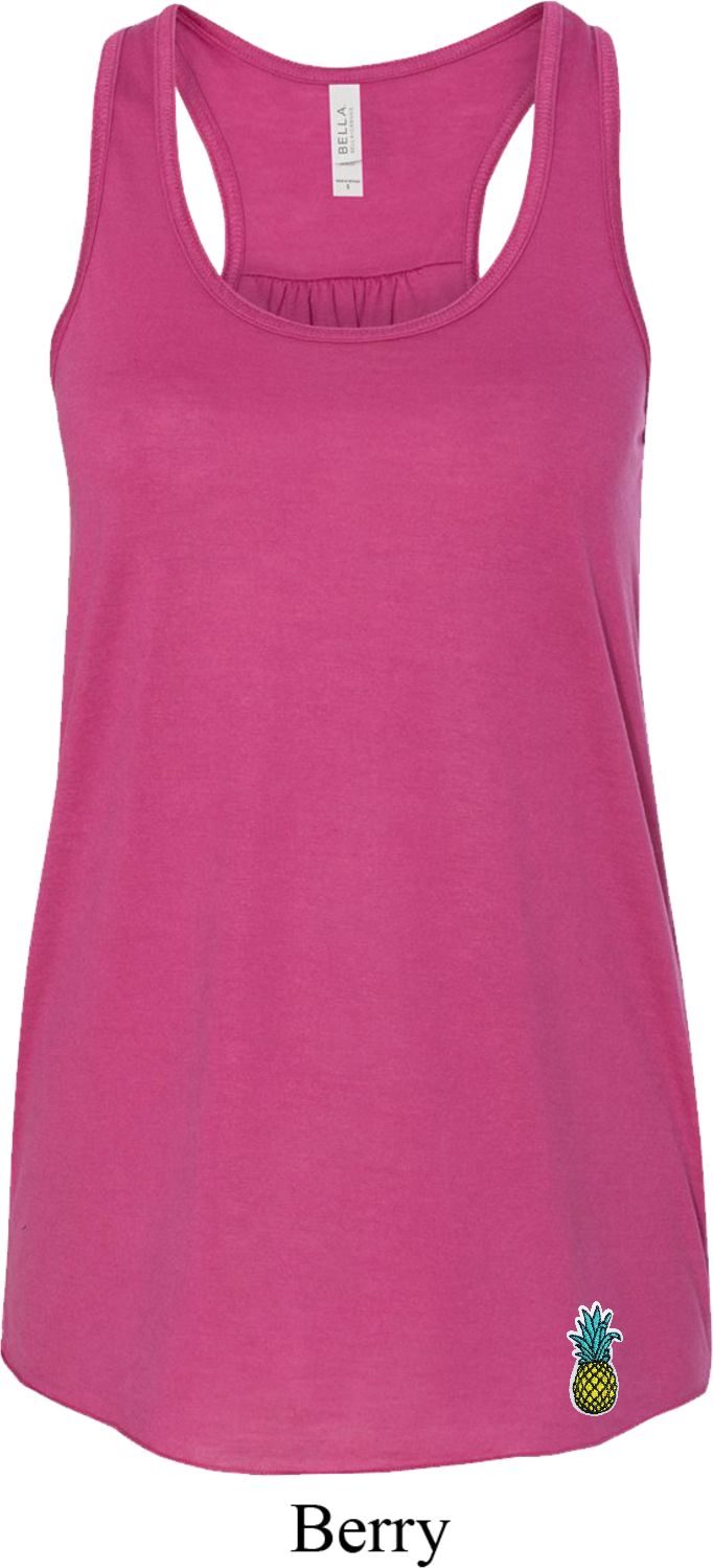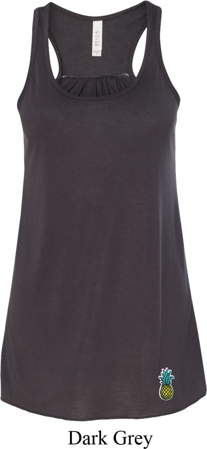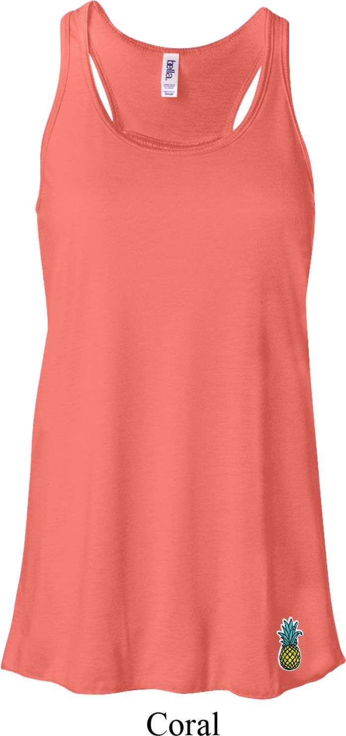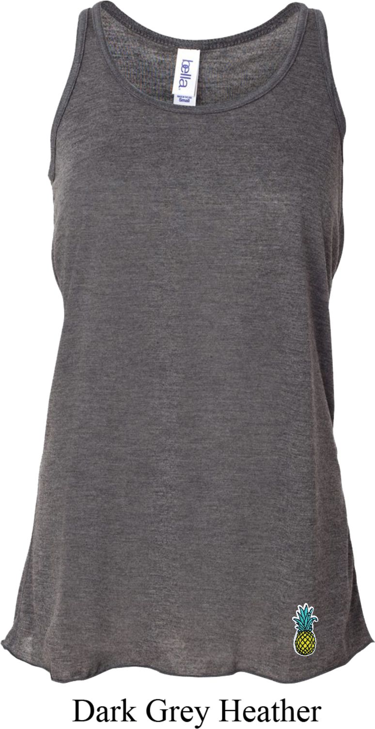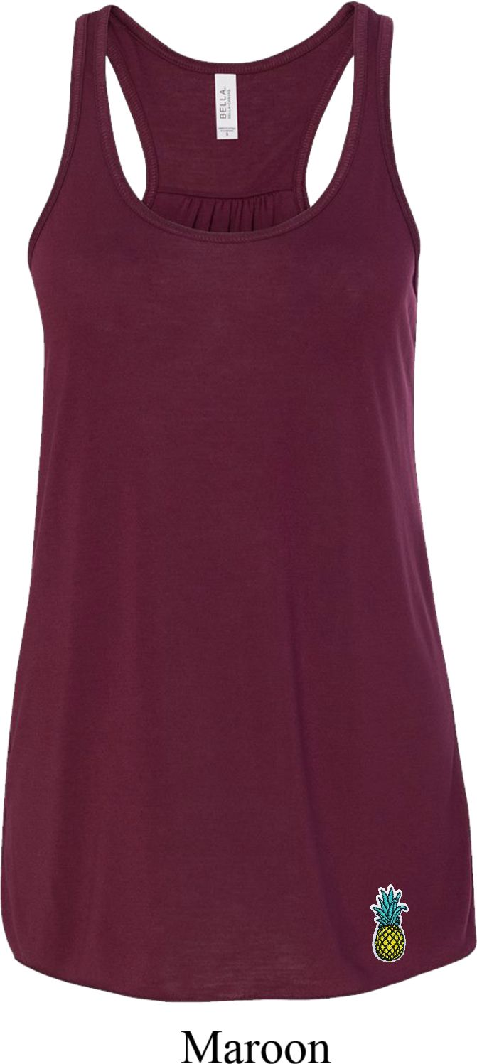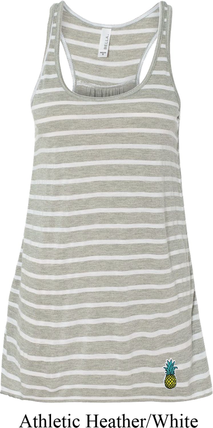 | | Ladies Pineapple Patch Bottom Print Flowy RacerbackThis ladies flowy racerback tanktop has a scrunch back and features a pineapple patch at the bottom. Solid colors are made of poly/rayon, marble colors are made of poly/cotton, and stripe colors are made of rayon/poly. Available in sizes Small through 2XL. ![]() |