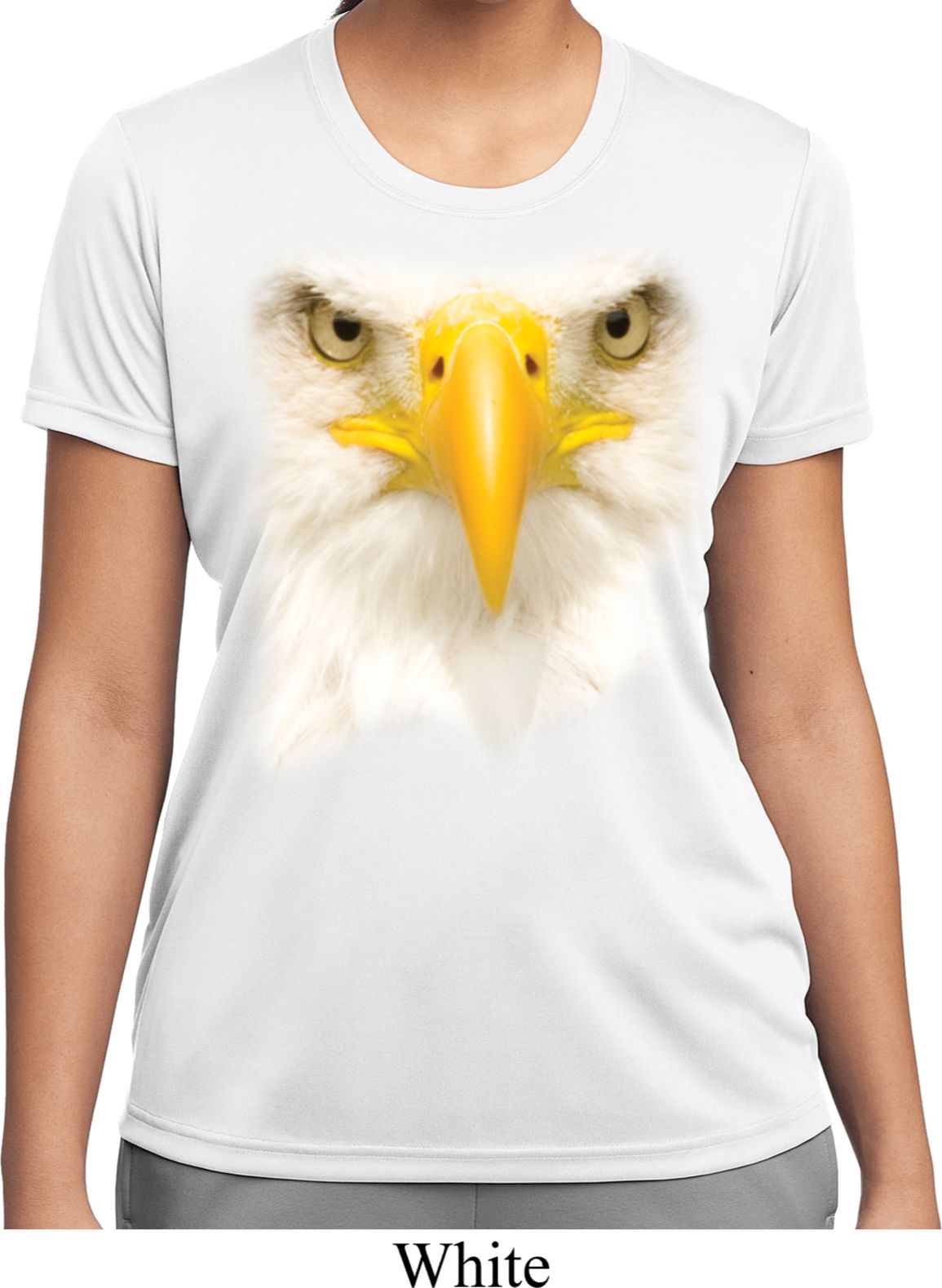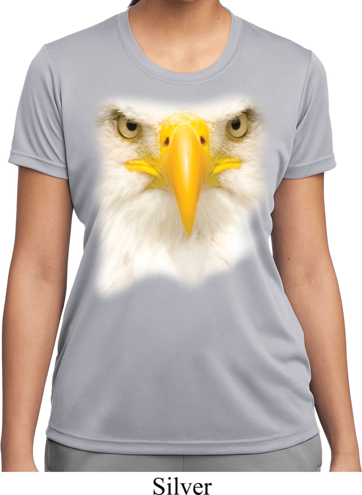 | | Ladies Shirt Big Bald Eagle Face Moisture Wicking Tee T-ShirtLadies Shirt Big Bald Eagle Face Moisture Wicking Tee T-Shirt 100% polyester Available in Ladies Small, Ladies Medium, Ladies Large, Ladies XL, Ladies 2XL & Ladies 3XL Also available in colors Carolina Blue, Light Pink, Lime, Silver, and White |