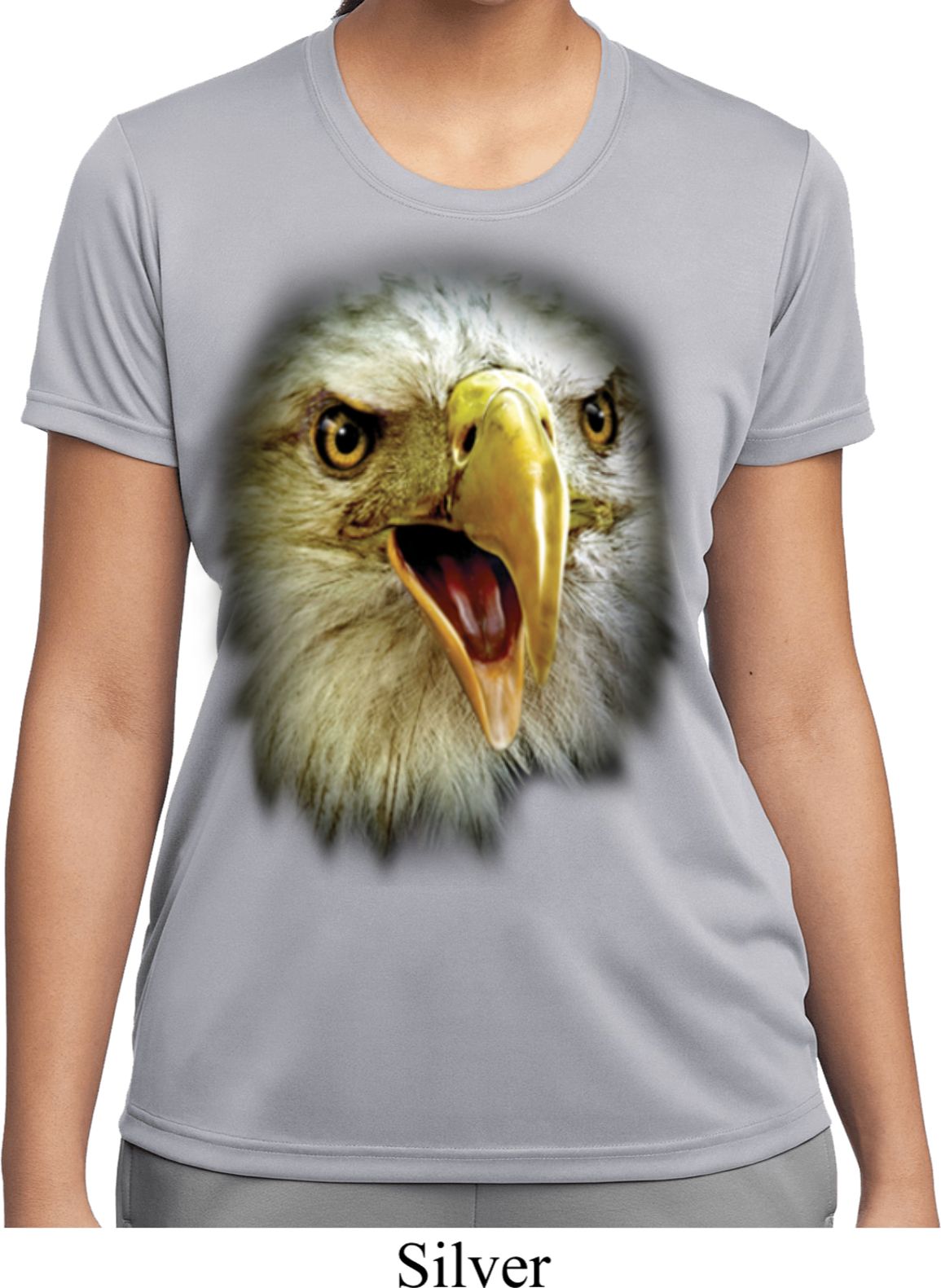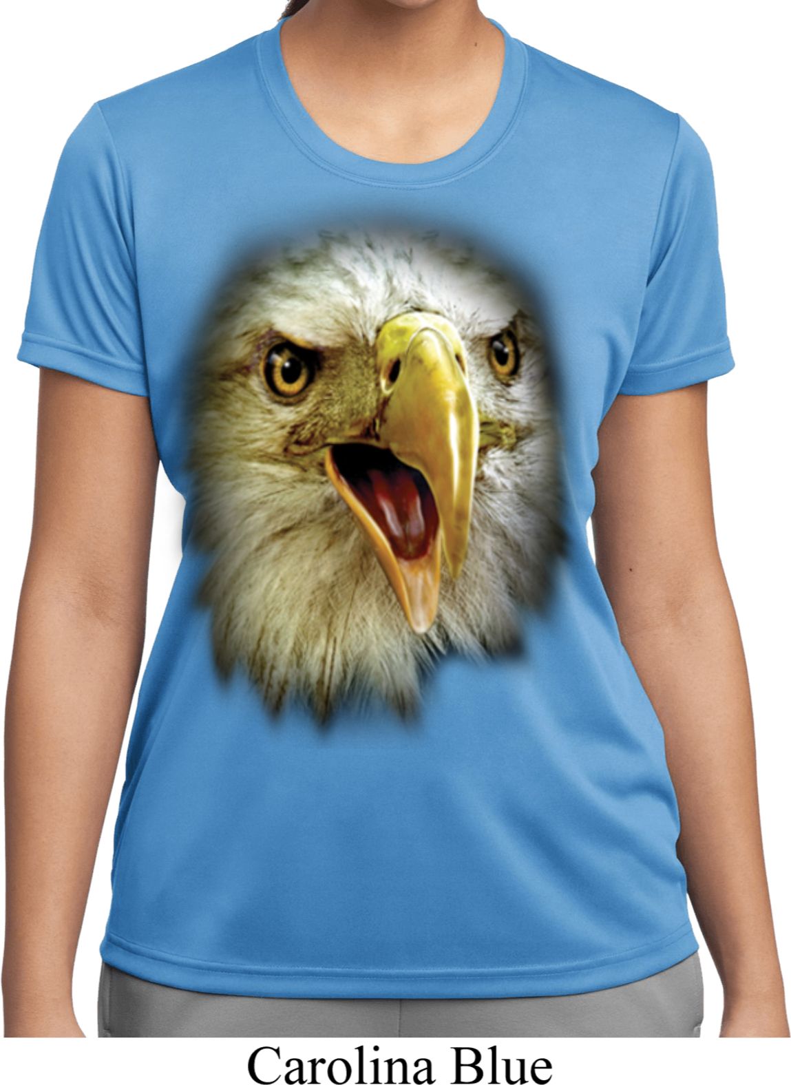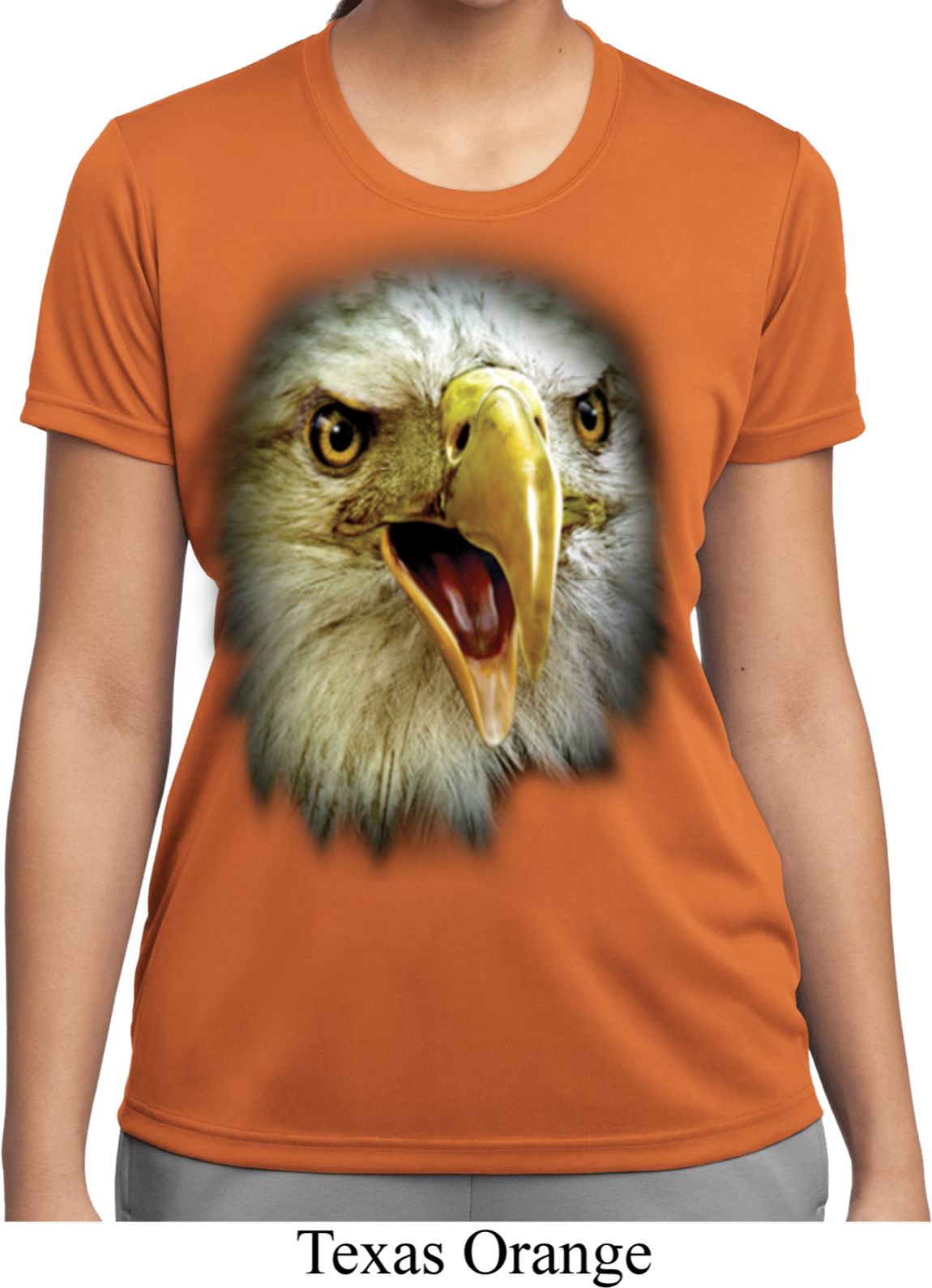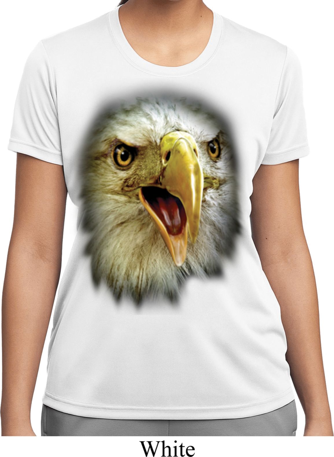 | | Ladies Shirt Big Eagle Face Moisture Wicking Tee T-ShirtLadies Shirt Big Eagle Face Moisture Wicking Tee T-Shirt 100% polyester Available in Ladies Small, Ladies Medium, Ladies Large, Ladies XL, Ladies 2XL & Ladies 3XL Also available in colors Black, Cardinal, Carolina Blue, Deep Orange, Forest, Gold, Kelly, Light Pink, Lime, Maroon, Navy, Purple, Red, Royal, Silver, Texas Orange, Tropic Blue, and White |
