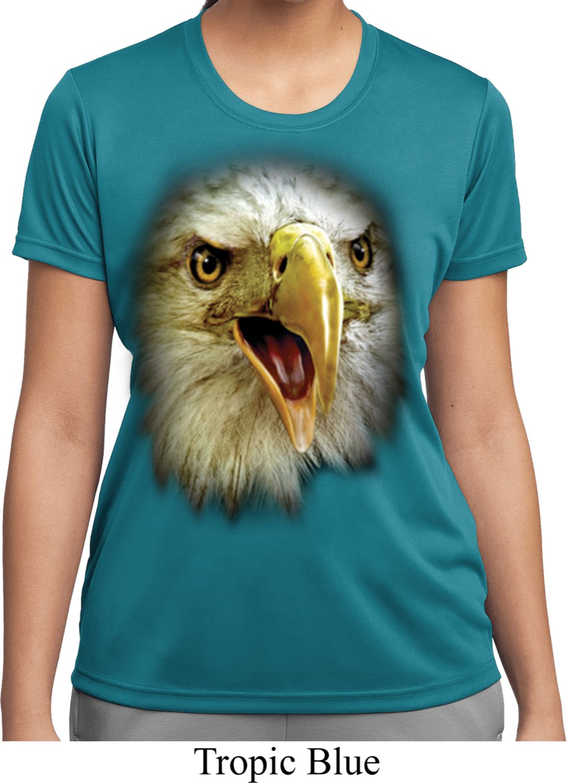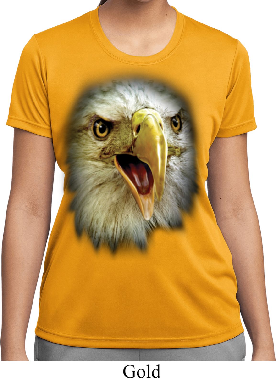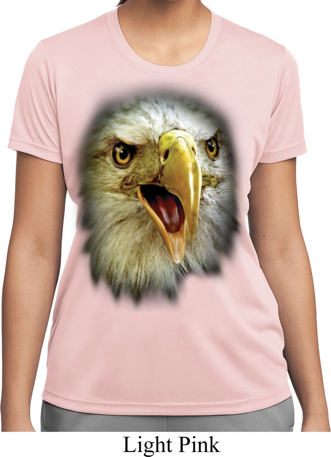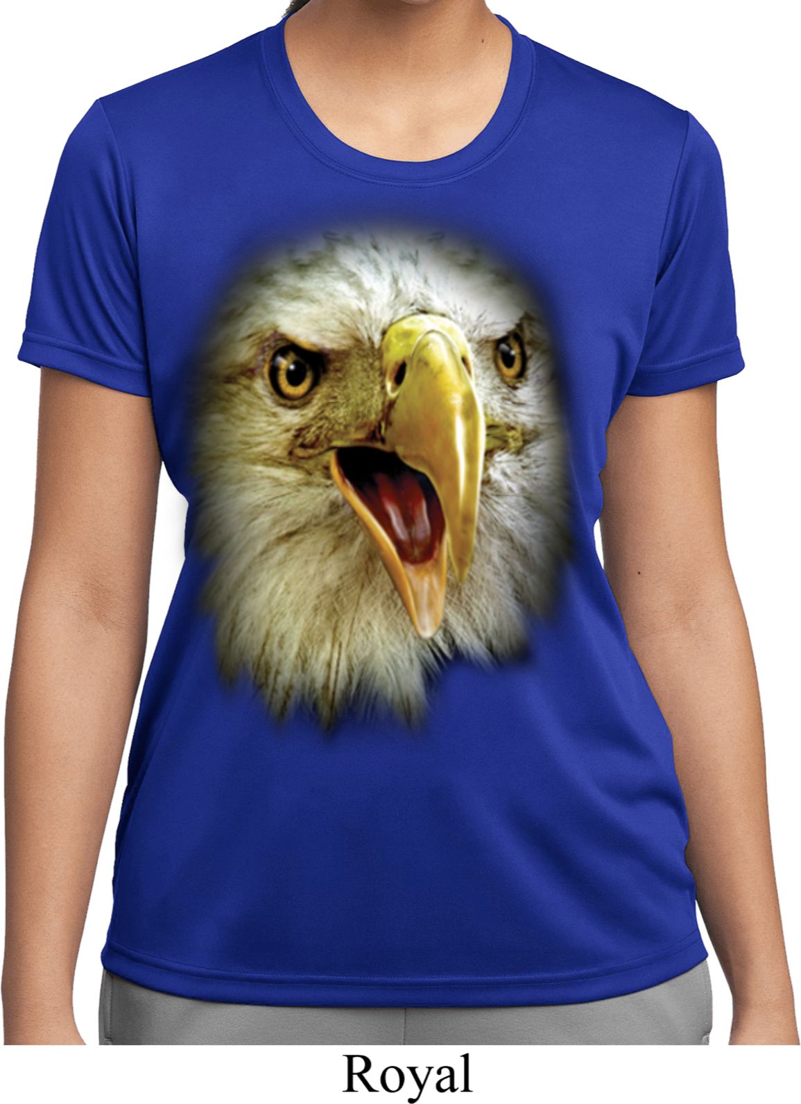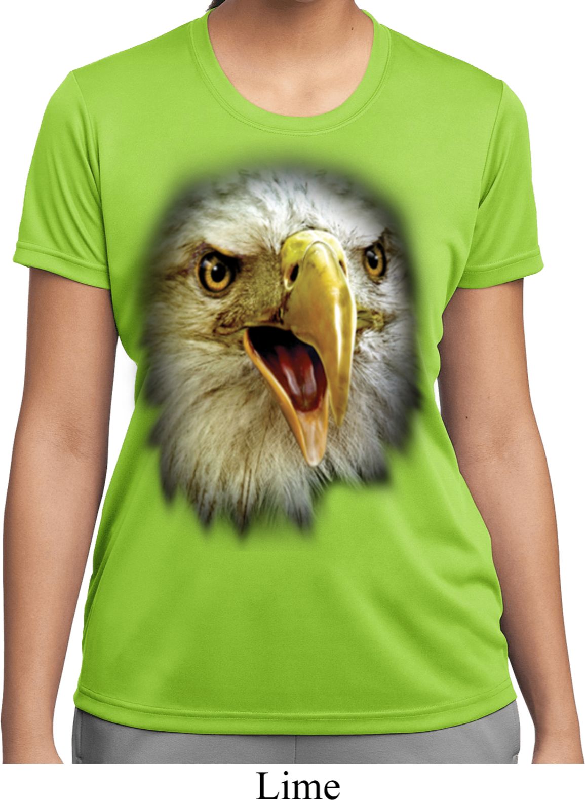 | | Ladies Shirt Big Eagle Face Moisture Wicking Tee T-ShirtLadies Shirt Big Eagle Face Moisture Wicking Tee T-Shirt 100% polyester Available in Ladies Small, Ladies Medium, Ladies Large, Ladies XL, Ladies 2XL & Ladies 3XL Also available in colors Black, Cardinal, Carolina Blue, Deep Orange, Forest, Gold, Kelly, Light Pink, Lime, Maroon, Navy, Purple, Red, Royal, Silver, Texas Orange, Tropic Blue, and White |