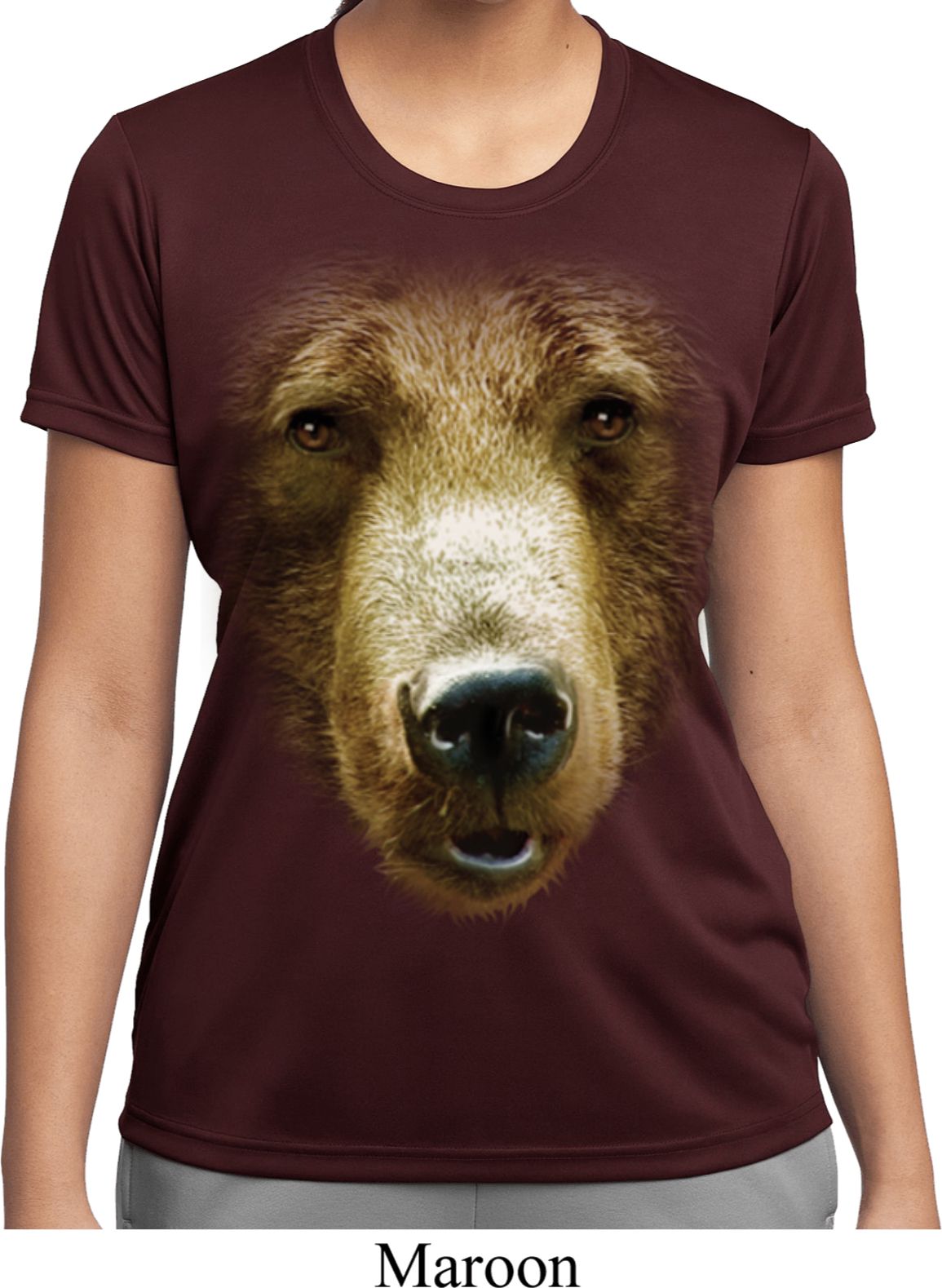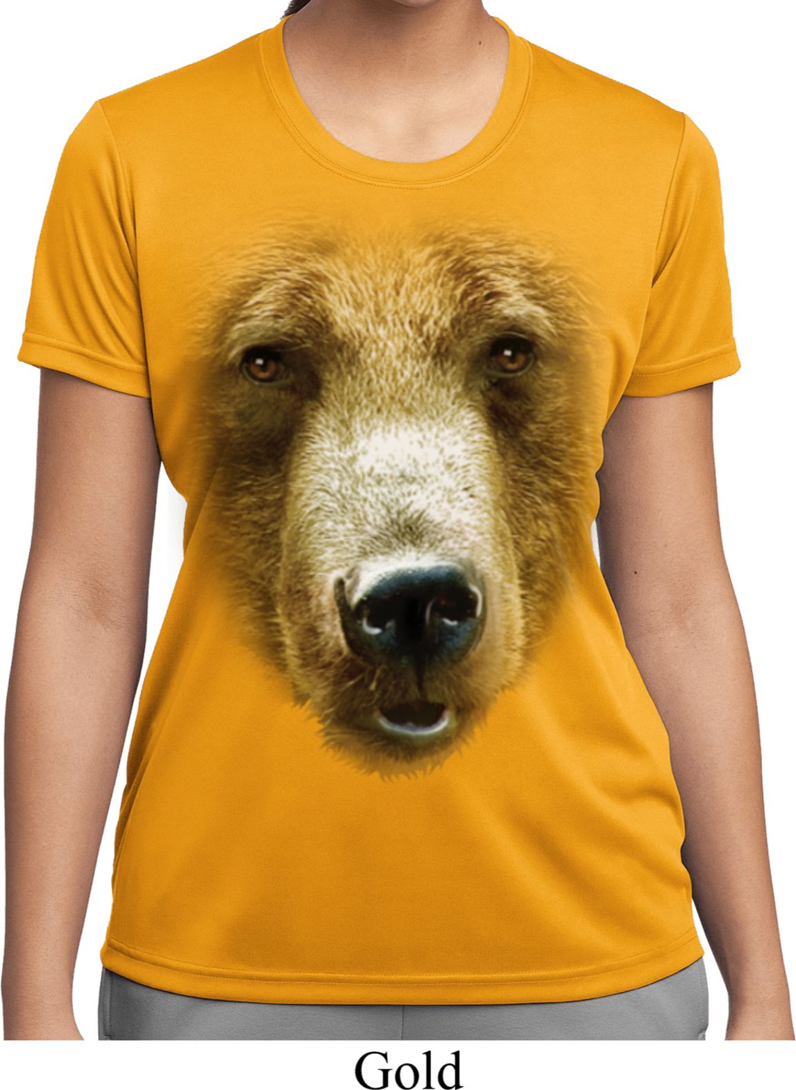 | | Ladies Shirt Big Grizzly Bear Face Moisture Wicking Tee T-ShirtLadies Shirt Big Grizzly Bear Face Moisture Wicking Tee T-Shirt 100% polyester Available in Ladies Small, Ladies Medium, Ladies Large, Ladies XL, Ladies 2XL & Ladies 3XL Also available in colors Black, Cardinal, Carolina Blue, Deep Orange, Forest, Gold, Kelly, Light Pink, Lime, Maroon, Navy, Purple, Red, Royal, Silver, Texas Orange, Tropic Blue, and White |