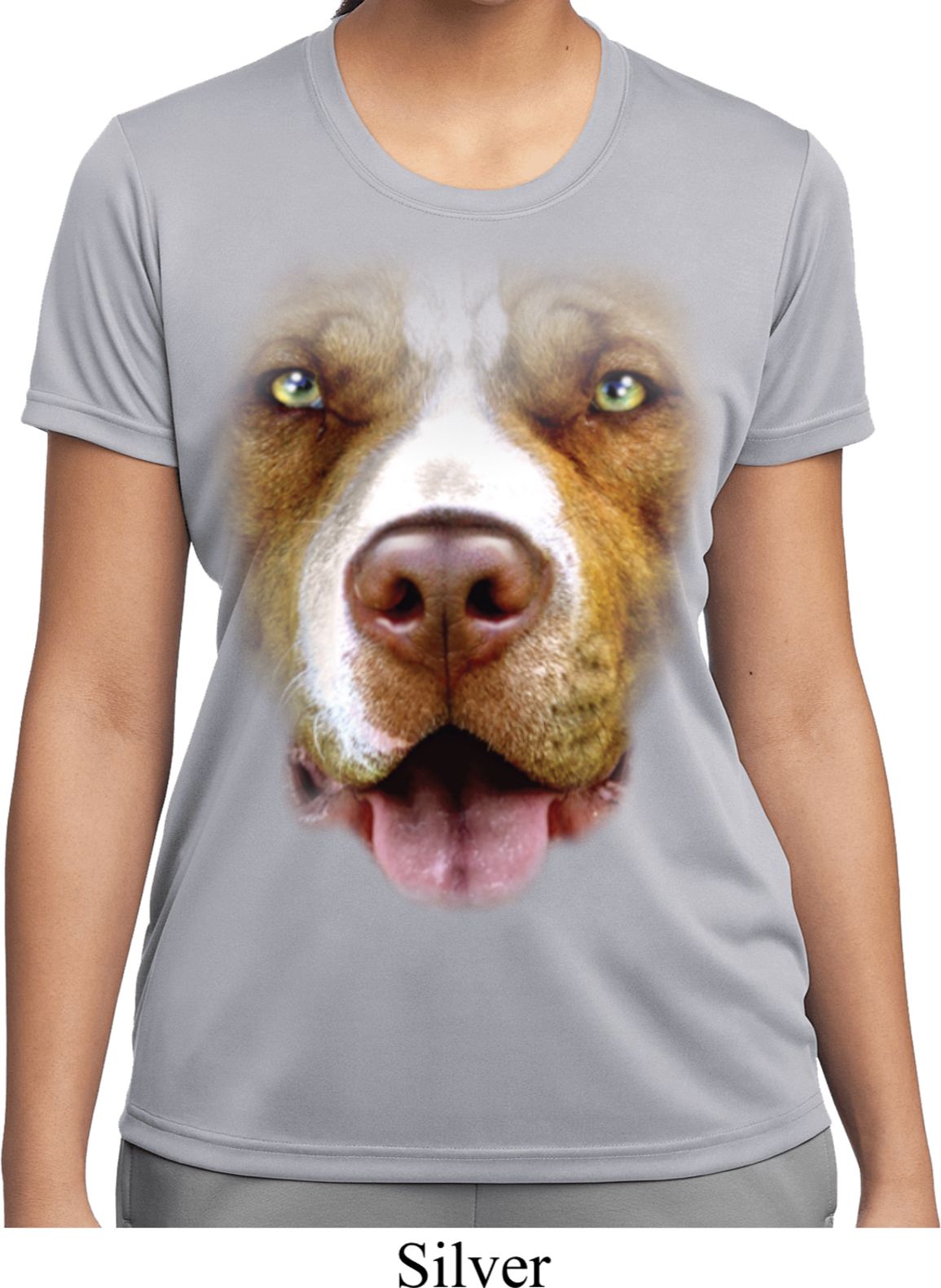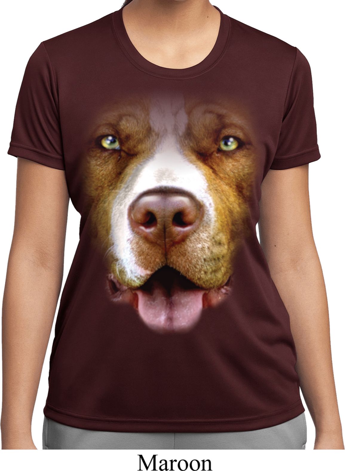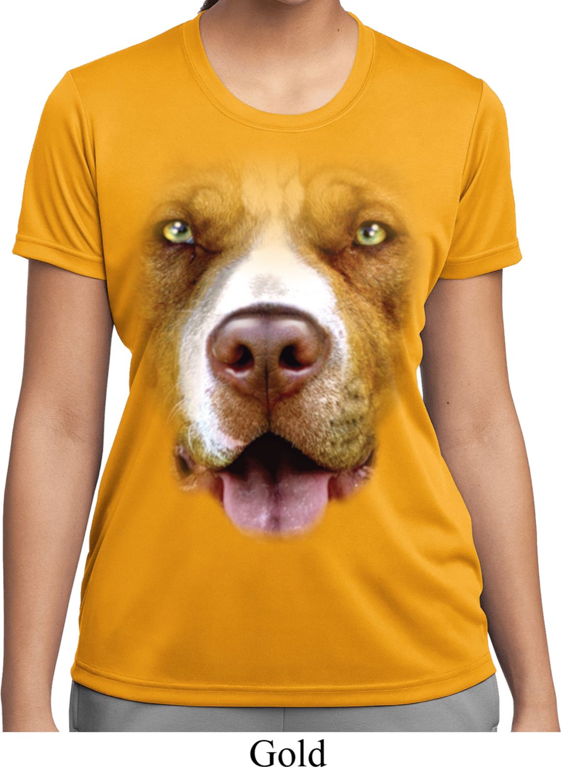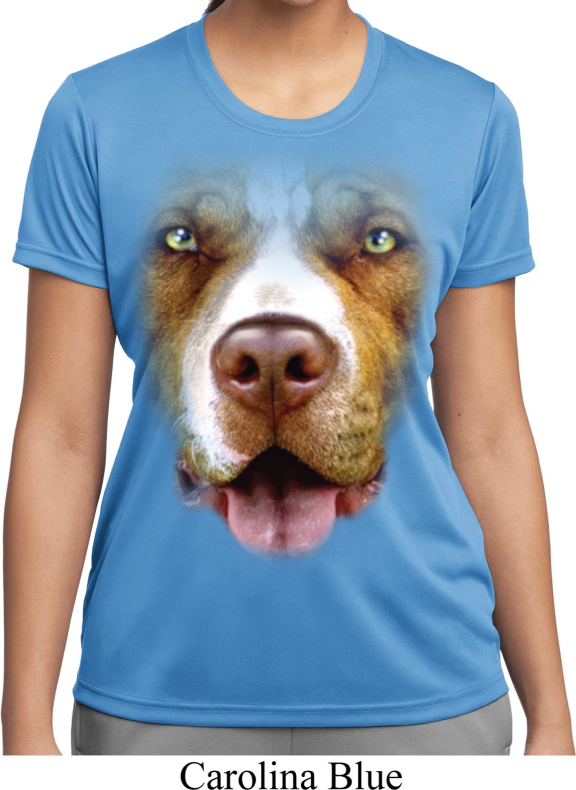 | | Ladies Shirt Big Pit Bull Face Moisture Wicking Tee T-ShirtLadies Shirt Big Pit Bull Face Moisture Wicking Tee T-Shirt 100% polyester Available in Ladies Small, Ladies Medium, Ladies Large, Ladies XL, Ladies 2XL & Ladies 3XL Also available in colors Black, Cardinal, Carolina Blue, Deep Orange, Forest, Gold, Kelly, Light Pink, Lime, Maroon, Navy, Purple, Red, Royal, Silver, Texas Orange, Tropic Blue, and White |