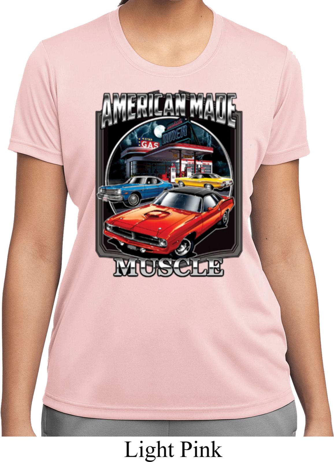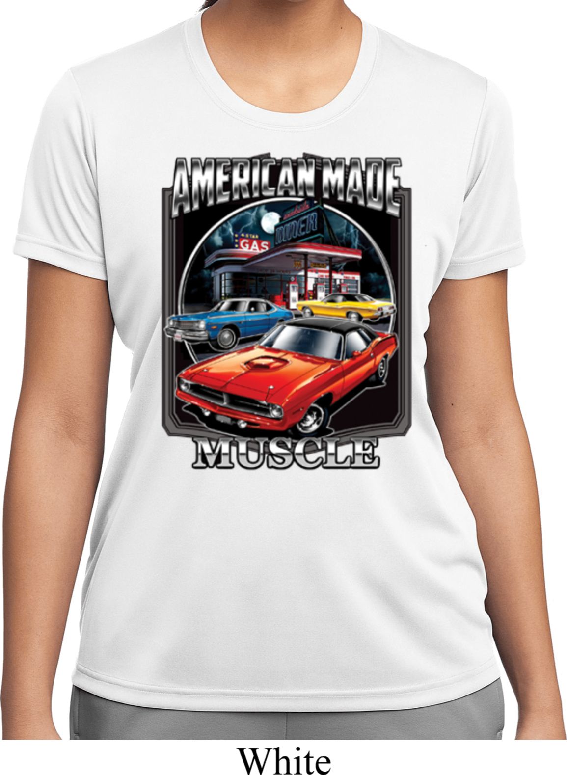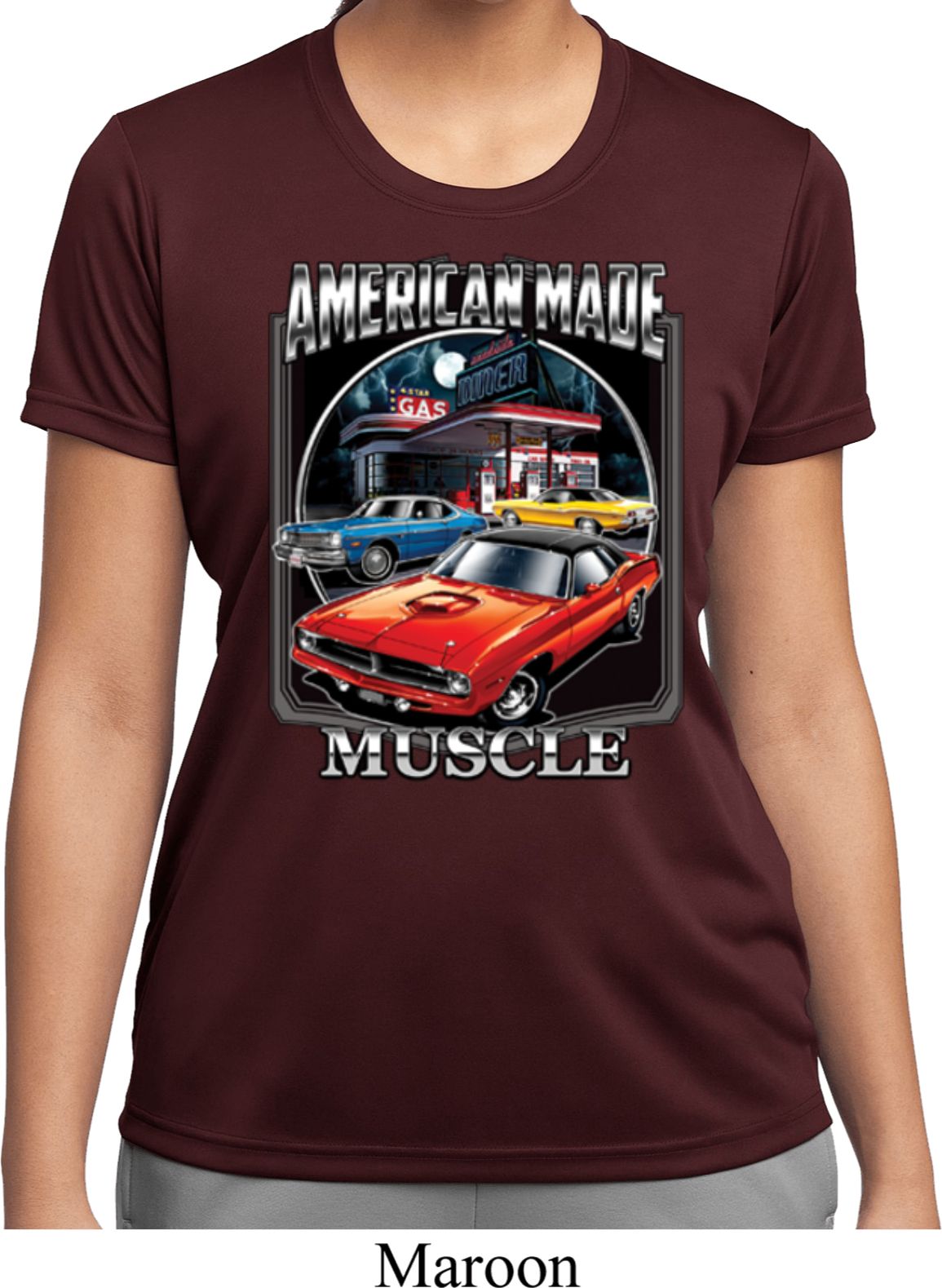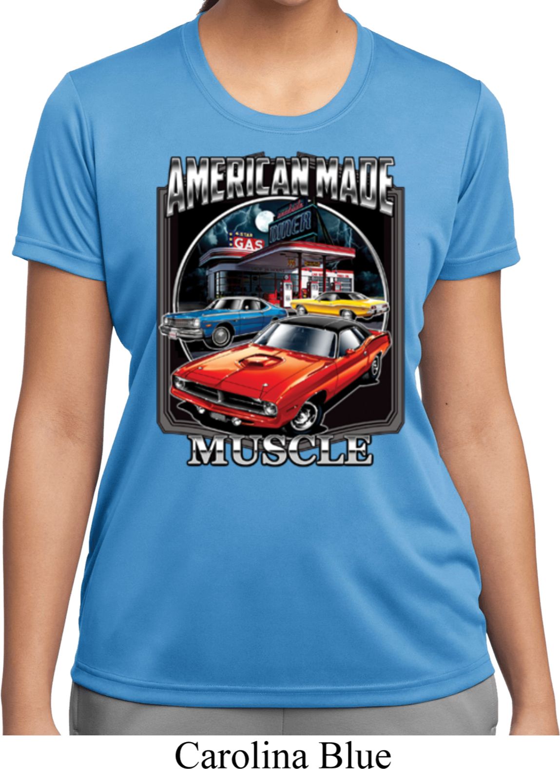 | | Ladies Shirt Chrysler American Made Moisture Wicking Tee T-ShirtLadies Shirt Chrysler American Made Moisture Wicking Tee T-Shirt 100% polyester Available in Ladies Small, Ladies Medium, Ladies Large, Ladies XL, Ladies 2XL & Ladies 3XL Also available in colors Black, Cardinal, Carolina Blue, Deep Orange, Forest, Gold, Kelly, Light Pink, Lime, Maroon, Navy, Purple, Red, Royal, Silver, Texas Orange, Tropic Blue, and White |