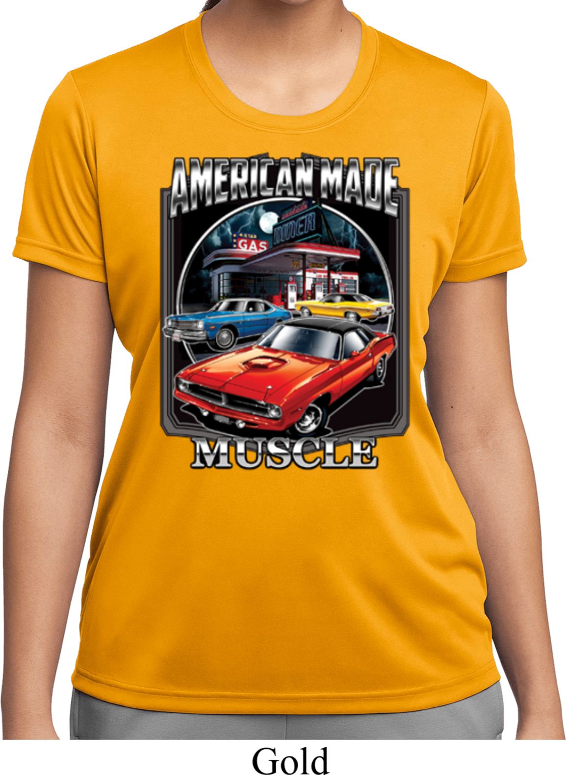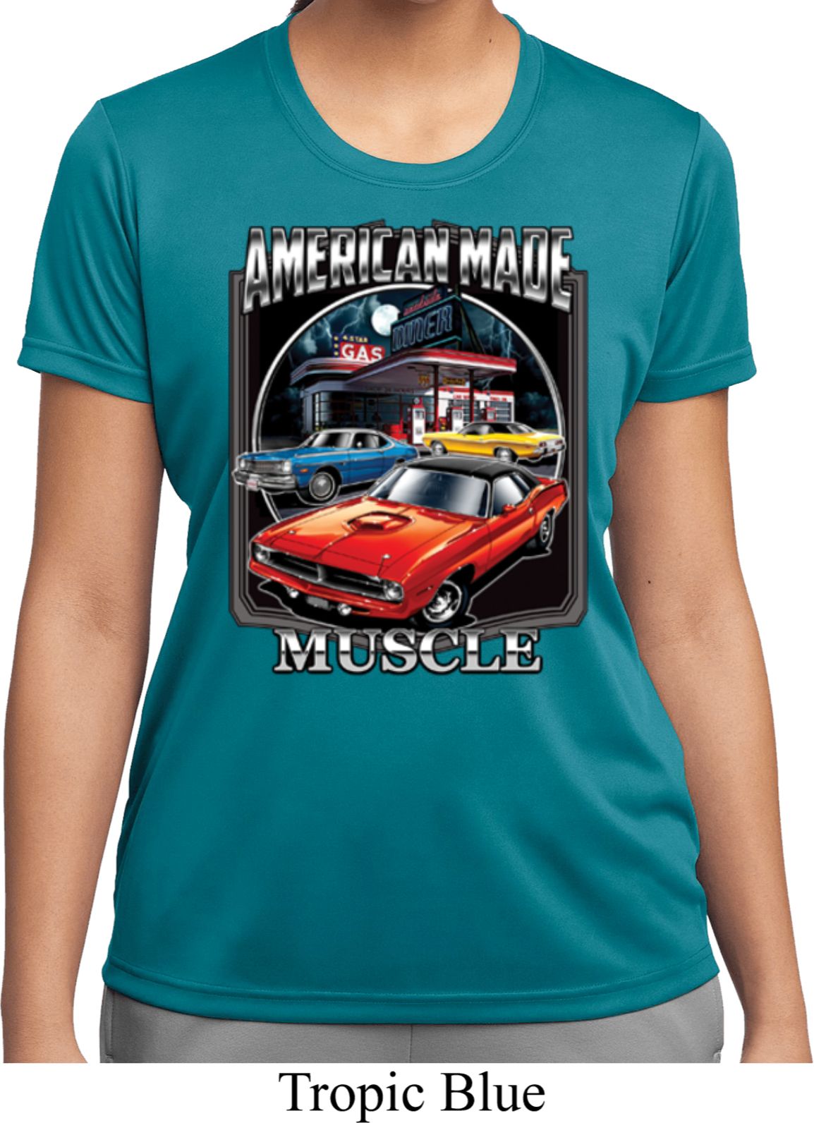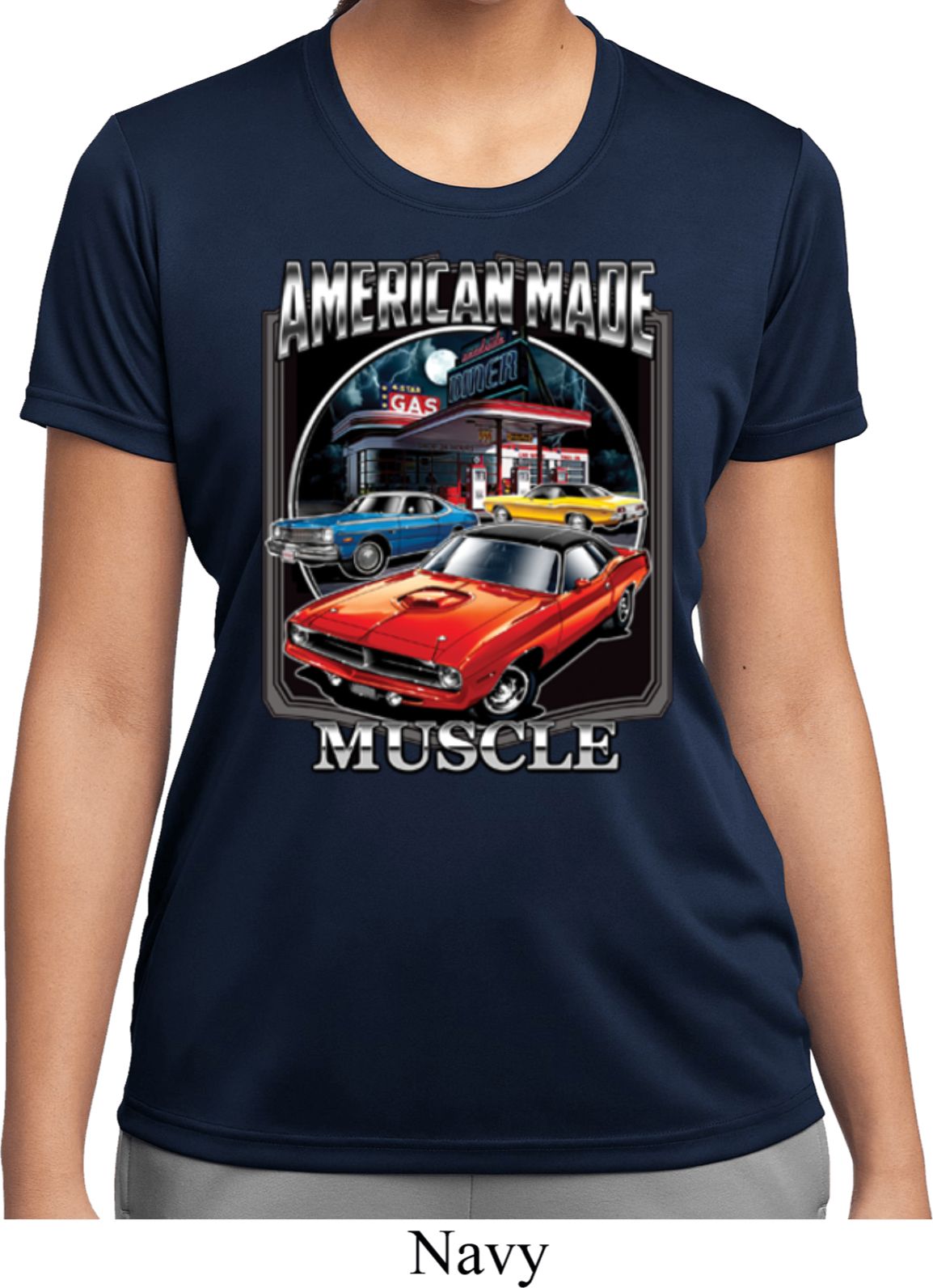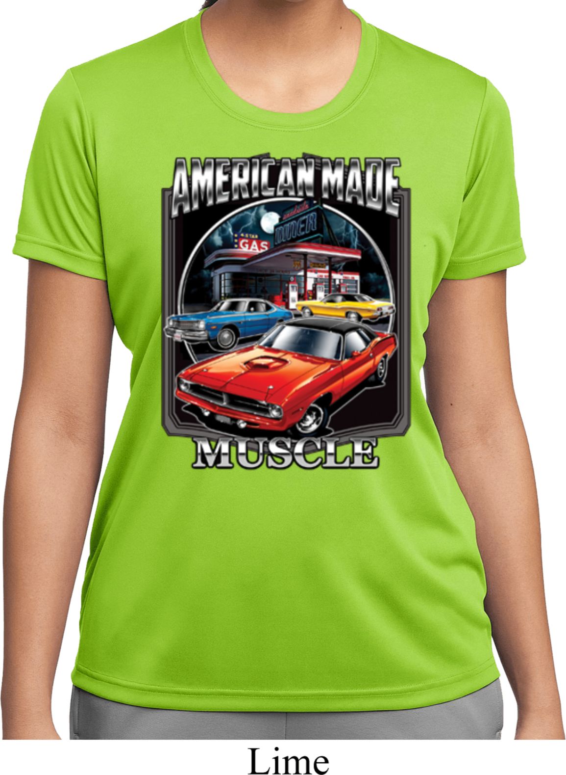 | | Ladies Shirt Chrysler American Made Moisture Wicking Tee T-ShirtLadies Shirt Chrysler American Made Moisture Wicking Tee T-Shirt 100% polyester Available in Ladies Small, Ladies Medium, Ladies Large, Ladies XL, Ladies 2XL & Ladies 3XL Also available in colors Black, Cardinal, Carolina Blue, Deep Orange, Forest, Gold, Kelly, Light Pink, Lime, Maroon, Navy, Purple, Red, Royal, Silver, Texas Orange, Tropic Blue, and White |