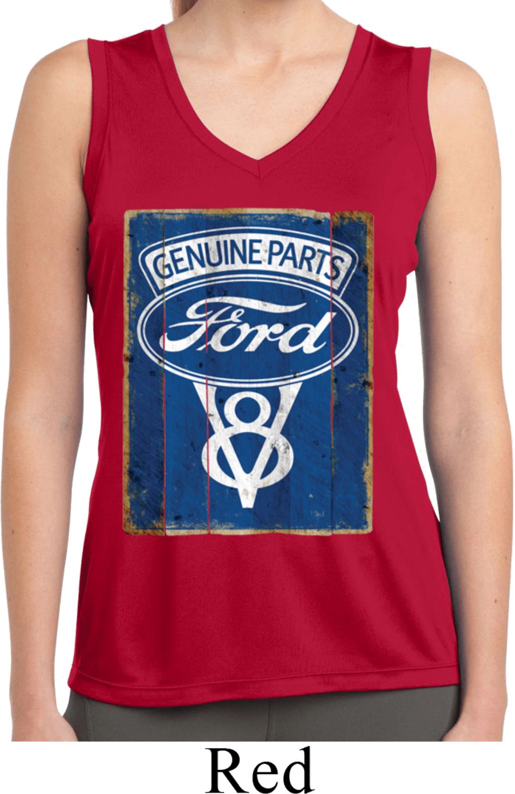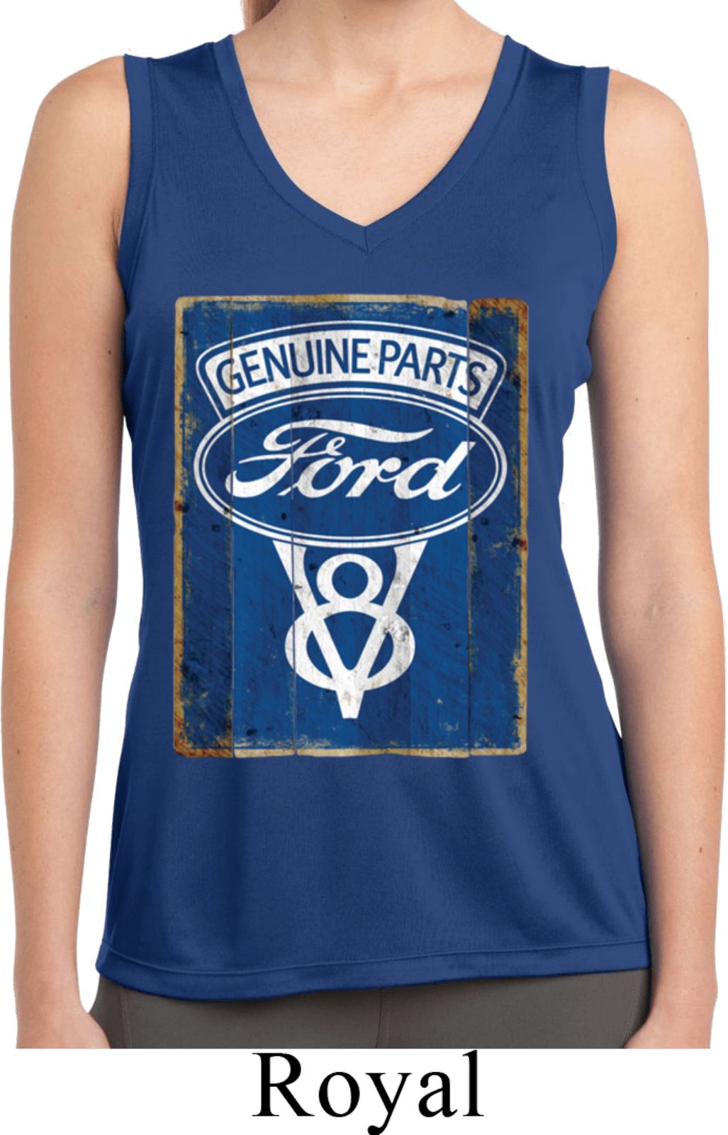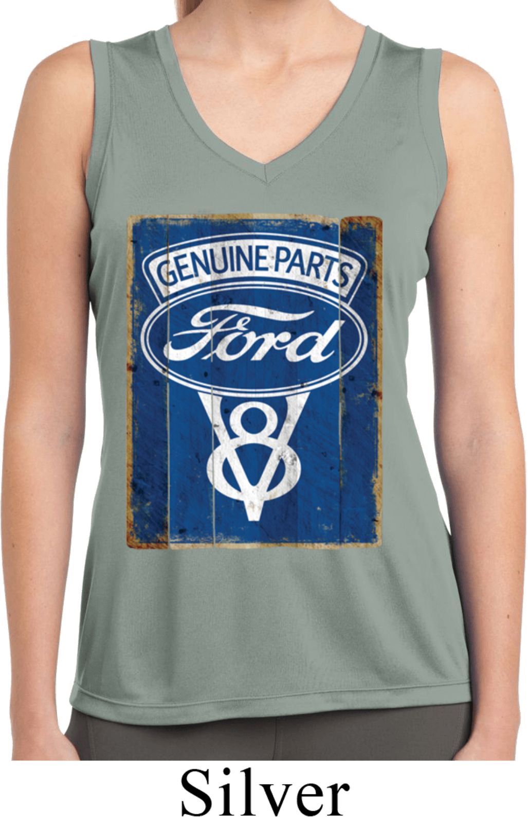 | | Ladies Shirt V8 Genuine Ford Parts Sleeveless Moisture Wicking TeeLadies Shirt V8 Genuine Ford Parts Sleeveless Moisture Wicking Tee 100% polyester Available in Ladies Small, Ladies Medium, Ladies Large, Ladies XL, Ladies 2XL, Ladies 3XL & Ladies 4XL Also available in colors Black, Lime, Navy, Red, Royal, Silver, and White |