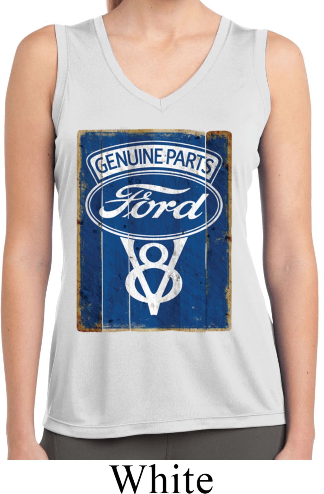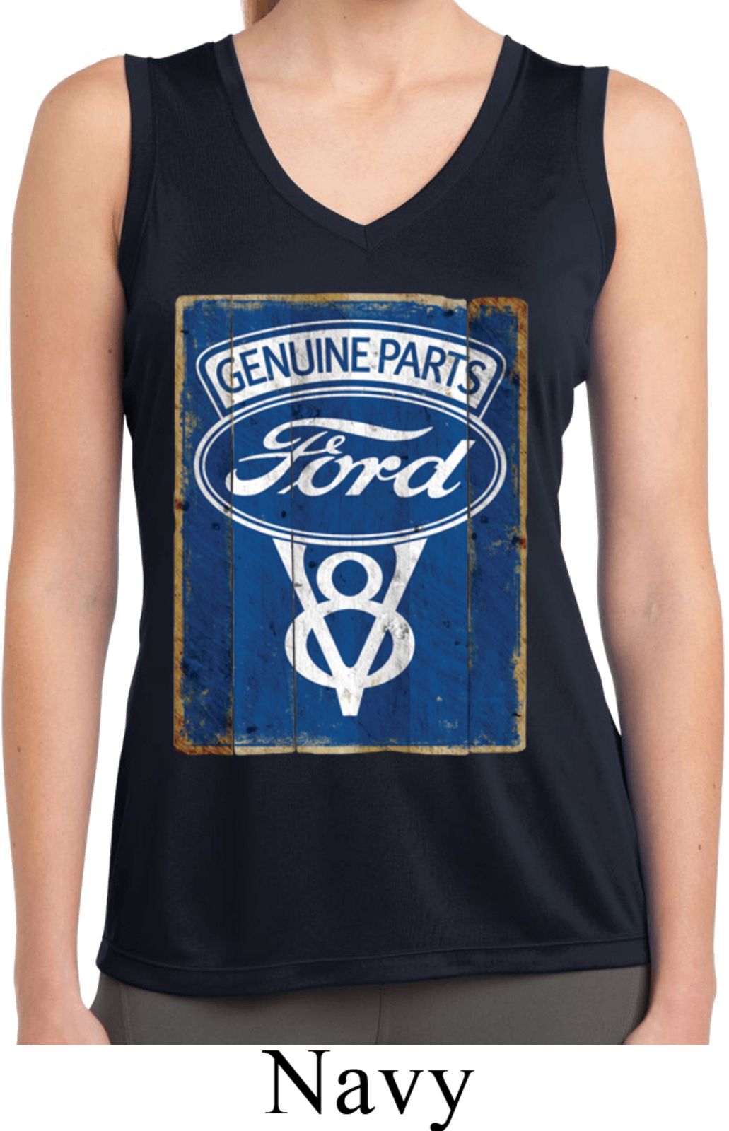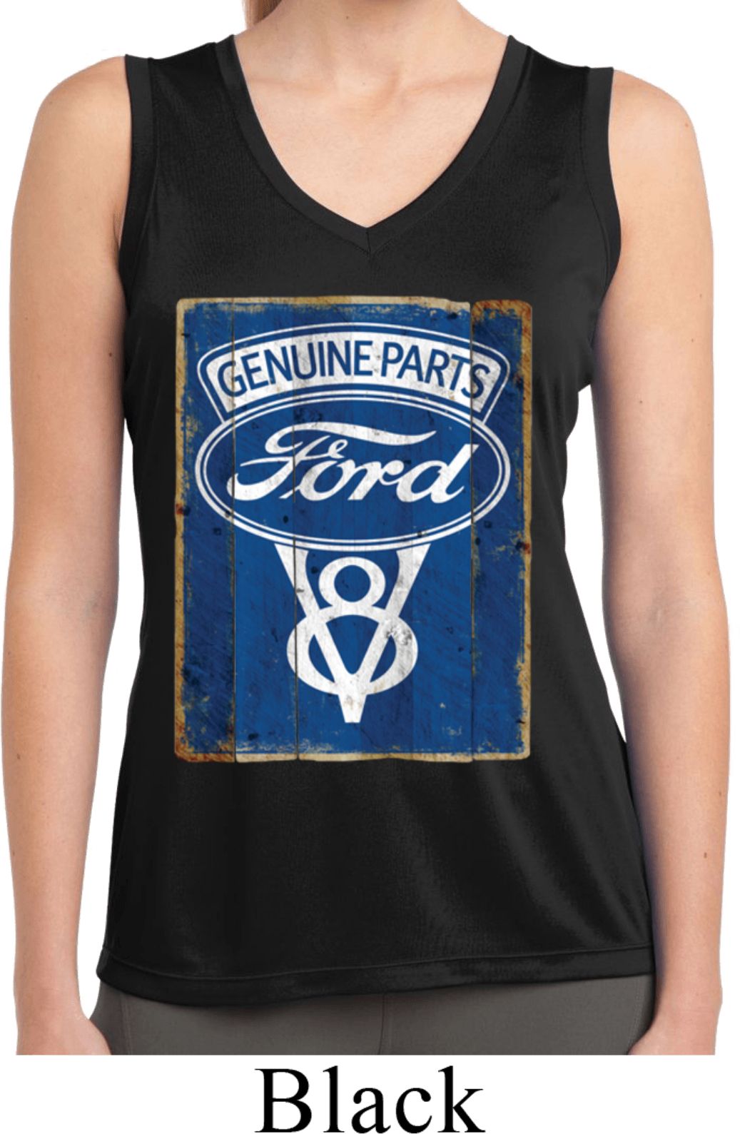 | | Ladies Shirt V8 Genuine Ford Parts Sleeveless Moisture Wicking TeeLadies Shirt V8 Genuine Ford Parts Sleeveless Moisture Wicking Tee 100% polyester Available in Ladies Small, Ladies Medium, Ladies Large, Ladies XL, Ladies 2XL, Ladies 3XL & Ladies 4XL Also available in colors Black, Lime, Navy, Red, Royal, Silver, and White |