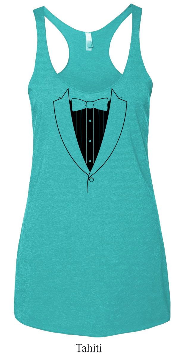 | | Ladies Tanktop Basic Black Tuxedo Tri Blend Racerback Tank TopLadies Tanktop Basic Black Tuxedo Tri Blend Racerback Tank Top A cotton/poly/rayon blend Available in Ladies XS, Ladies Small, Ladies Medium, Ladies Large & Ladies XL Also available in colors Envy, Heather White, Indigo, Macchiato, Premium Heather, Purple Rush, Tahiti, Venetian Grey, Vintage Pink, Vintage Purple, Vintage Red, and Vintage Royal |