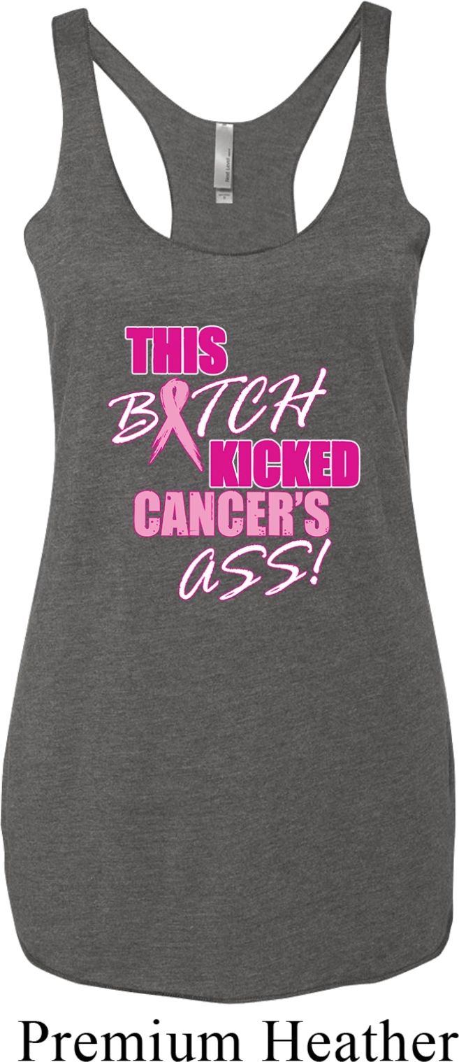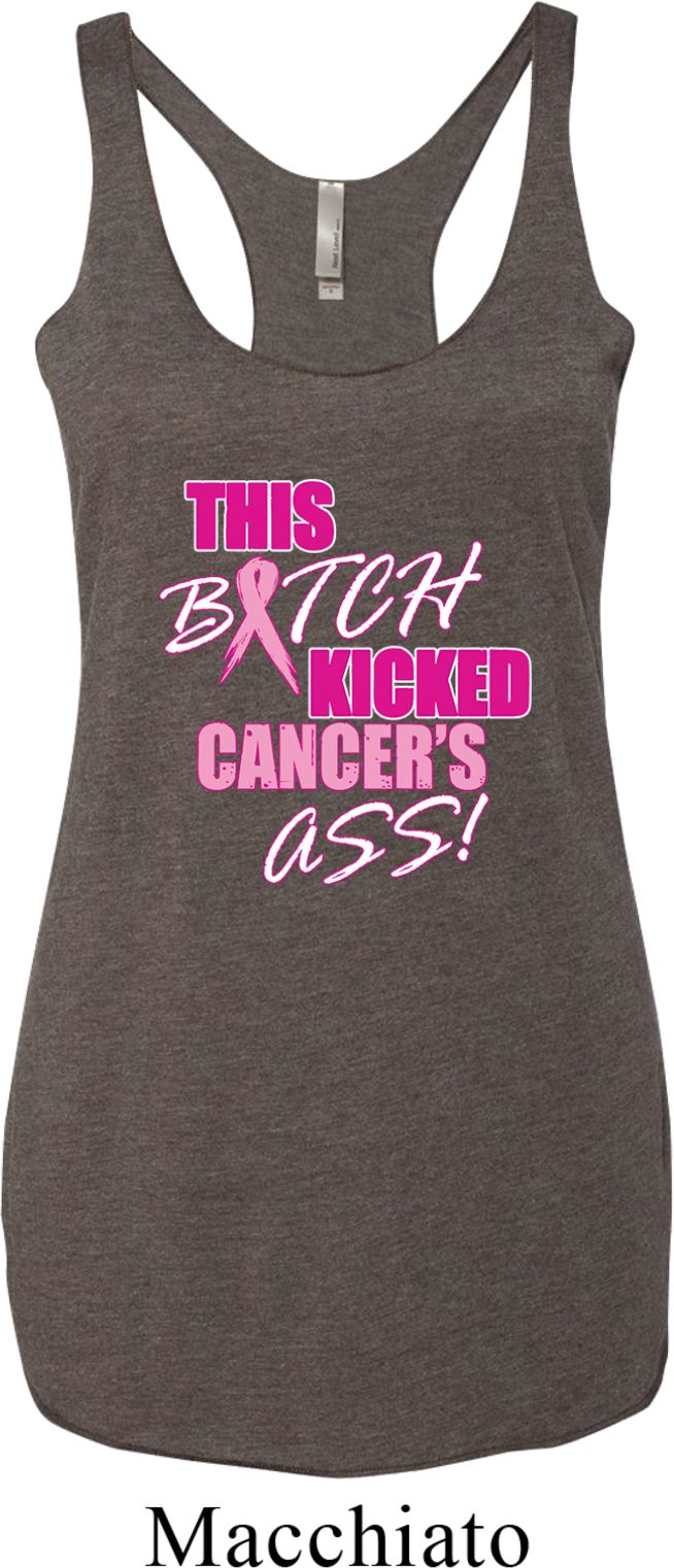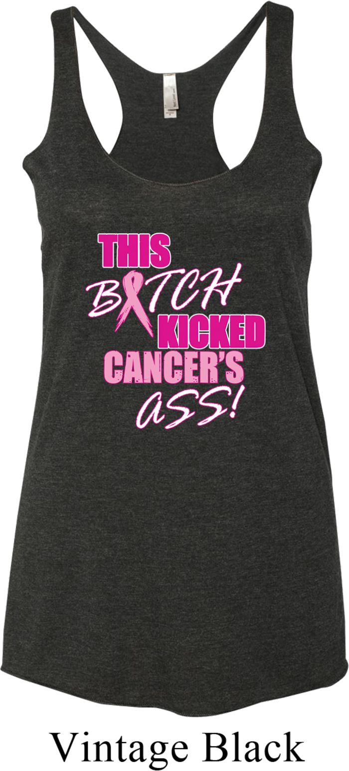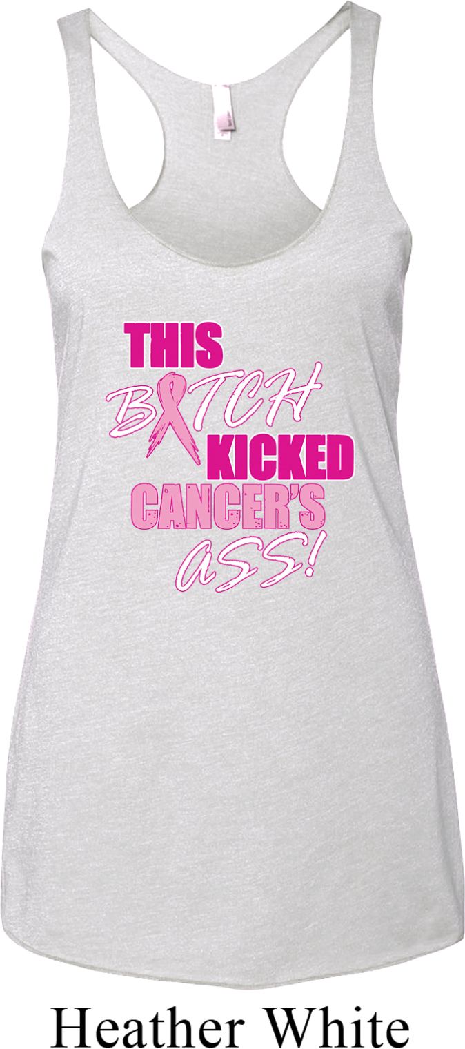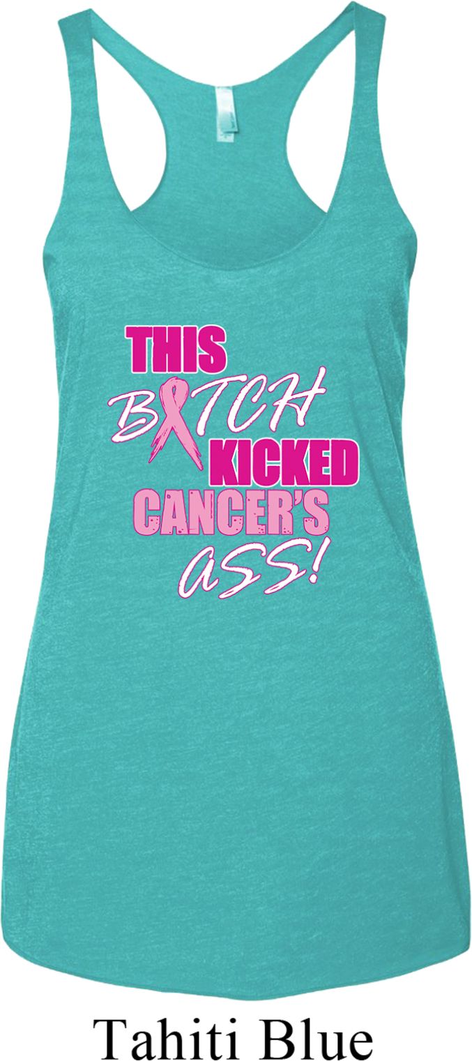 | | Ladies Tanktop Kicked Cancers Ass Tri Blend Racerback Tank TopLadies Tanktop Kicked Cancers Ass Tri Blend Racerback Tank Top A cotton/poly/rayon blend Available in Ladies XS, Ladies Small, Ladies Medium, Ladies Large & Ladies XL Also available in colors Envy, Heather White, Indigo, Macchiato, Premium Heather, Purple Rush, Tahiti, Venetian Grey, Vintage Black, Vintage Navy, Vintage Pink, Vintage Purple, Vintage Red, and Vintage Royal |