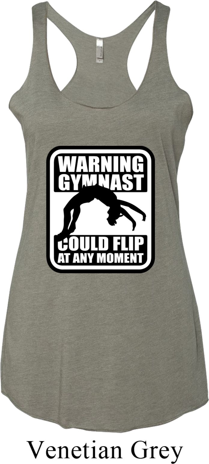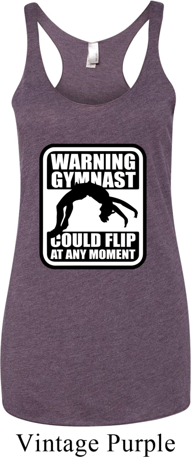 | | Ladies Tanktop Warning Gymnast Could Flip Tri Blend Racerback Tank TopLadies Tanktop Warning Gymnast Could Flip Tri Blend Racerback Tank Top A cotton/poly/rayon blend Available in Ladies XS, Ladies Small, Ladies Medium, Ladies Large & Ladies XL Also available in colors Envy, Heather White, Indigo, Macchiato, Premium Heather, Purple Rush, Tahiti, Venetian Grey, Vintage Black, Vintage Navy, Vintage Pink, Vintage Purple, VIntage Red, and Vintage Royal |