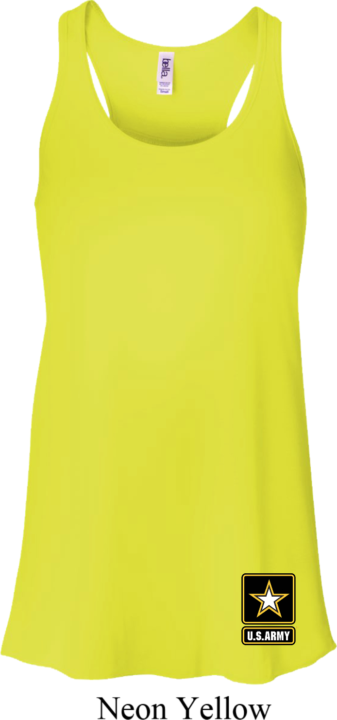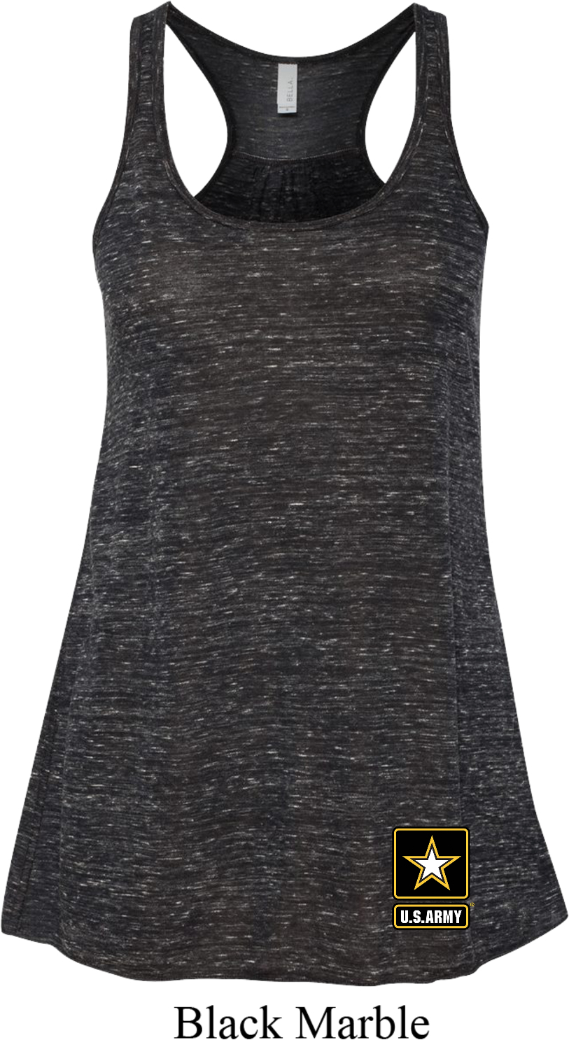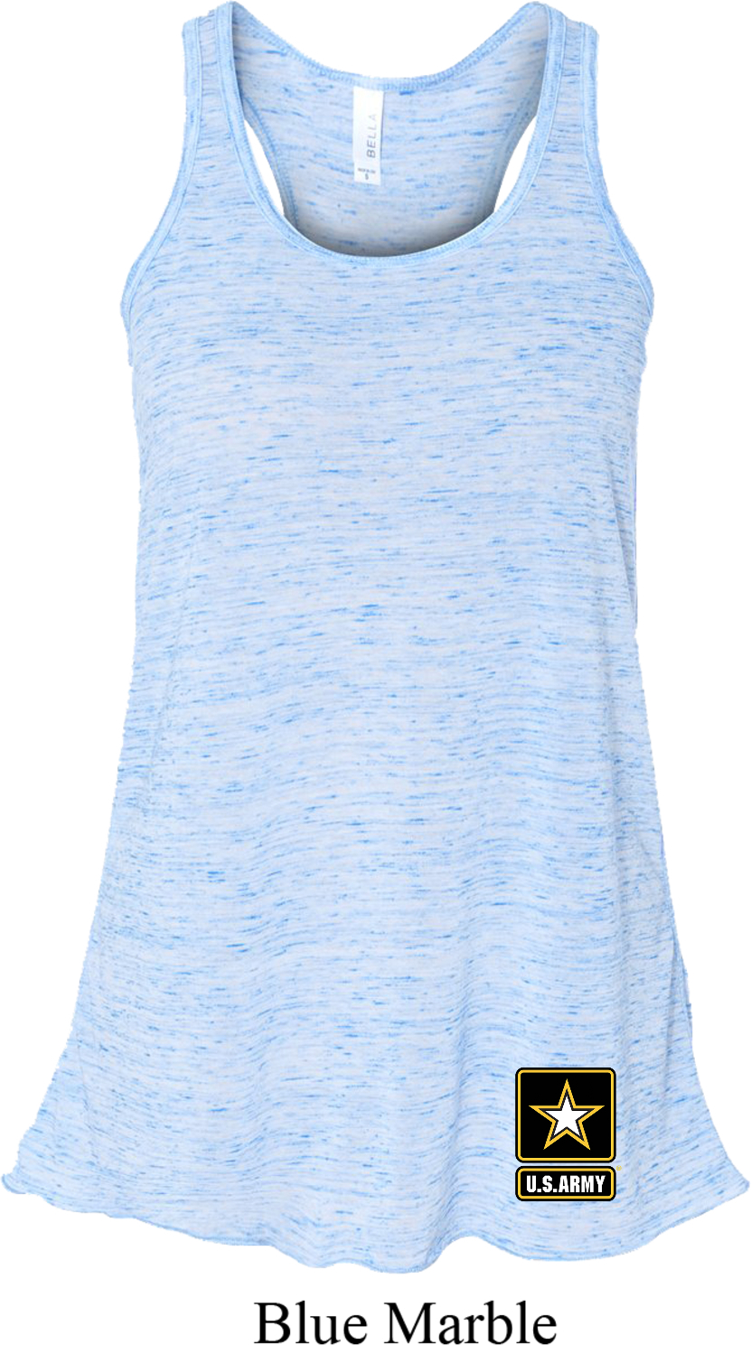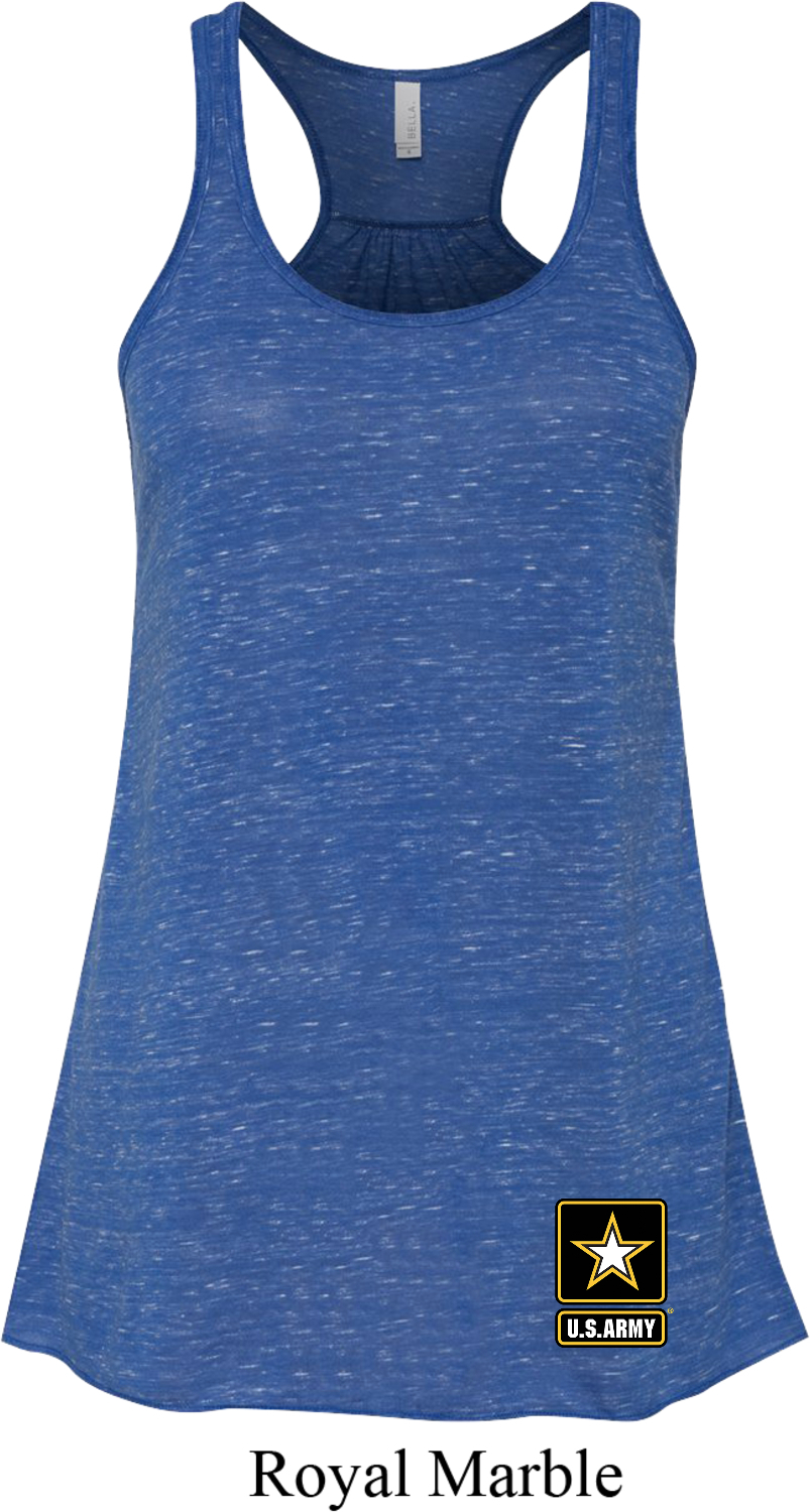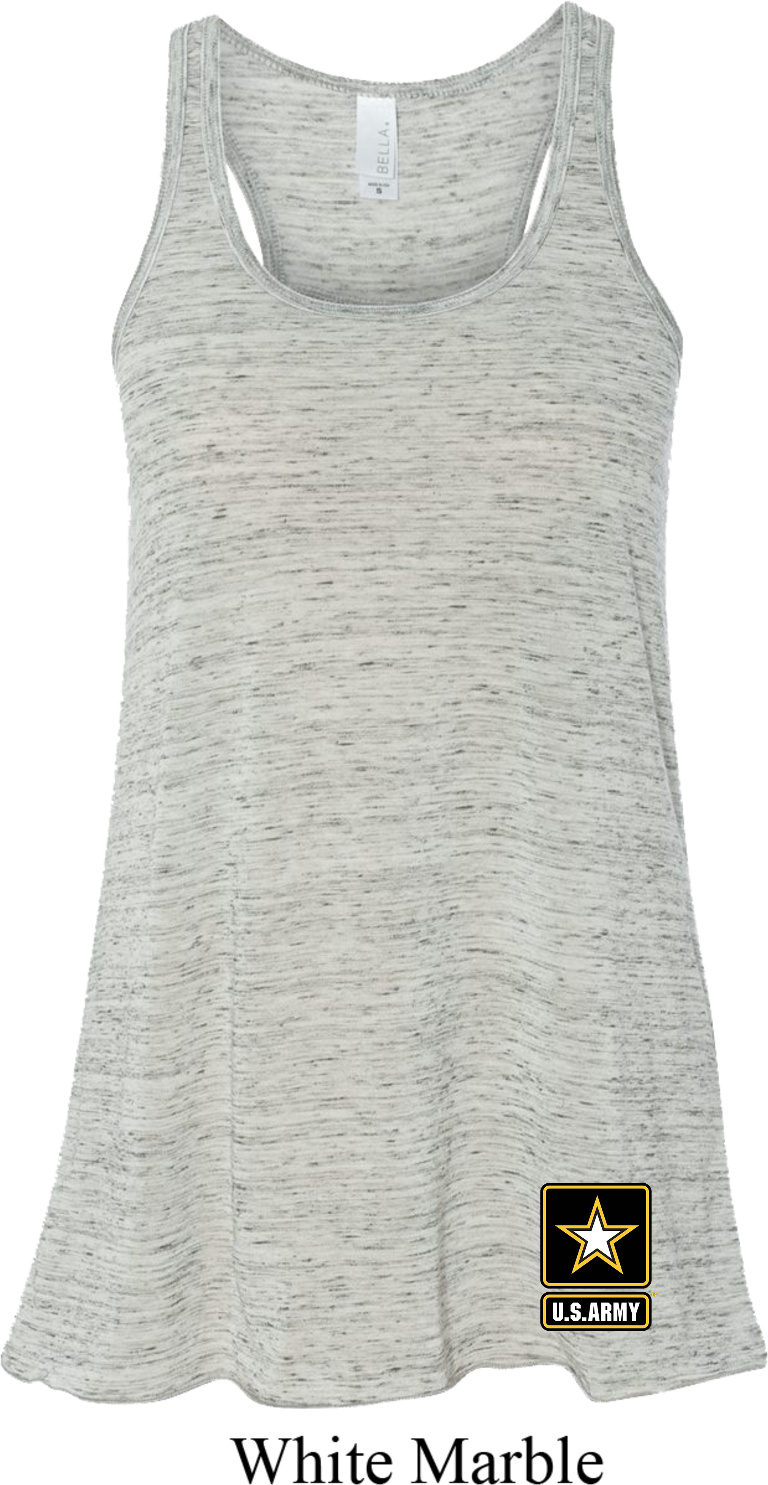 | | Ladies US Army Bottom Print Flowy RacerbackA ladies flowy racerback featuring the U.S. Army logo at the bottom. Solid colors are made of poly/rayon; Marble colors are made of poly/cotton; Stripe colors are made of rayon/poly. Available in sizes Small through 2XL. Machine wash cold with like colors; dry low heat. ![]() |