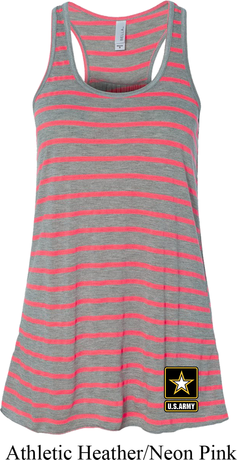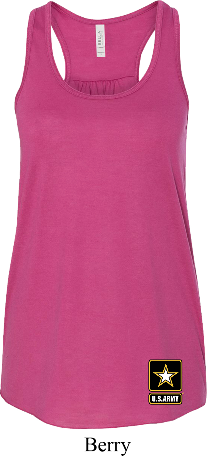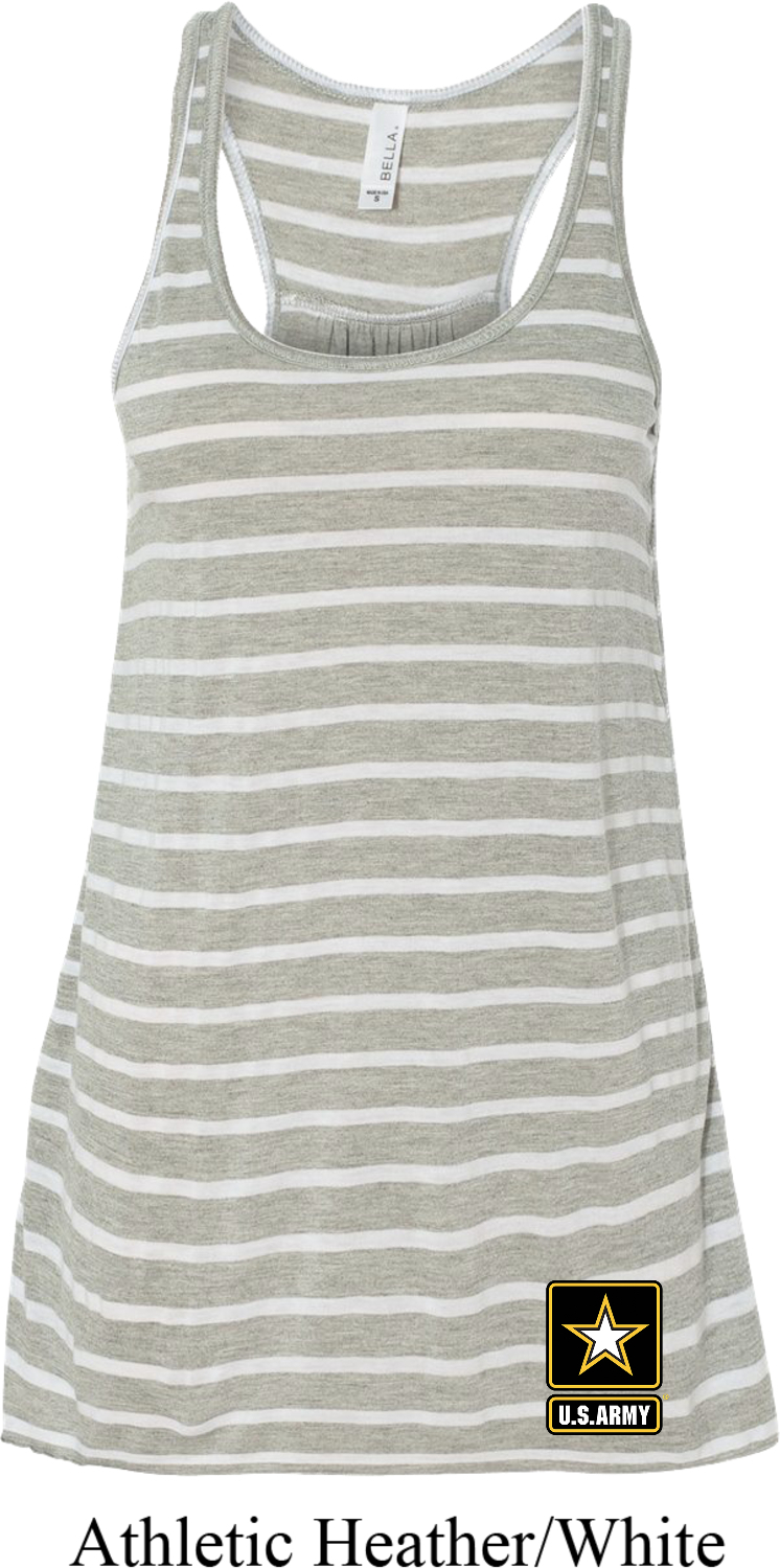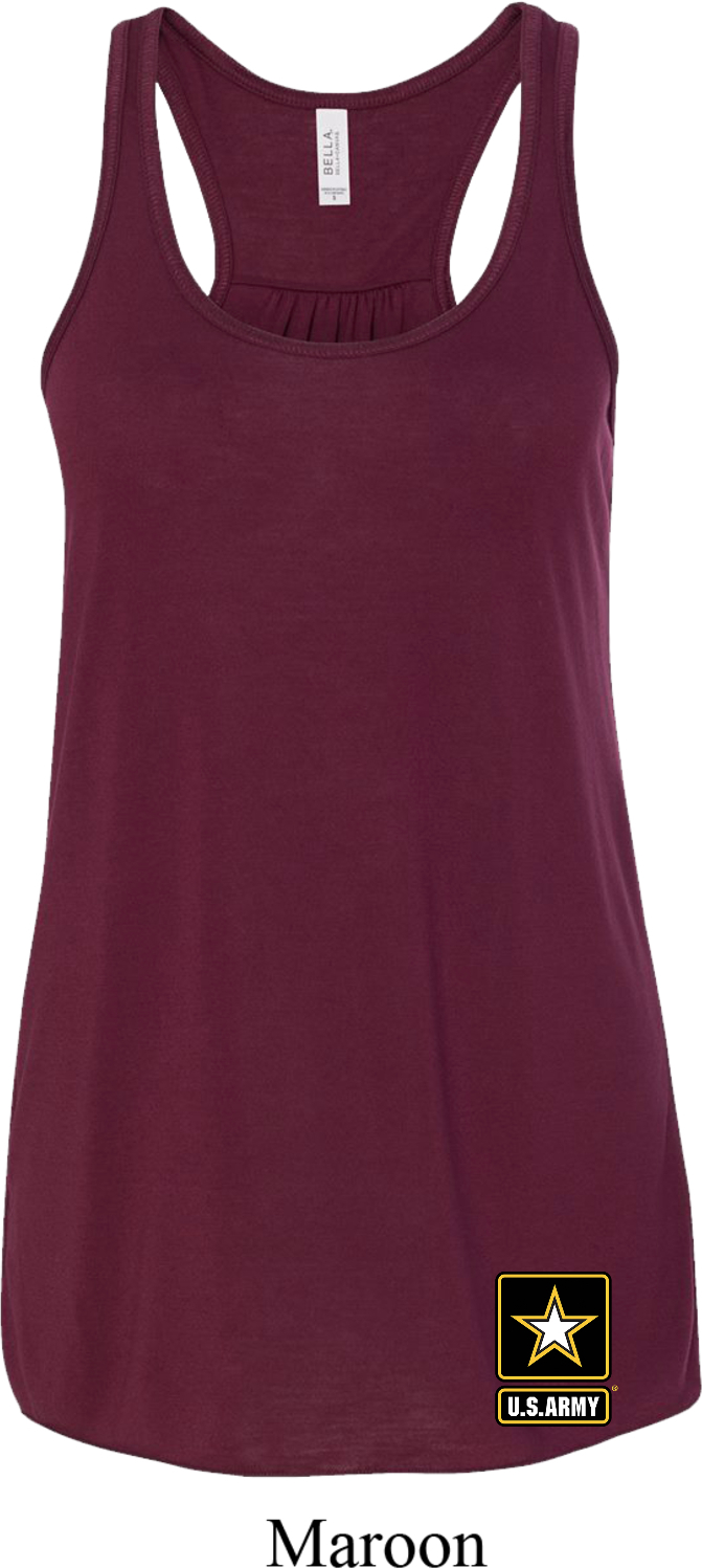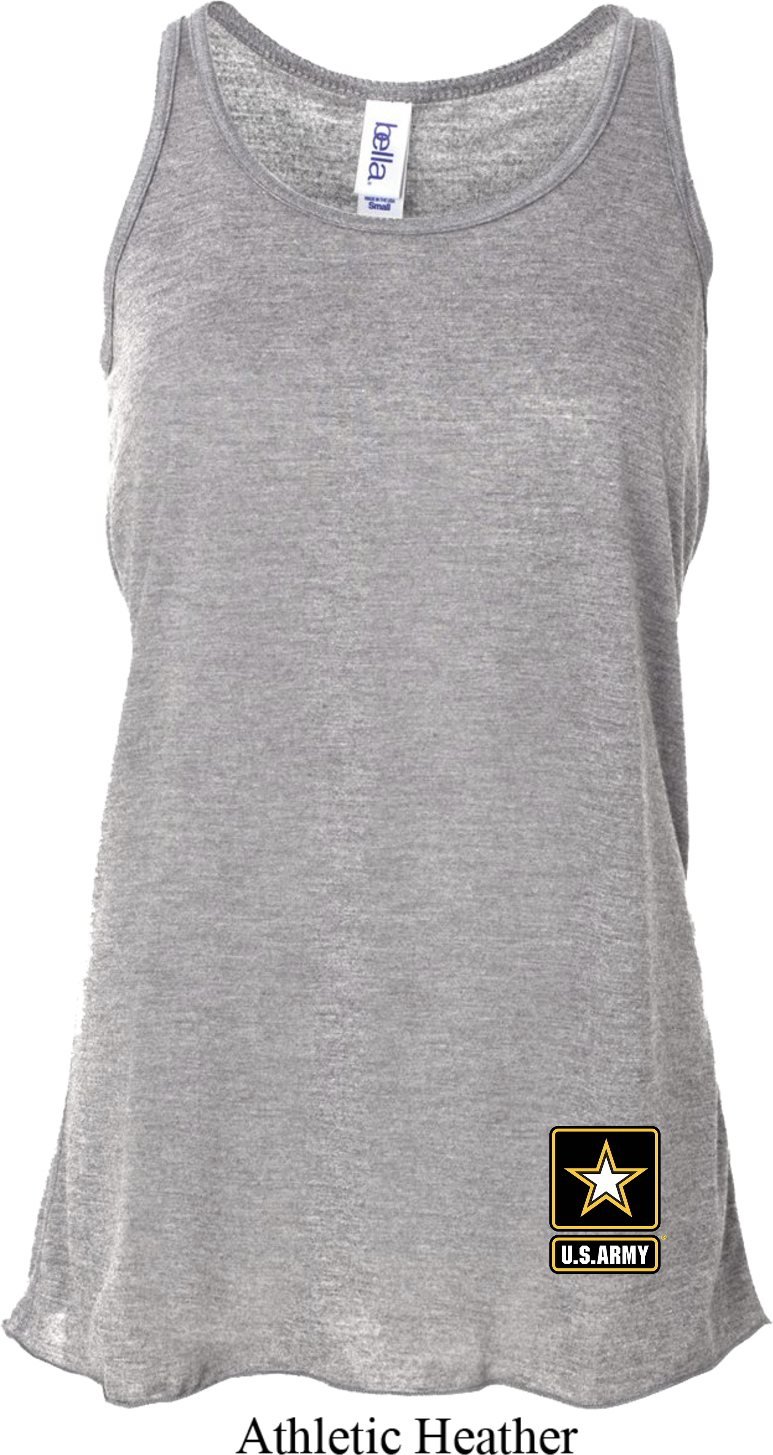 | | Ladies US Army Bottom Print Flowy RacerbackA ladies flowy racerback featuring the U.S. Army logo at the bottom. Solid colors are made of poly/rayon; Marble colors are made of poly/cotton; Stripe colors are made of rayon/poly. Available in sizes Small through 2XL. Machine wash cold with like colors; dry low heat. ![]() |