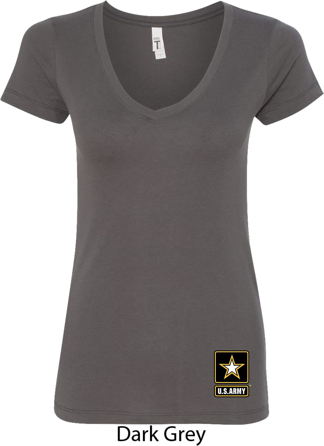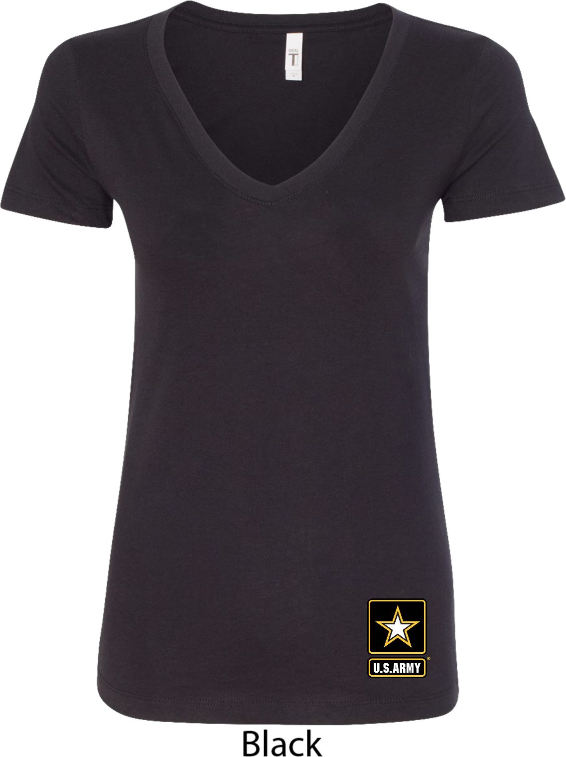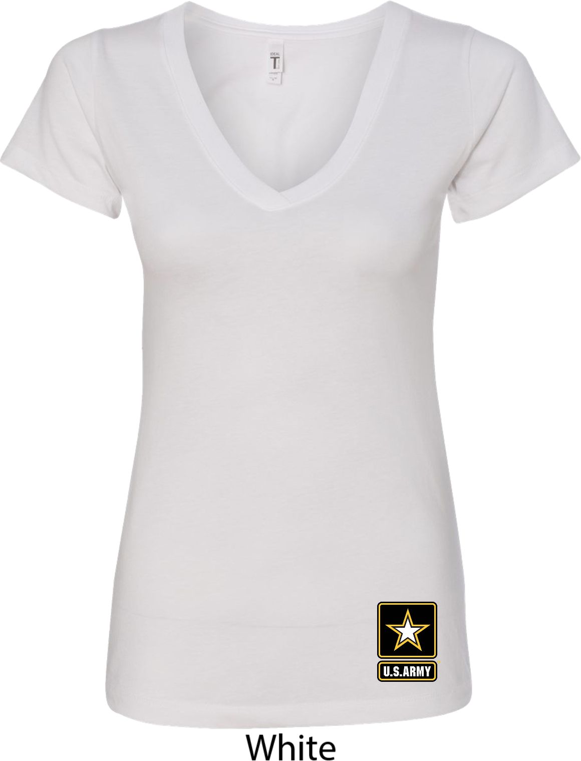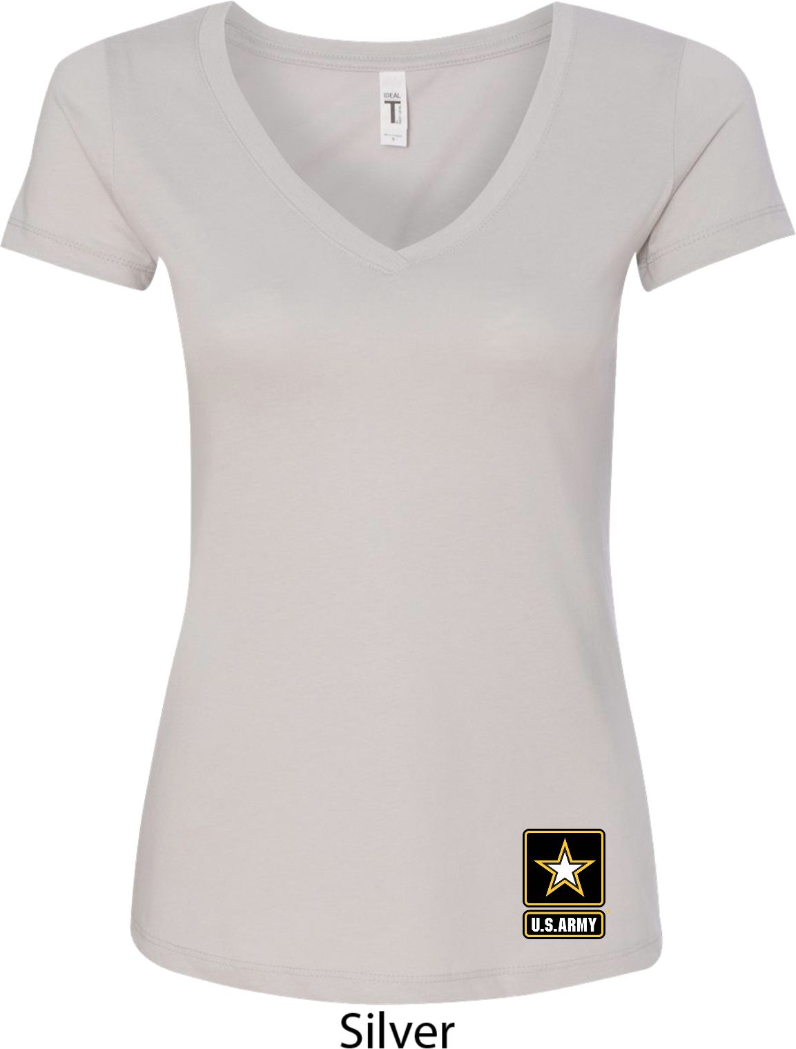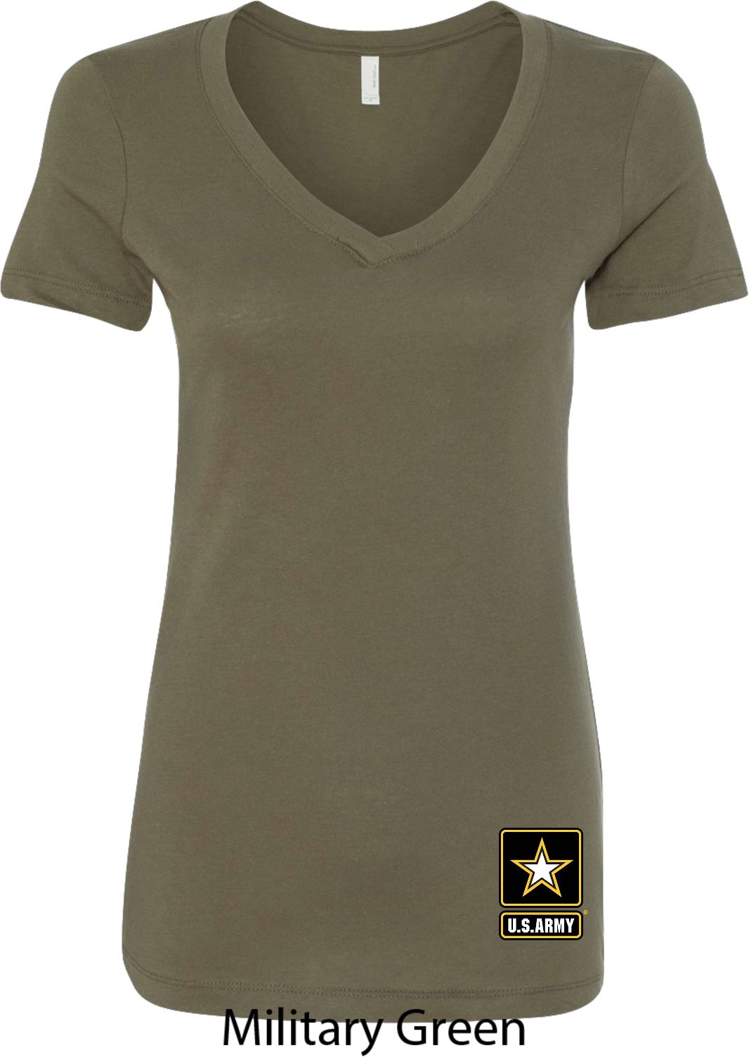 A ladies fitted v-neck shirt featuring the U.S. Army logo at the bottom. Our ladies shirt is made with a blend of cotton/poly. Available in sizes Small through 2XL. Machine wash cold with like colors; dry low heat.