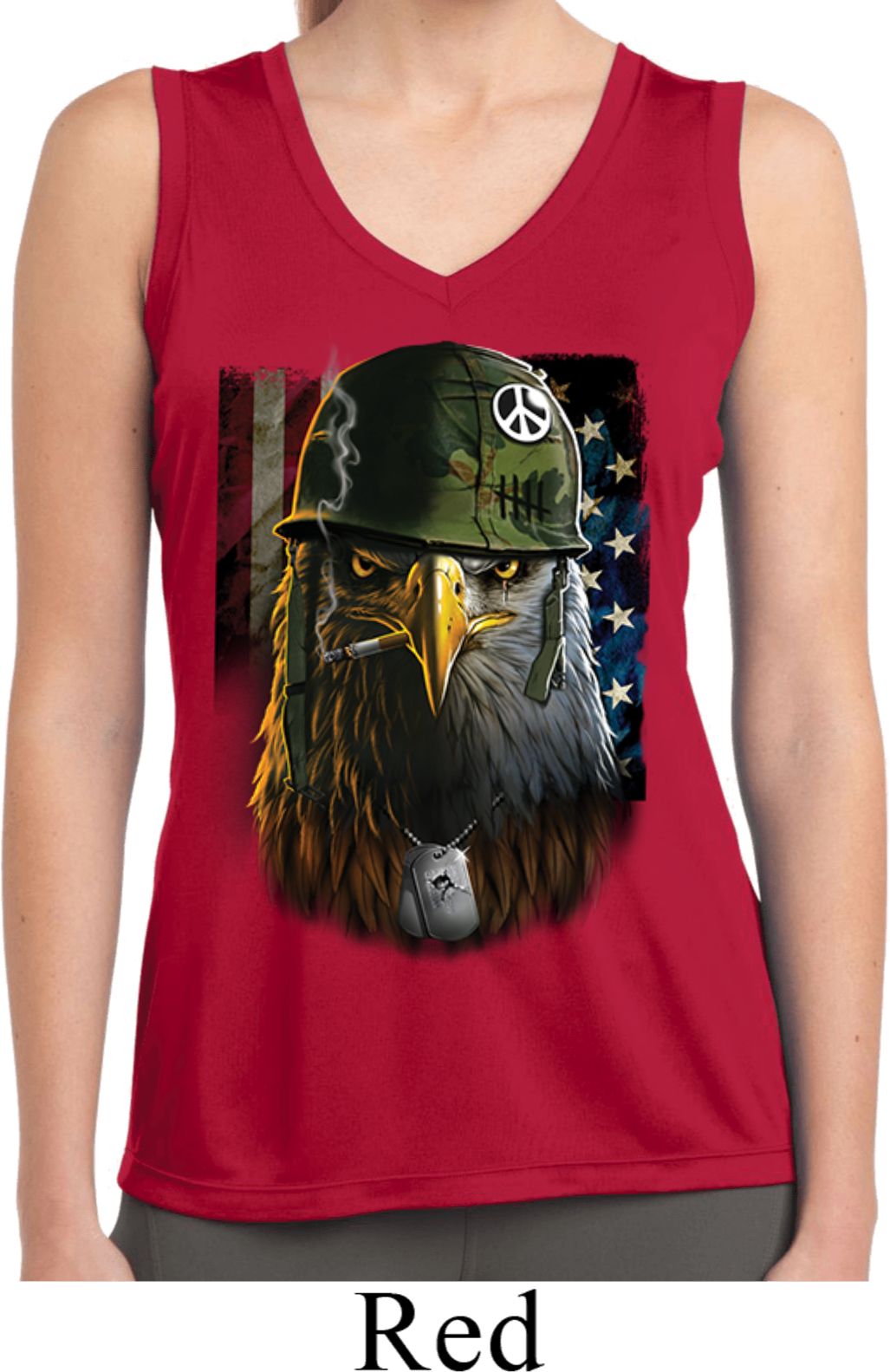 | | Ladies USA Tank Top American Eagle Dry Wicking Sleeveless ShirtA ladies dry wicking tanktop featuring a unique American Eagle design with the American Flag in the background. Our ladies tank top is made of 100% polyester. Available in sizes Small through 4XL. Machine wash cold with like colors; dry low heat. ![]() |