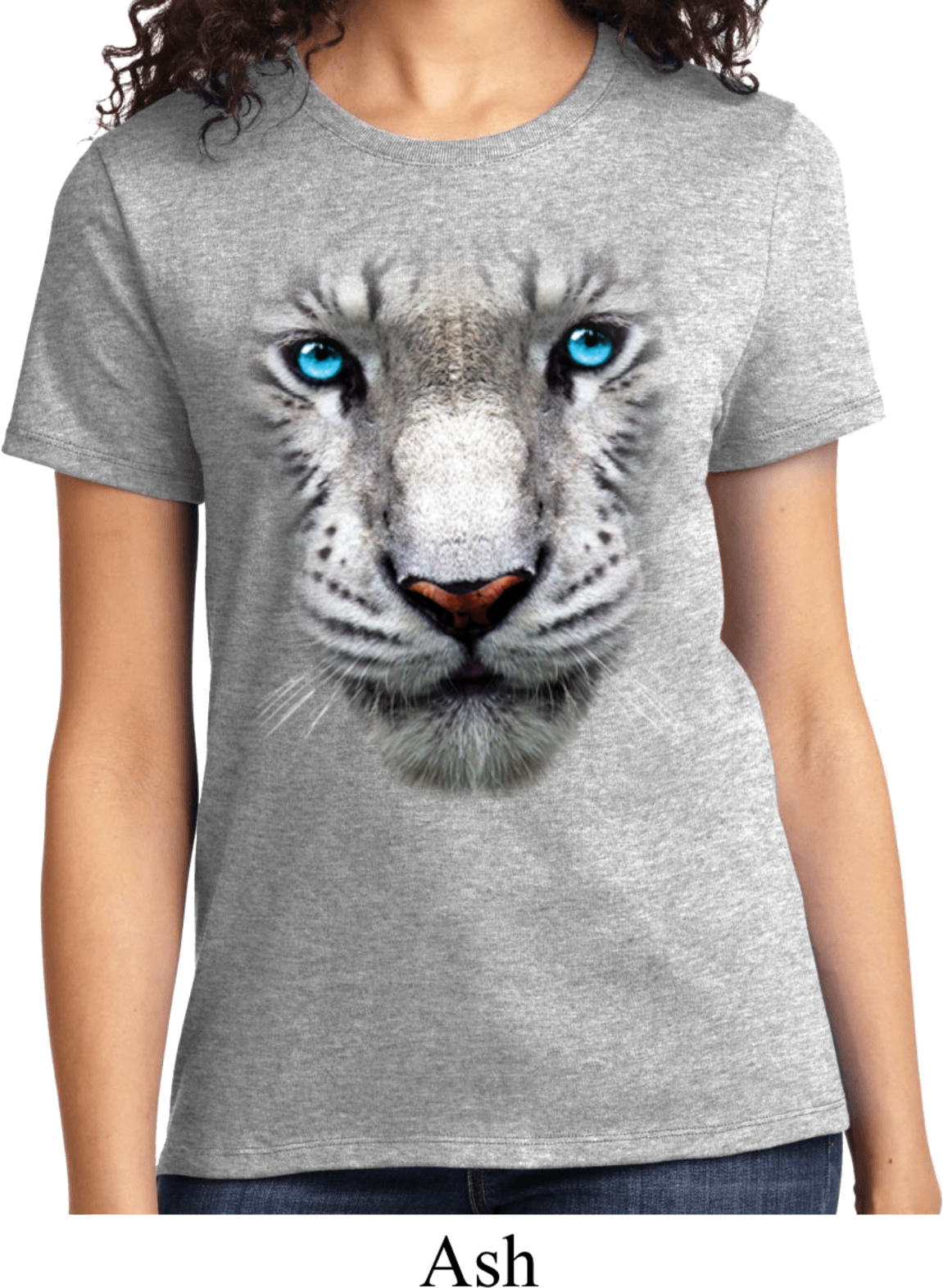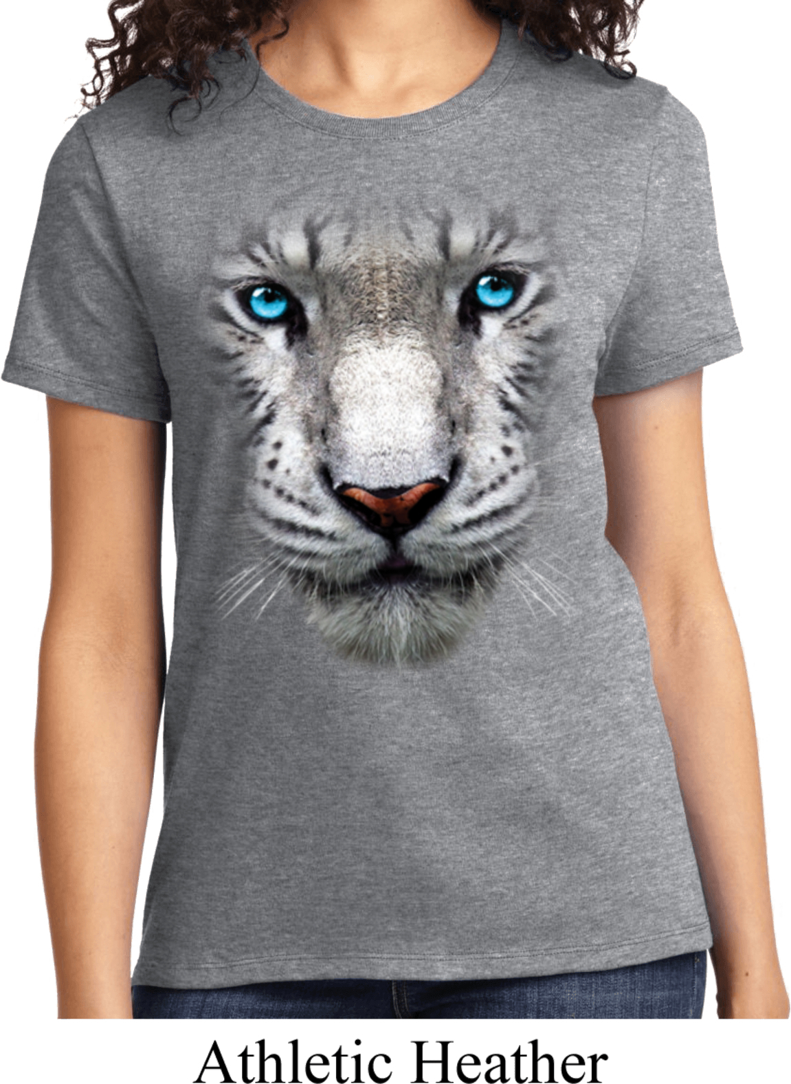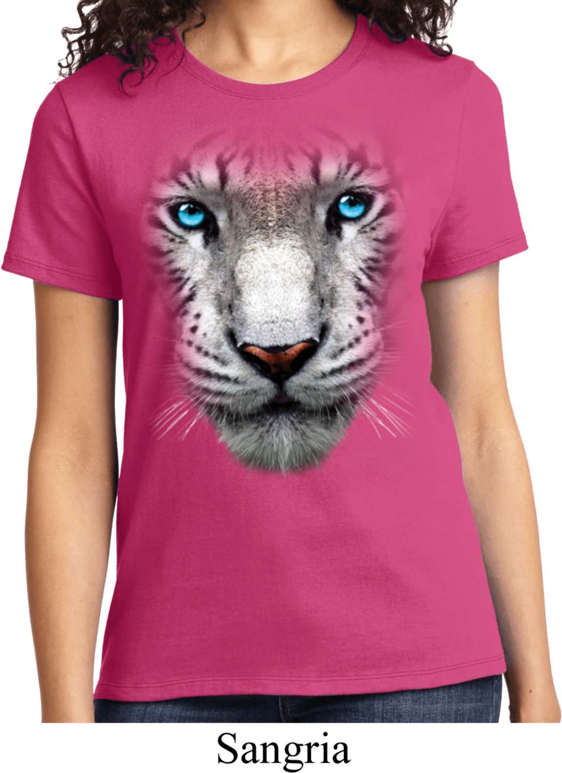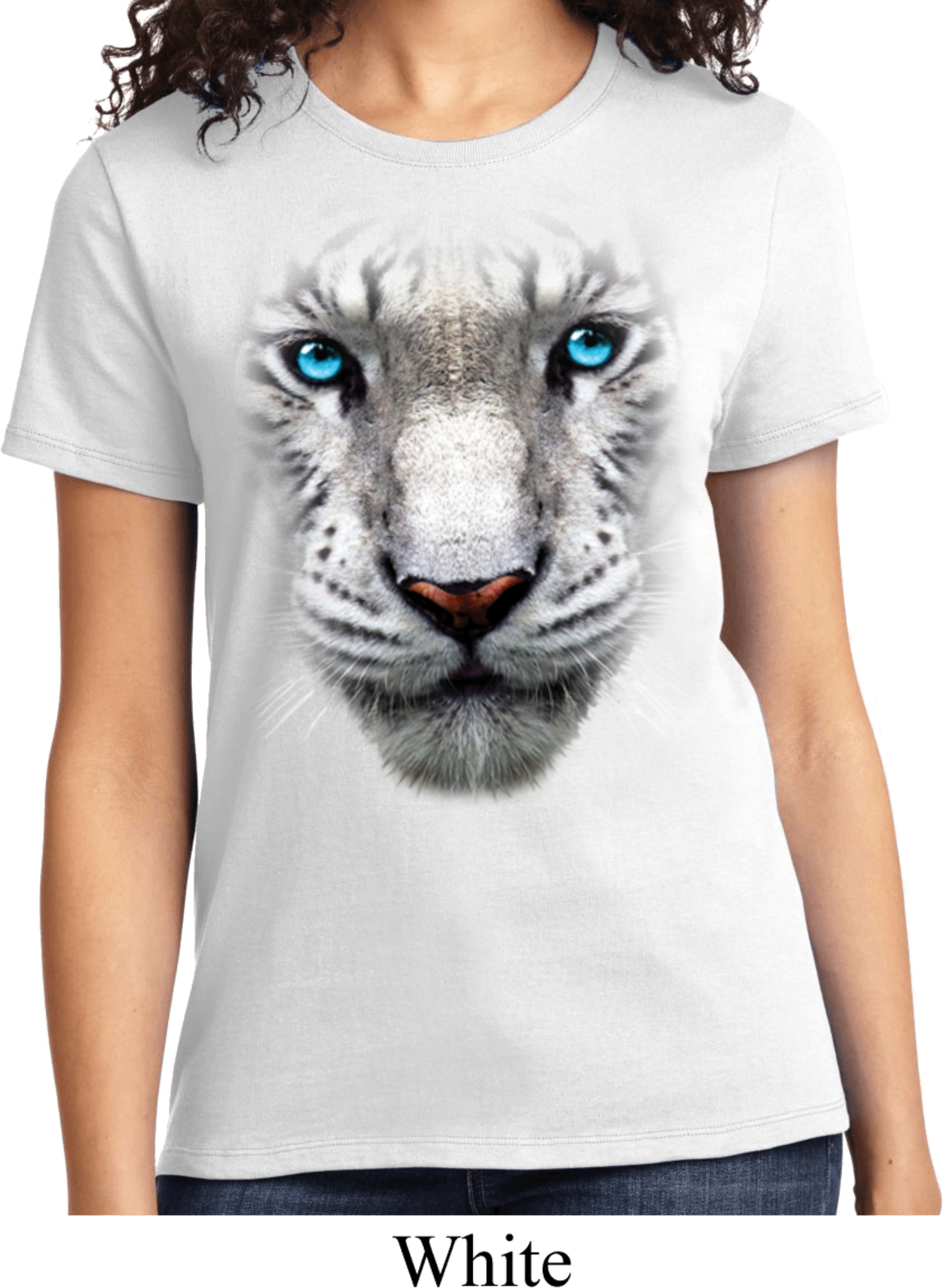 | | Ladies White Tiger Shirt Big White Tiger Face Tee T-ShirtLadies White Tiger Shirt Big White Tiger Face Tee T-Shirt 100% cotton Ash an athletic heather are a cotton/poly blend Available in Ladies Small, Ladies Medium, Ladies Large, Ladies XL, Ladies 2XL, Ladies 3XL & Ladies 4XL Also available in colors Aquatic Blue, Ash, Athletic Heather, Black, Candy Pink, Cardinal, Charcoal, Chocolate, Daffodil Yellow, Dark Green, Kelly, Light Blue, Lime, Natural, Navy, Orange, Pale Pink, Purple, Red, Royal, Sangria, and Stonewashed Blue ![]() |