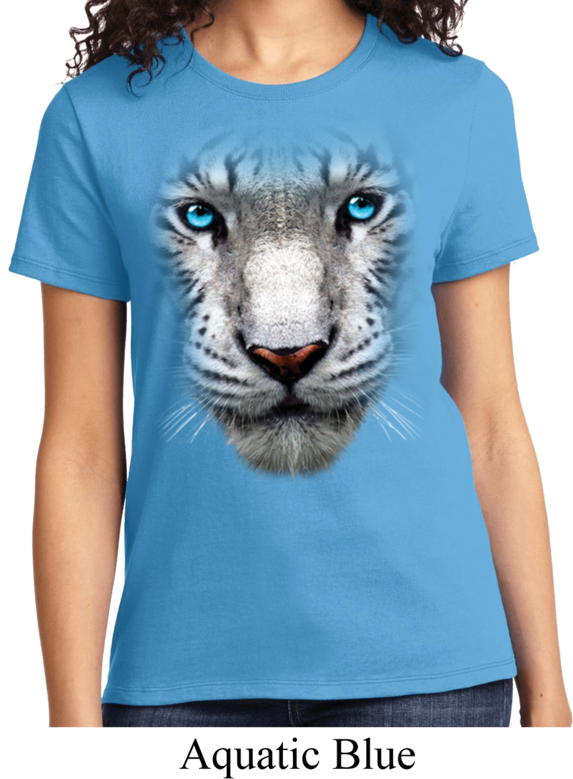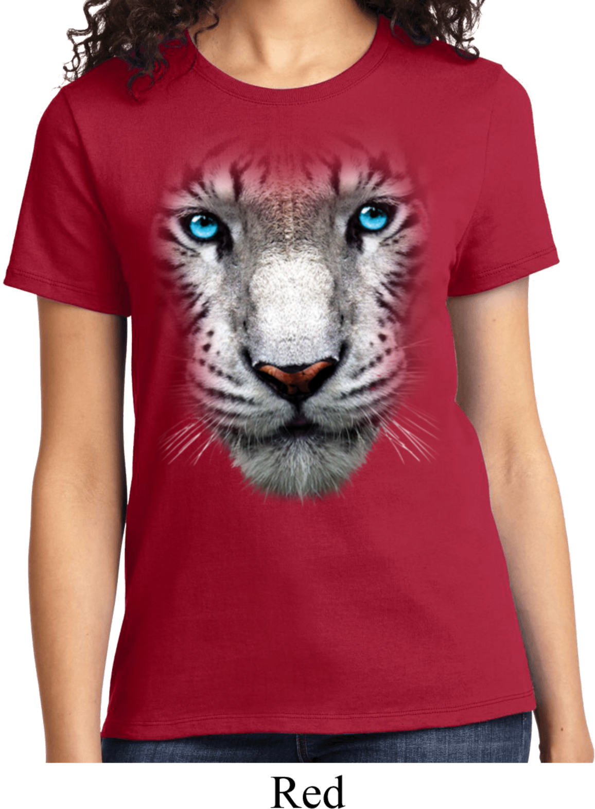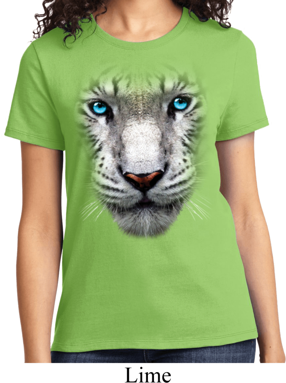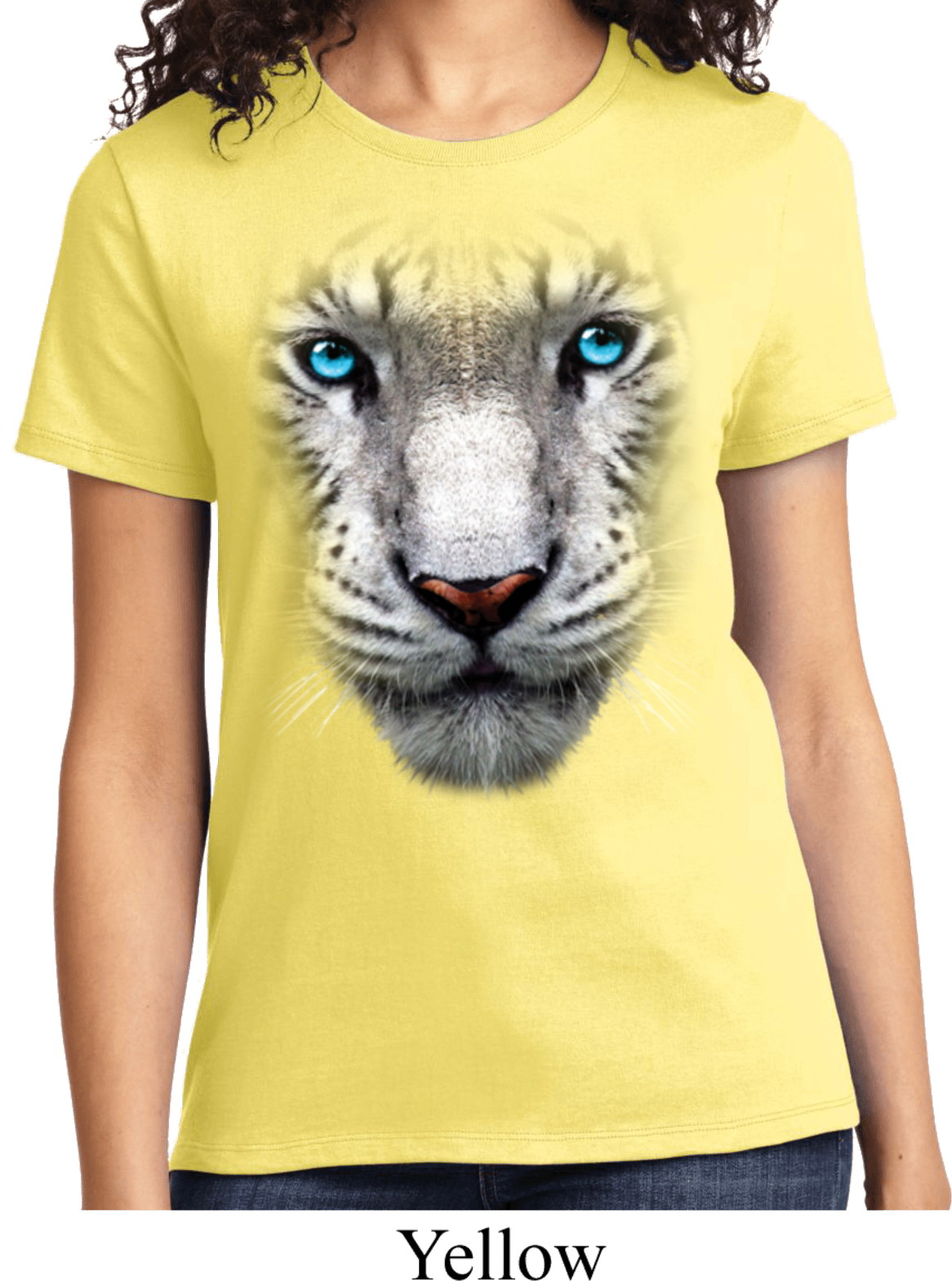 | | Ladies White Tiger Shirt Big White Tiger Face Tee T-ShirtLadies White Tiger Shirt Big White Tiger Face Tee T-Shirt 100% cotton Ash an athletic heather are a cotton/poly blend Available in Ladies Small, Ladies Medium, Ladies Large, Ladies XL, Ladies 2XL, Ladies 3XL & Ladies 4XL Also available in colors Aquatic Blue, Ash, Athletic Heather, Black, Candy Pink, Cardinal, Charcoal, Chocolate, Daffodil Yellow, Dark Green, Kelly, Light Blue, Lime, Natural, Navy, Orange, Pale Pink, Purple, Red, Royal, Sangria, and Stonewashed Blue ![]() |
