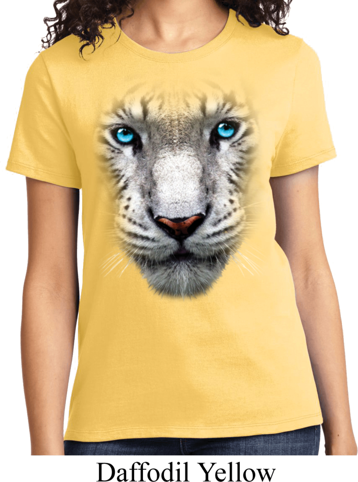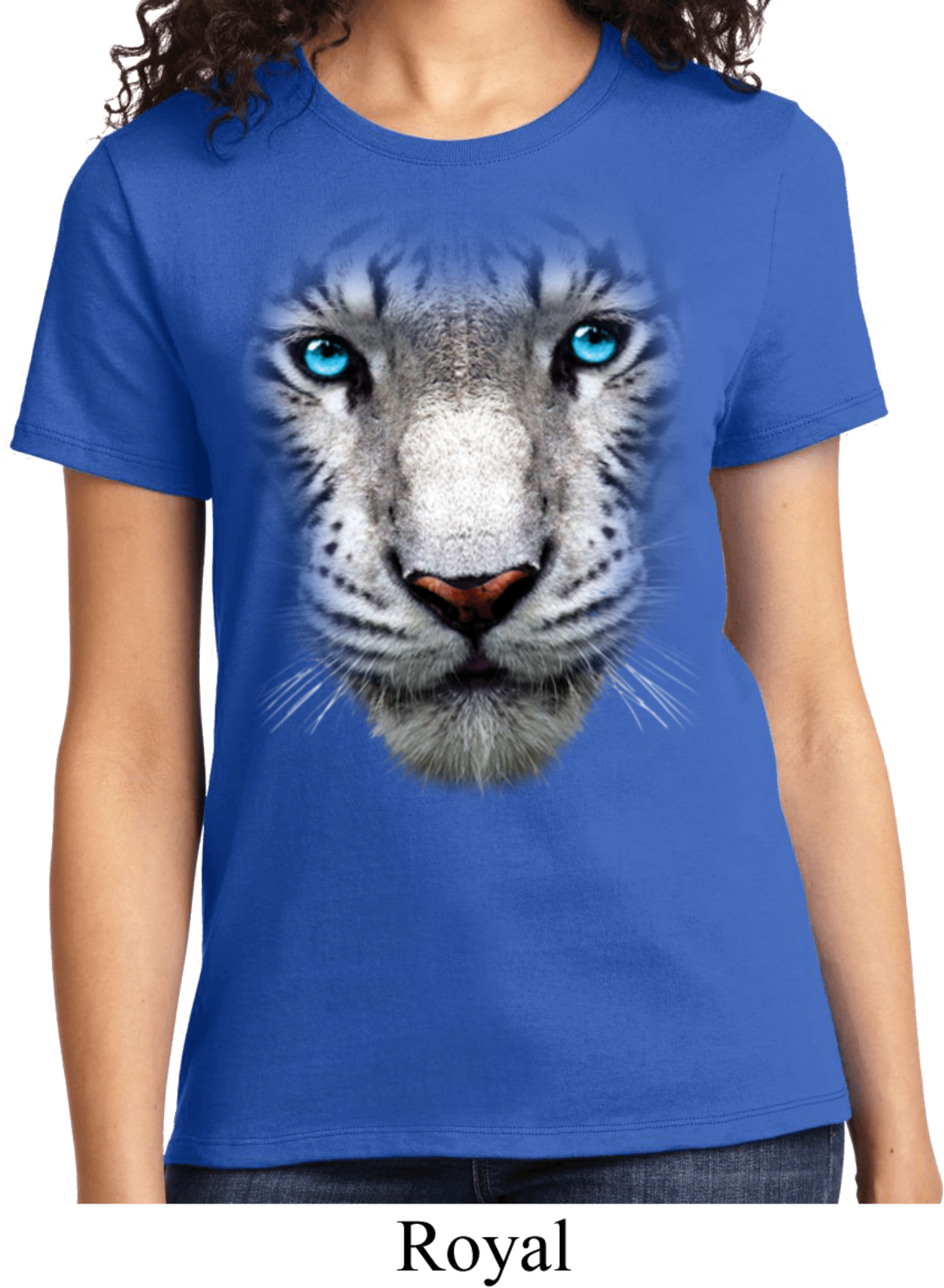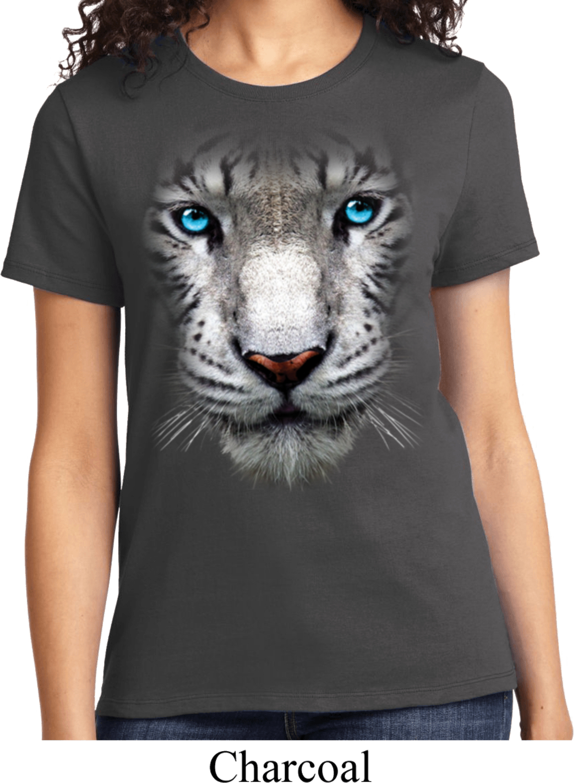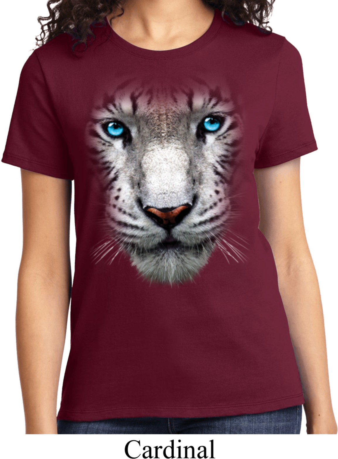 | | Ladies White Tiger Shirt Big White Tiger Face Tee T-ShirtLadies White Tiger Shirt Big White Tiger Face Tee T-Shirt 100% cotton Ash an athletic heather are a cotton/poly blend Available in Ladies Small, Ladies Medium, Ladies Large, Ladies XL, Ladies 2XL, Ladies 3XL & Ladies 4XL Also available in colors Aquatic Blue, Ash, Athletic Heather, Black, Candy Pink, Cardinal, Charcoal, Chocolate, Daffodil Yellow, Dark Green, Kelly, Light Blue, Lime, Natural, Navy, Orange, Pale Pink, Purple, Red, Royal, Sangria, and Stonewashed Blue ![]() |