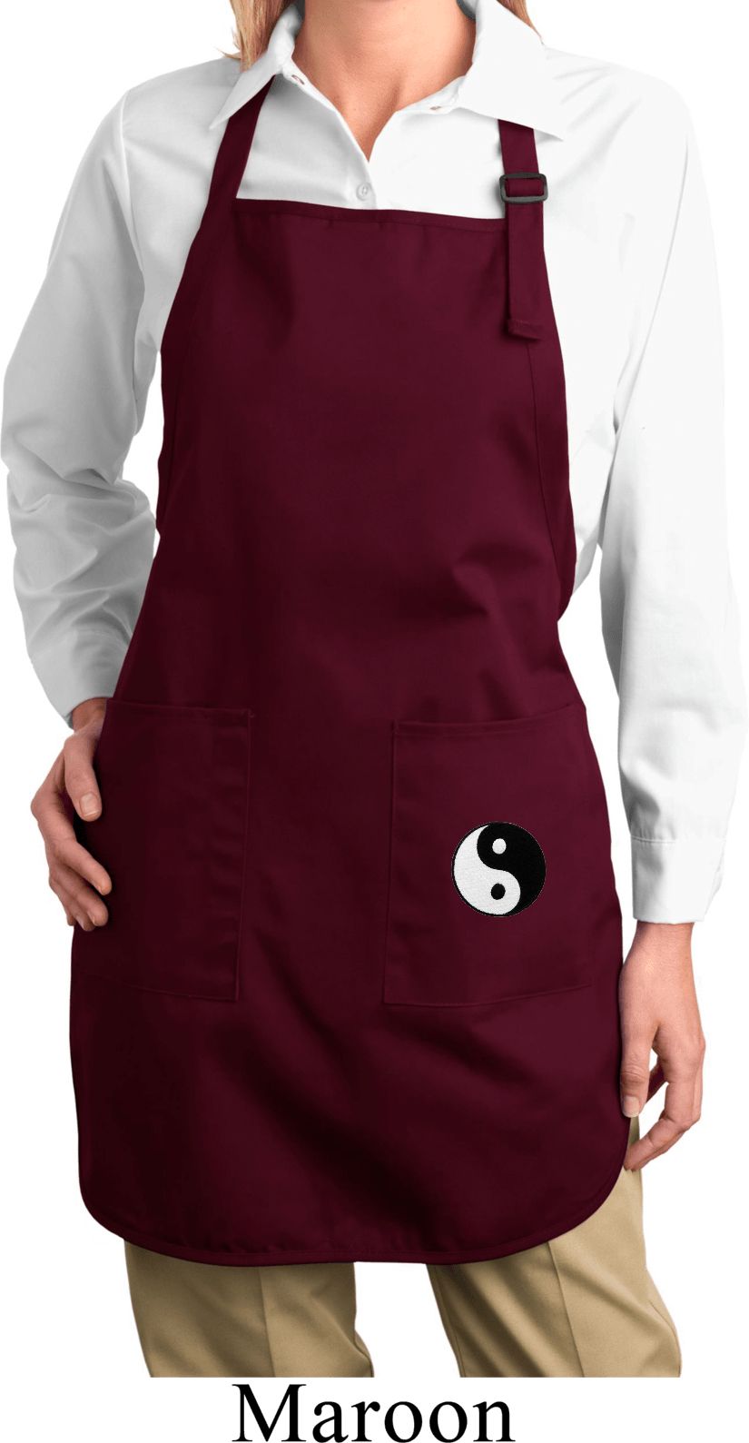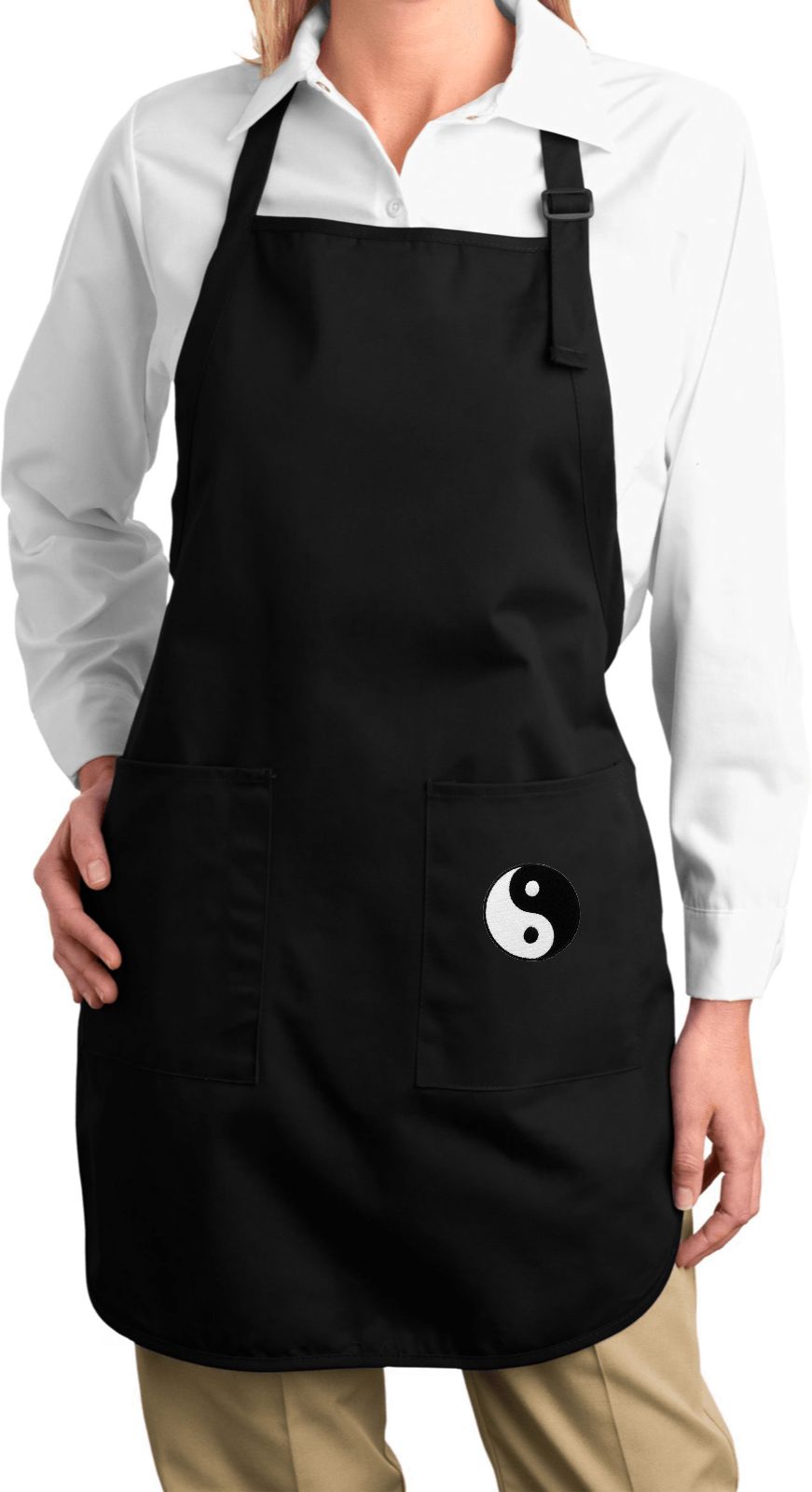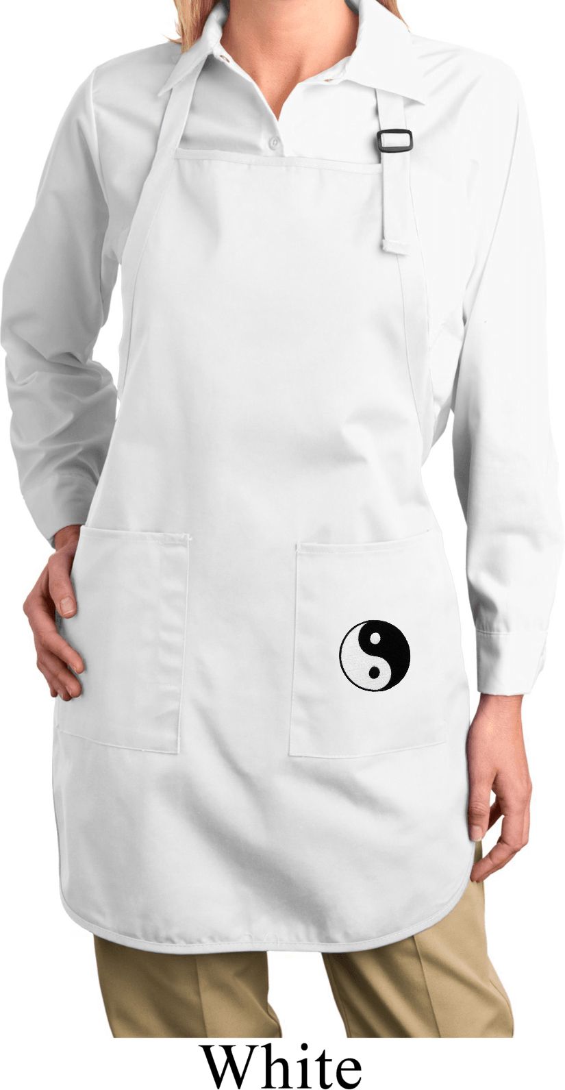 | | Ladies Yin Yang Patch Bottom Print Full Length Apron with PocketsLadies Yin Yang Patch Bottom Print Full Length Apron with Pockets A 100% cotton twill One Size Also available in colors Black, Coffee, Hunter Green, Maroon, Navy, Red, Royal, Stone, Washed Denim, and White |