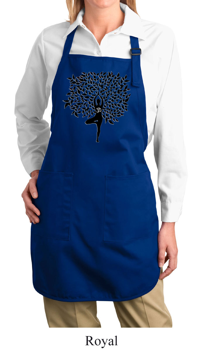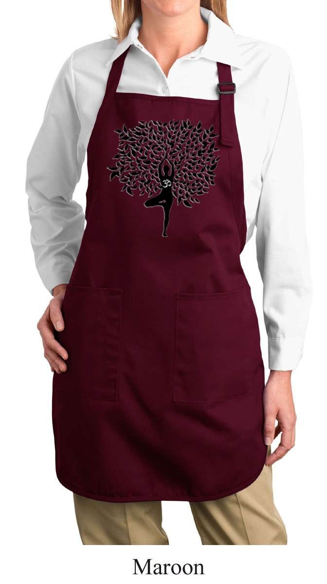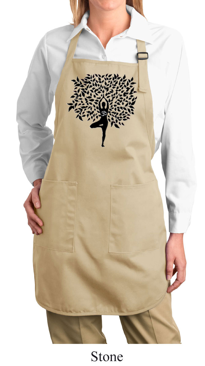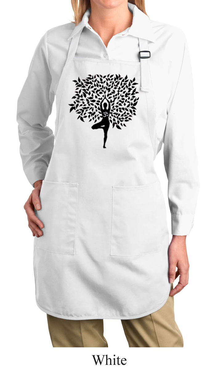 Ladies Yoga Apron Black Tree Pose Full Length Apron with Pockets