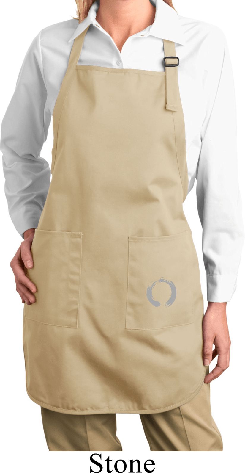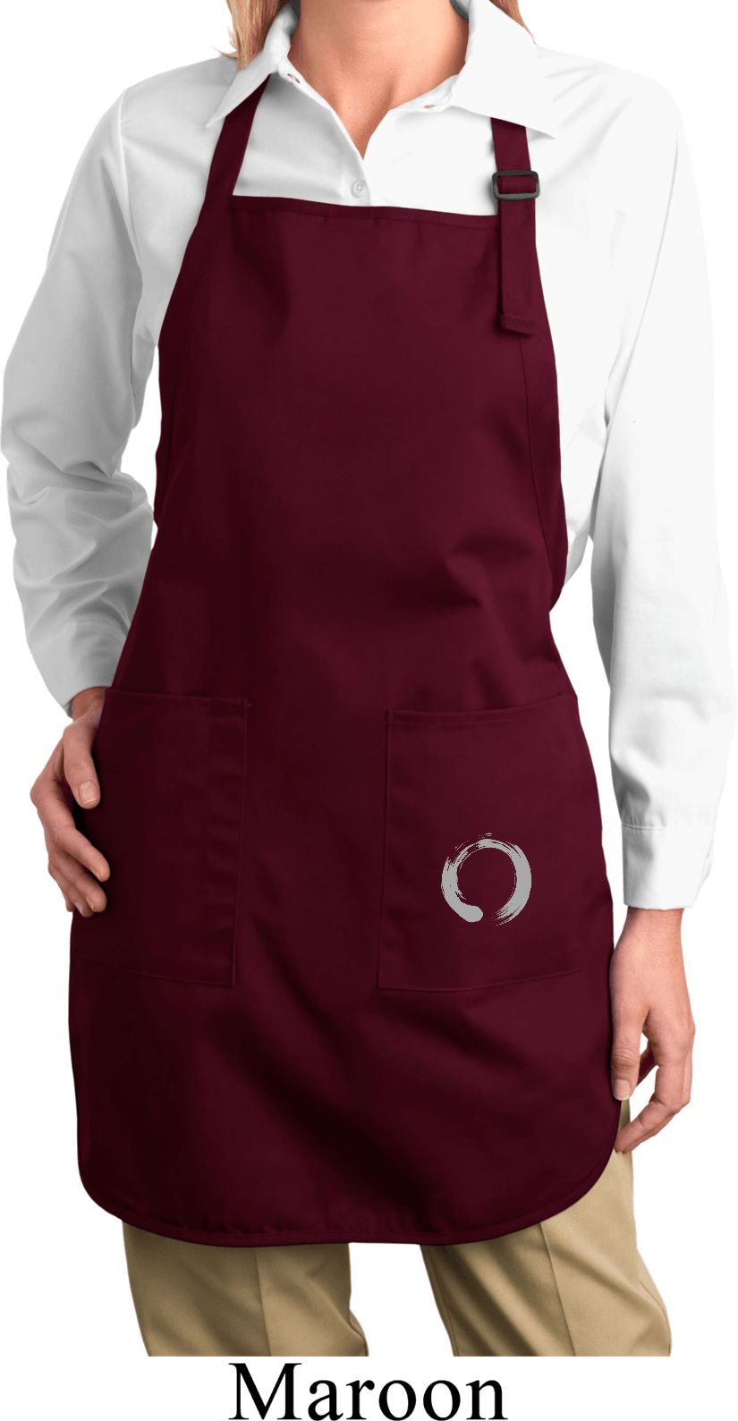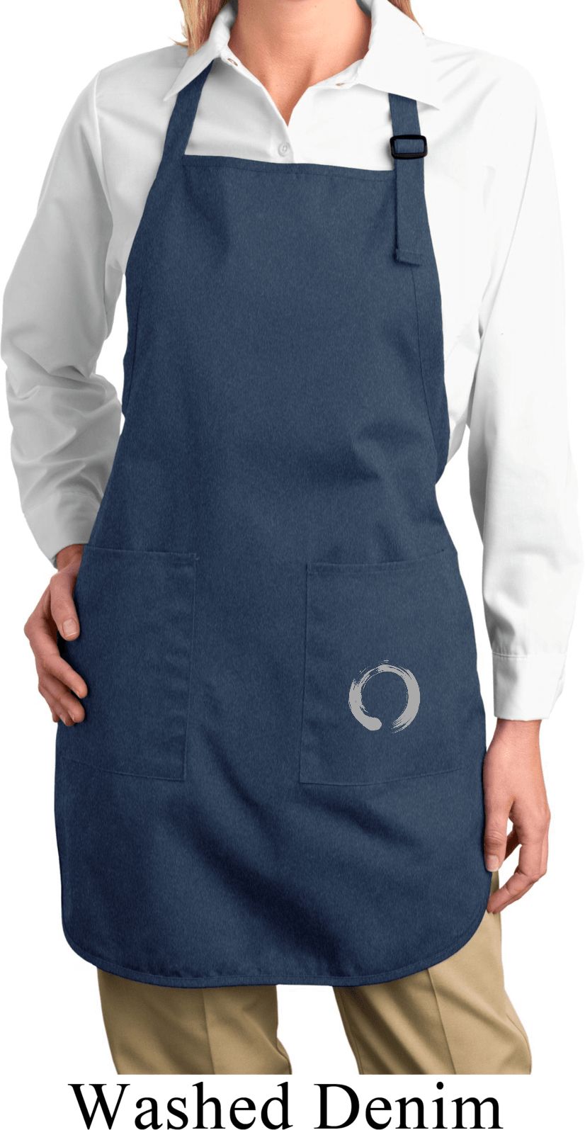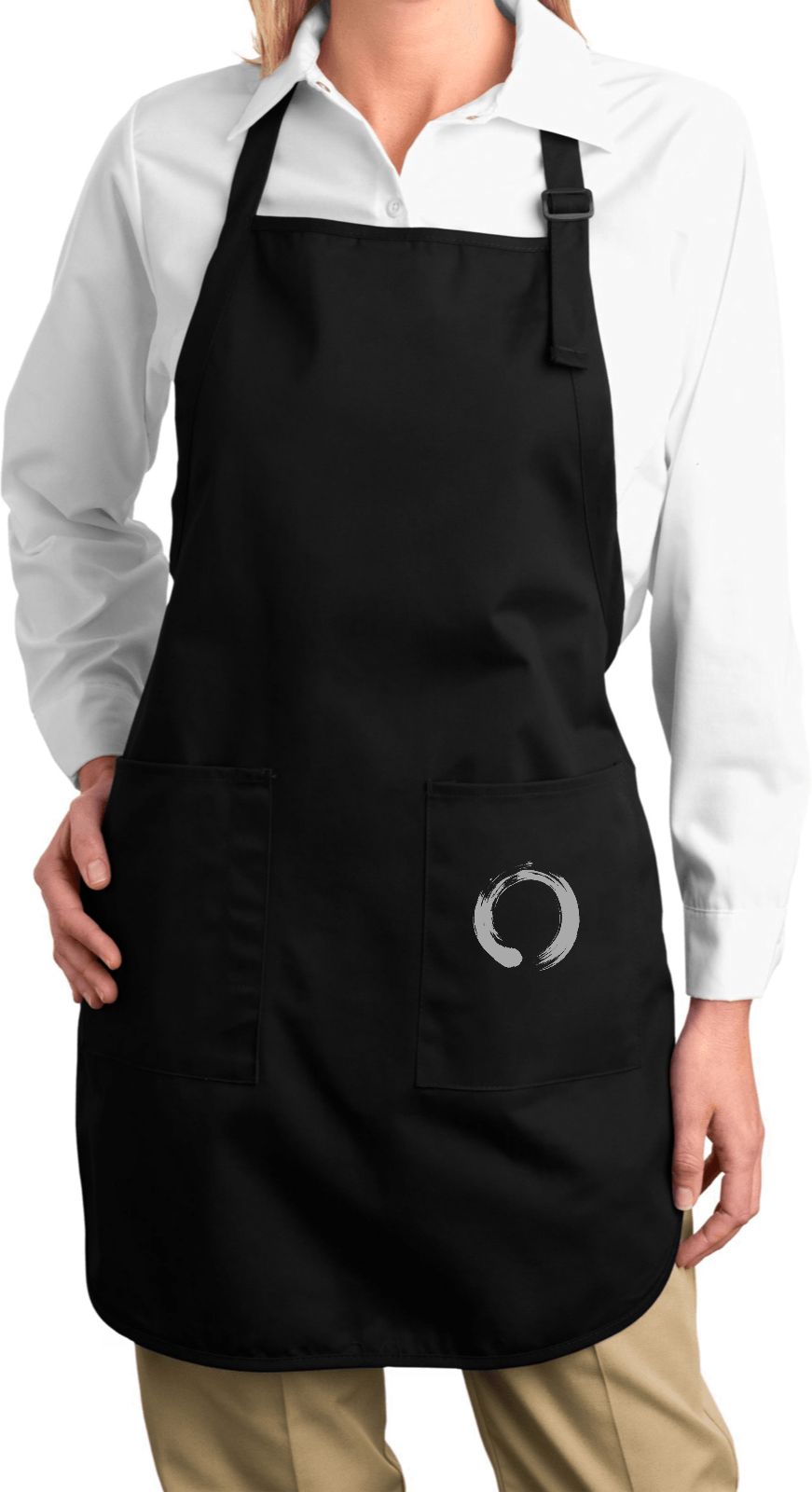 | | Ladies Yoga Apron Enso Bottom Print Full Length Apron with PocketsLadies Yoga Apron Enso Bottom Print Full Length Apron with Pockets A 100% cotton twill One Size Also available in colors Black, Coffee, Hunter Green, Maroon, Navy, Red, Royal, Stone, Washed Denim, and White |