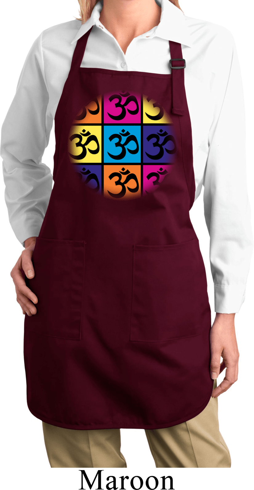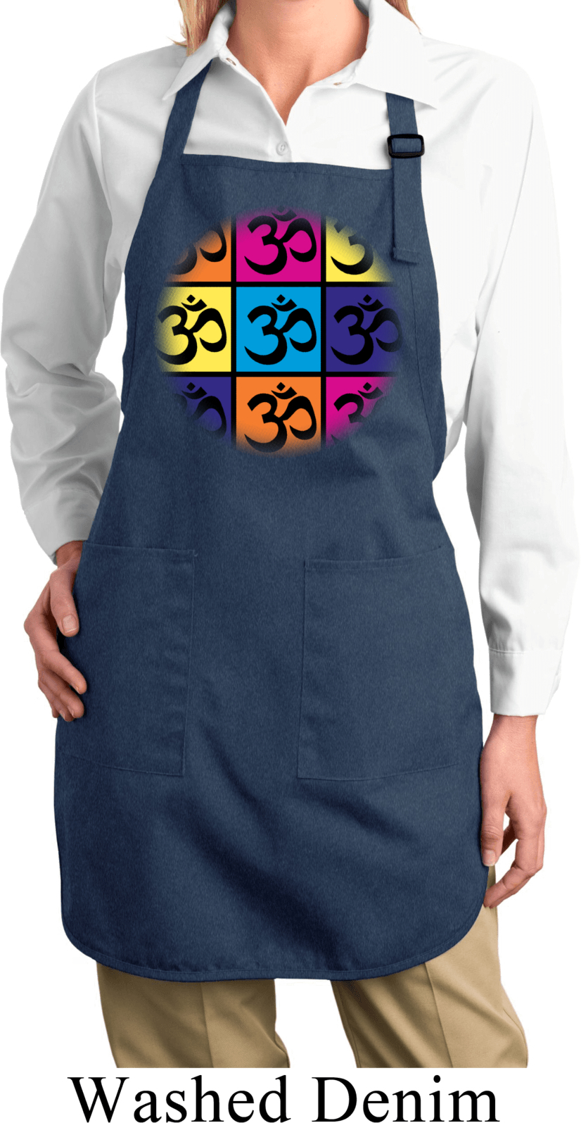 | | Ladies Yoga Apron Pop Art Om Full Length Apron with PocketsLadies Yoga Apron Pop Art Om Full Length Apron with Pockets A 100% cotton twill One Size Also available in colors Black, Coffee, Hunter Green, Maroon, Navy, Red, Royal, Stone, Washed Denim, and White |