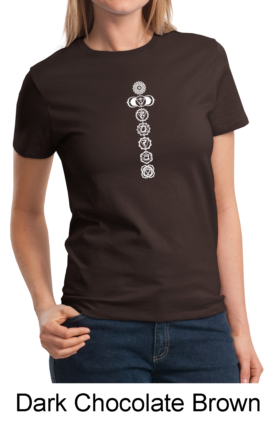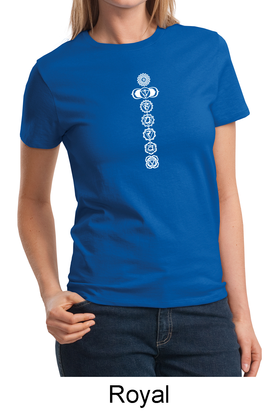 | | Ladies Yoga T-shirt 7 Chakras White Print TeeLadies Yoga T-shirt 7 Chakras White Print Tee Available in Ladies Small, Ladies Medium, Ladies Large, Ladies XL, Ladies 2XL, Ladies 3XL & Ladies 4XL Also available in colors Black, Charcoal, Dark Chocolate Brown, Navy, Purple, Red, Royal, and Sangria ![]() |