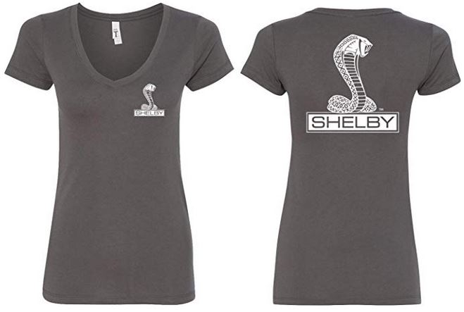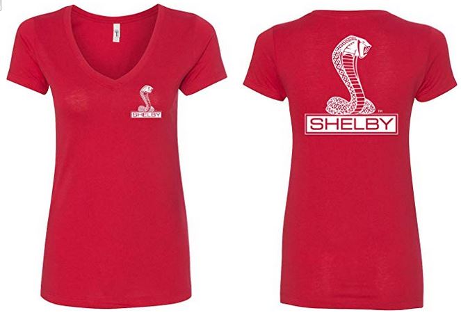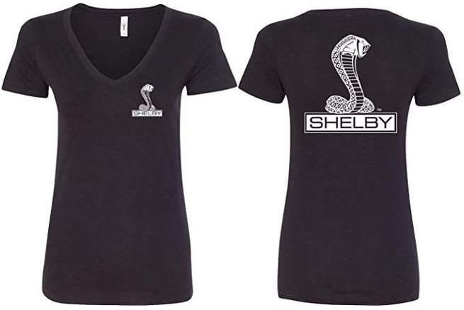 | | Ladies Ford Mustang Shelby Cobra V-Neck Tee - Front and Back PrintThis fabulous womens Shelby vee neck is printed on both the front and the back! 60% combed ringspun cotton/40% polyester Ultra-lightweight Slim fit Officially licensed by Ford Motor Company ![]() |