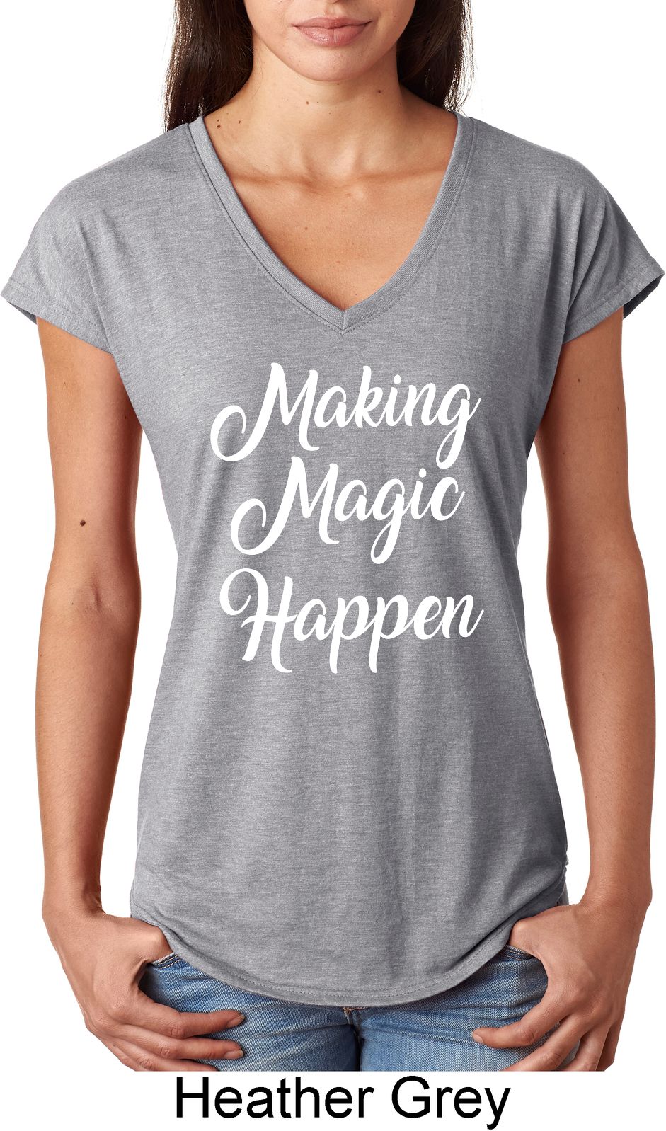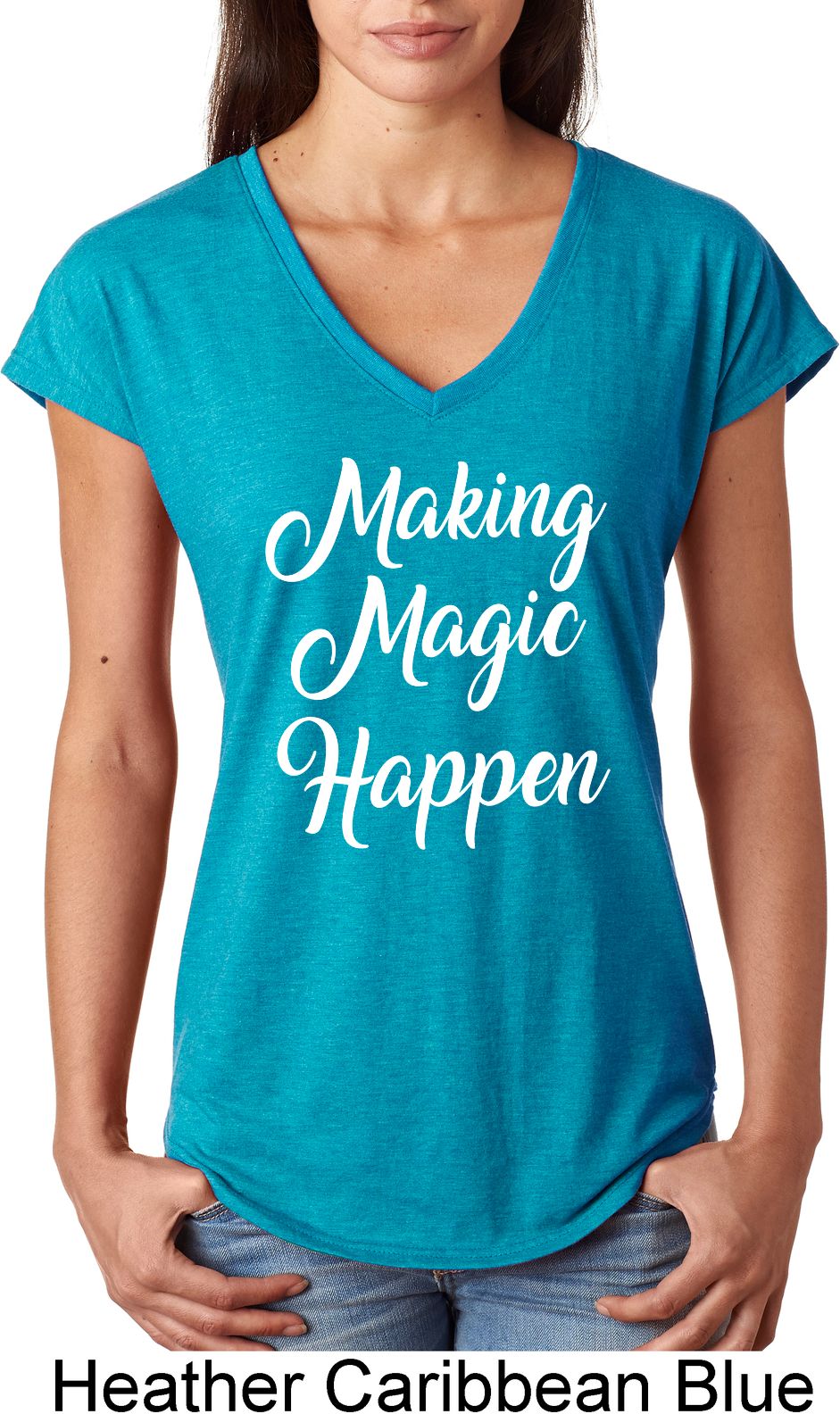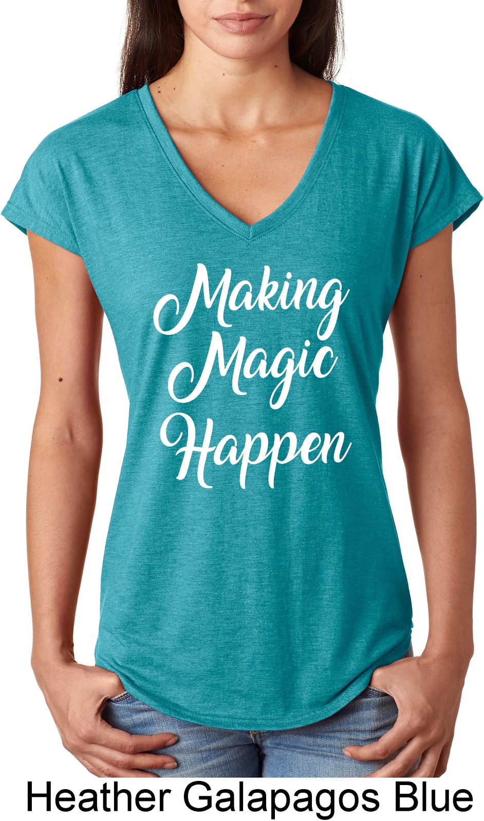 | | Making Magic Happen White Print Ladies Tri Blend V-Neck ShirtMaking Magic Happen White Print Ladies Tri Blend V-Neck Shirt Share your positivity with others with the great saying Making Magic Happen A poly/cotton/rayon blend Available in Ladies Small, Ladies Medium, Ladies Large, Ladies XL & Ladies 2XL Also available in colors Black, Heather Aubergine, Heather Caribbean, Heather Dark Green, Heather Dark Grey, Heather Galapagos, Heather Green, Heather Grey, Heather Orange, Heather Purple, Heather Red, and Raspberry |