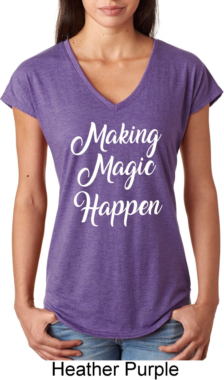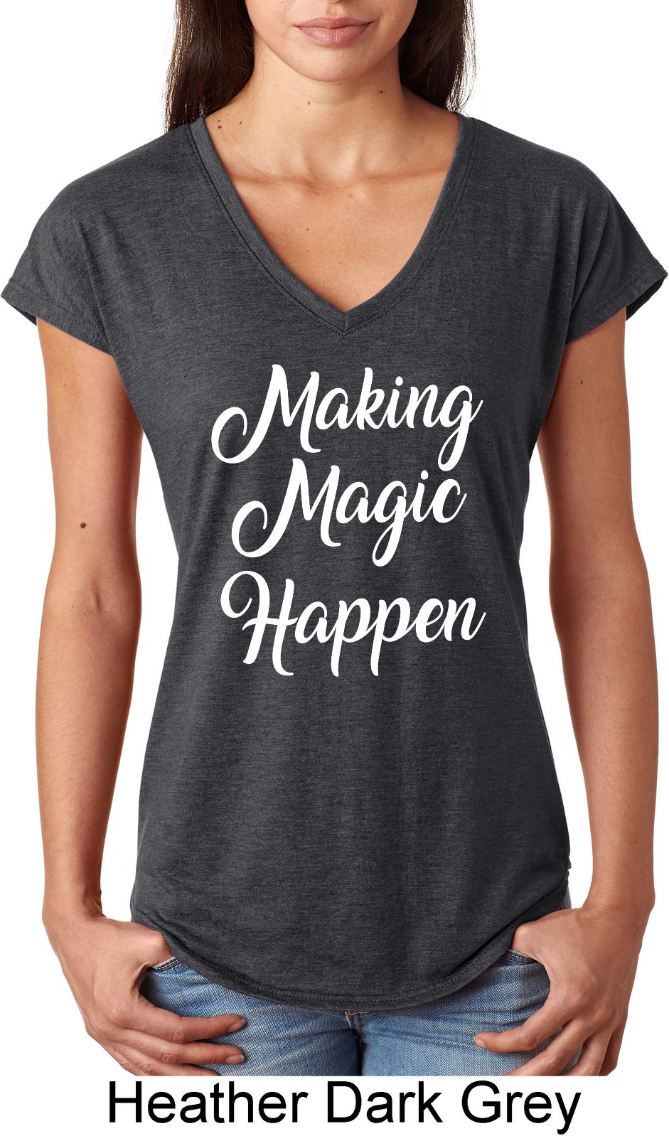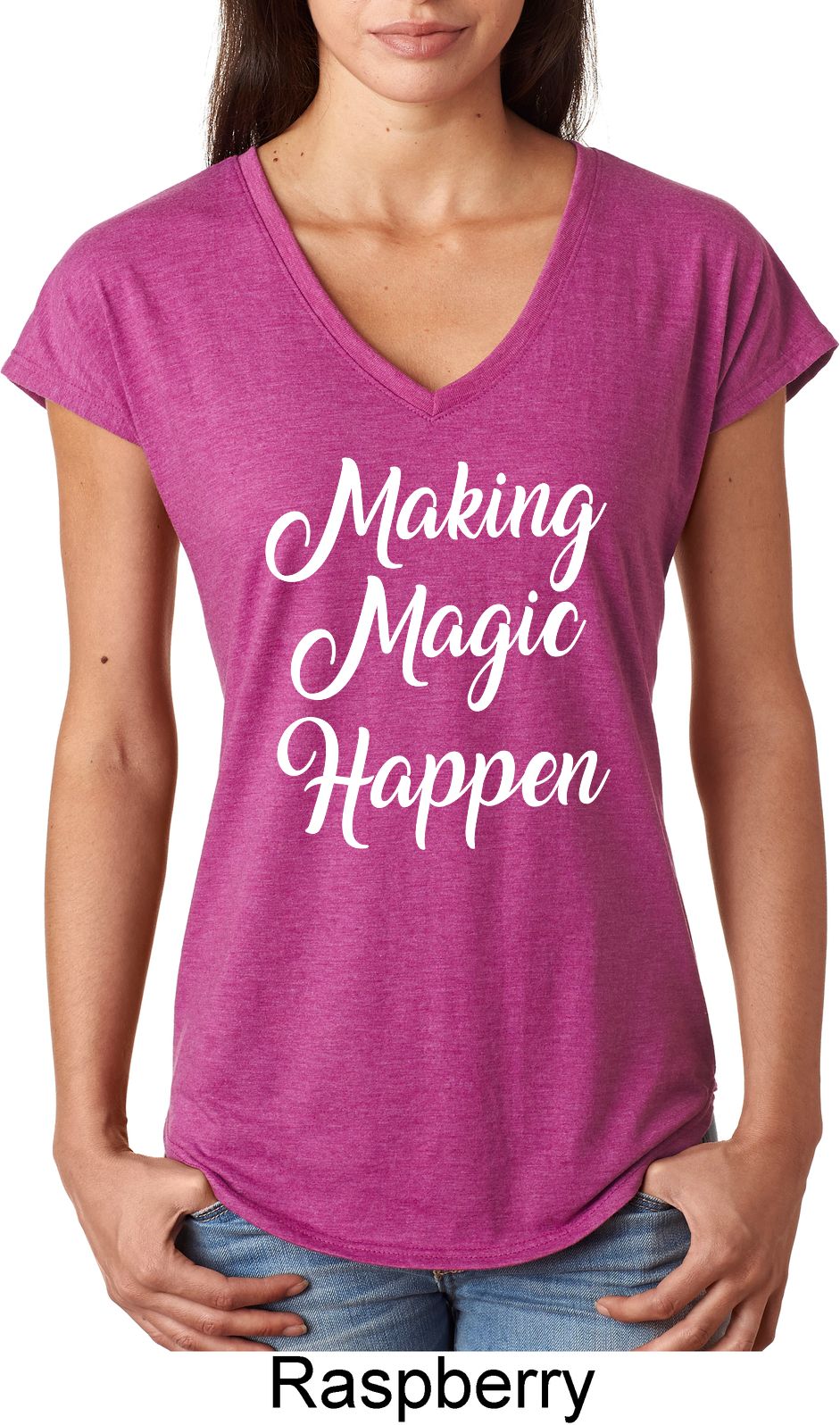 | | Making Magic Happen White Print Ladies Tri Blend V-Neck ShirtMaking Magic Happen White Print Ladies Tri Blend V-Neck Shirt Share your positivity with others with the great saying Making Magic Happen A poly/cotton/rayon blend Available in Ladies Small, Ladies Medium, Ladies Large, Ladies XL & Ladies 2XL Also available in colors Black, Heather Aubergine, Heather Caribbean, Heather Dark Green, Heather Dark Grey, Heather Galapagos, Heather Green, Heather Grey, Heather Orange, Heather Purple, Heather Red, and Raspberry |
