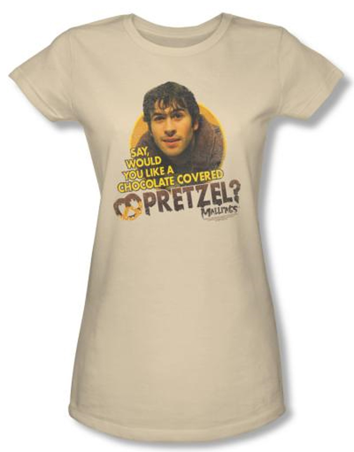 Mallrats Juniors T-shirt Movie Pretzels Cream Tee Shirt. I love me some Chocolate Covered Pretzel featured here on this t-shirt.