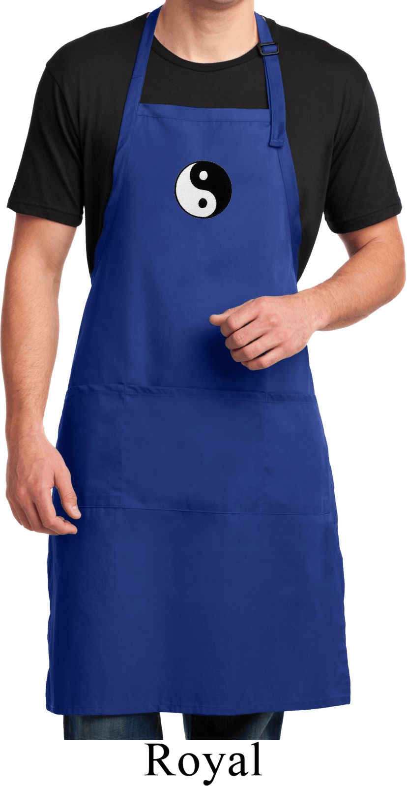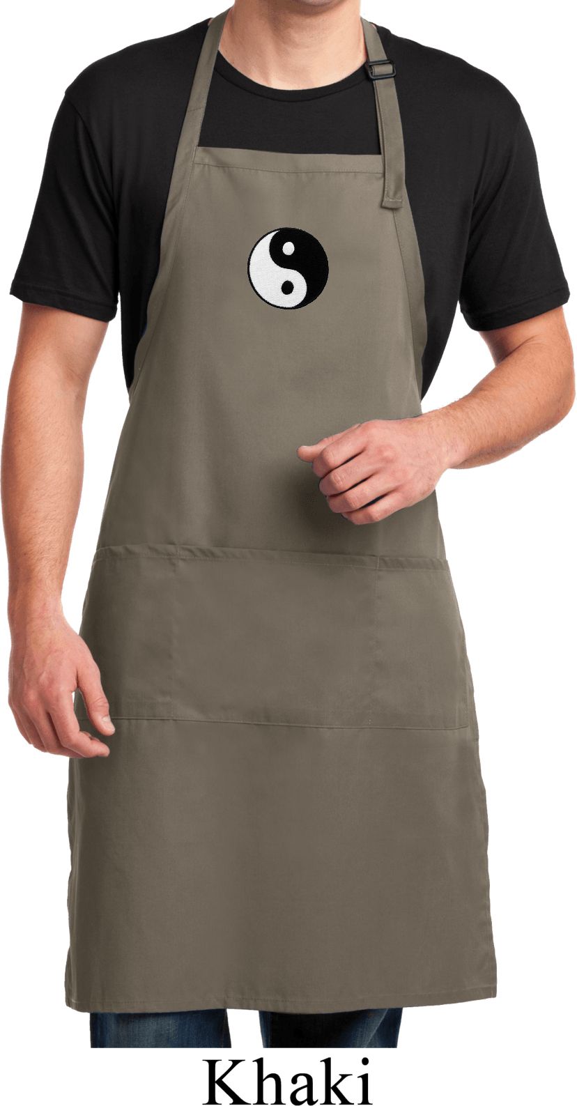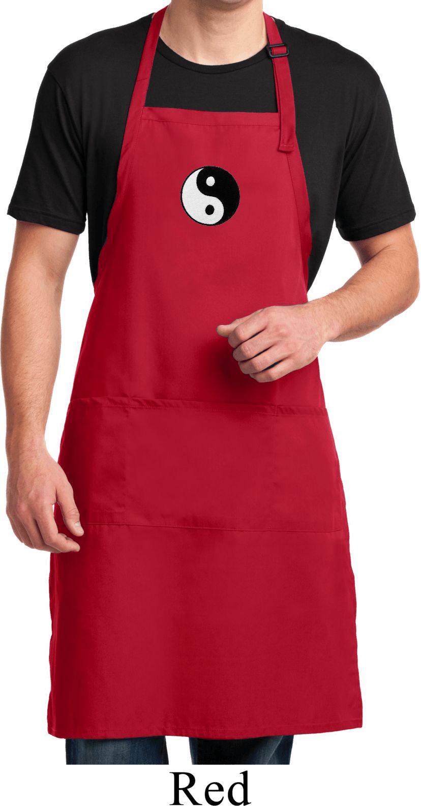 Mens Apron Yin Yang Patch Small Print Full Length Apron with Pockets