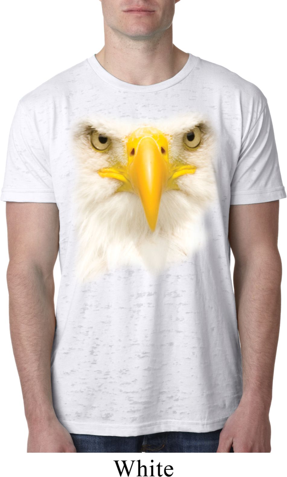 Mens Bald Eagle Shirt Big Bald Eagle Face White Burnout T-Shirt