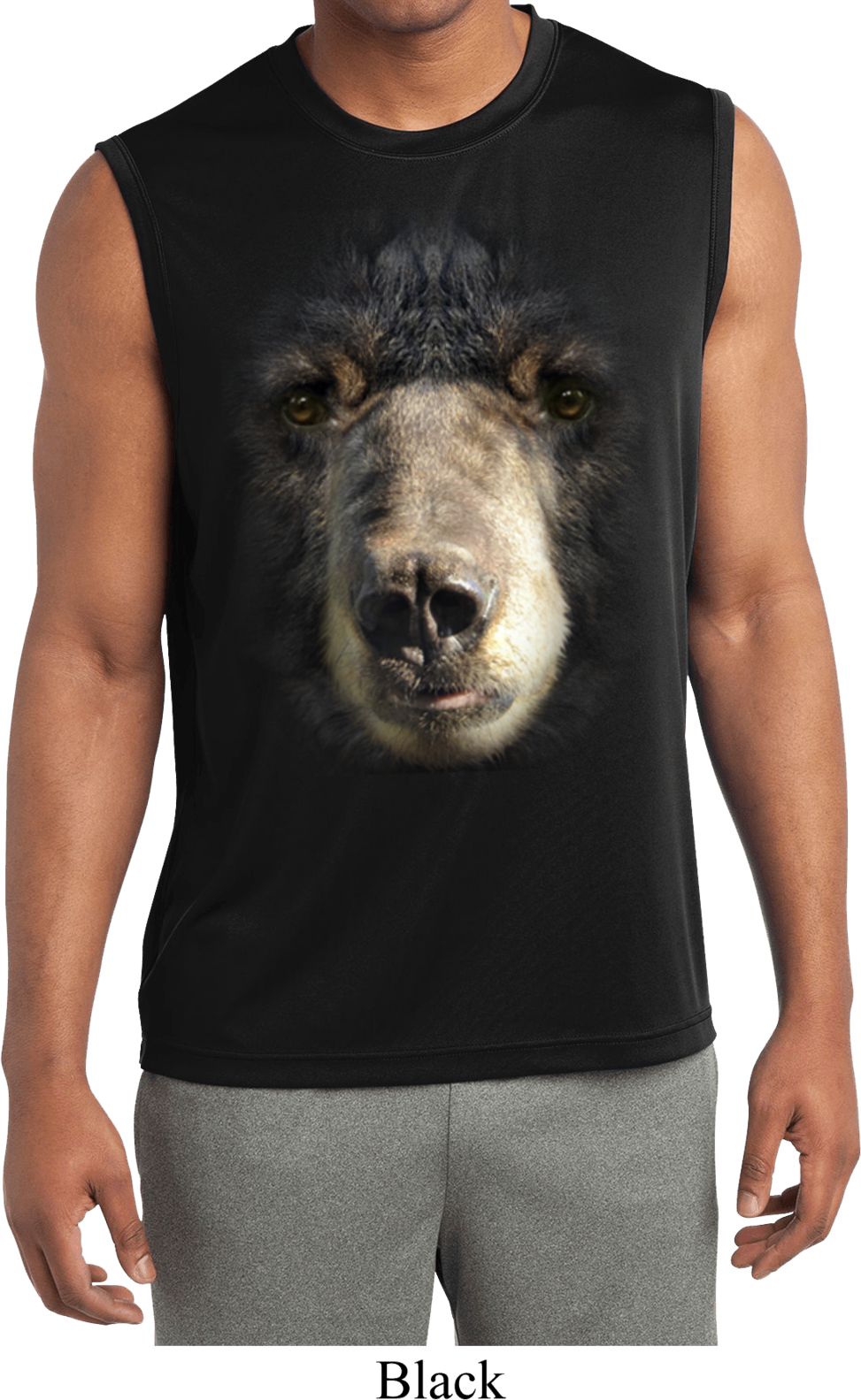 Mens Big Black Bear Face Sleeveless Moisture Wicking Tee T-Shirt