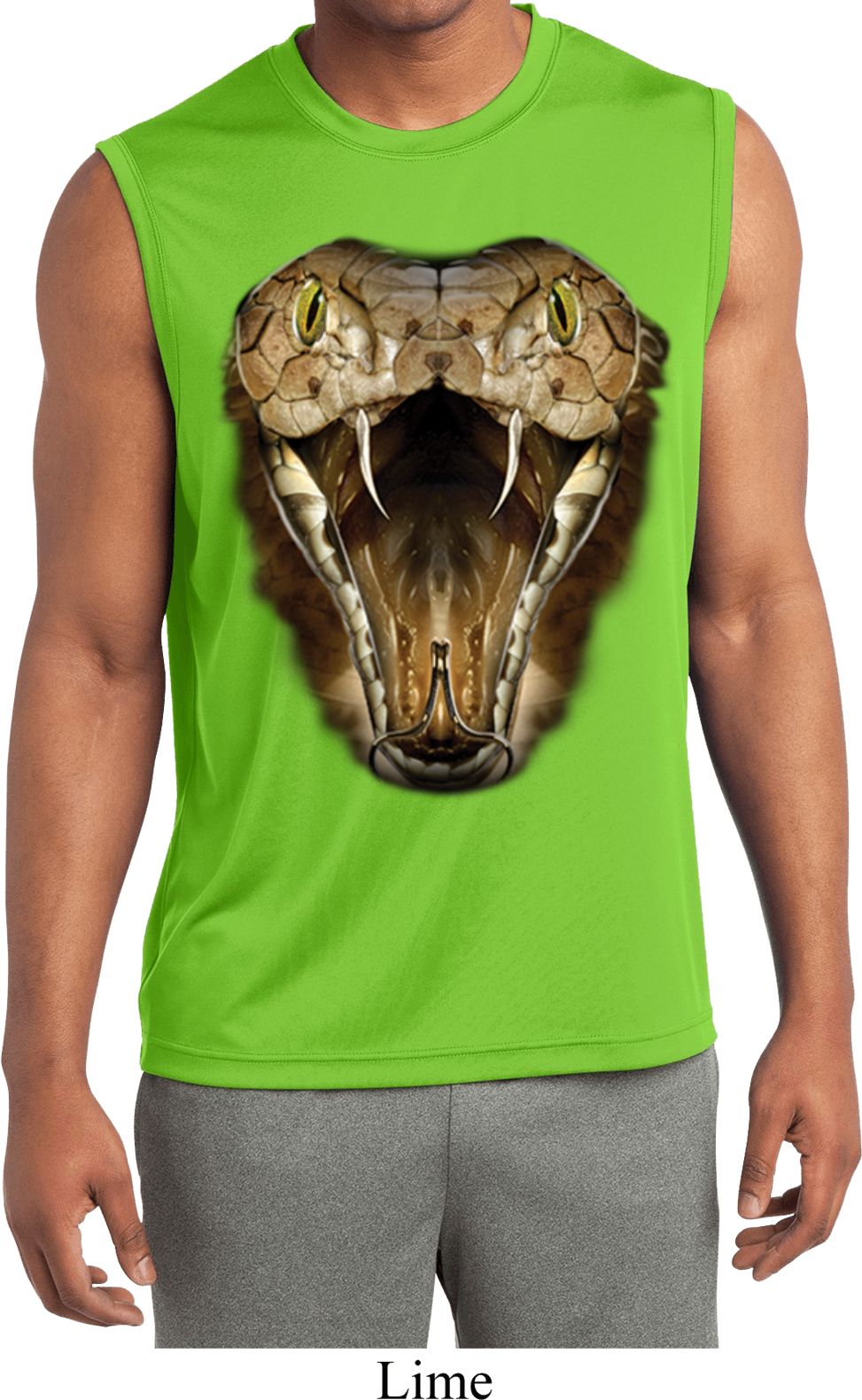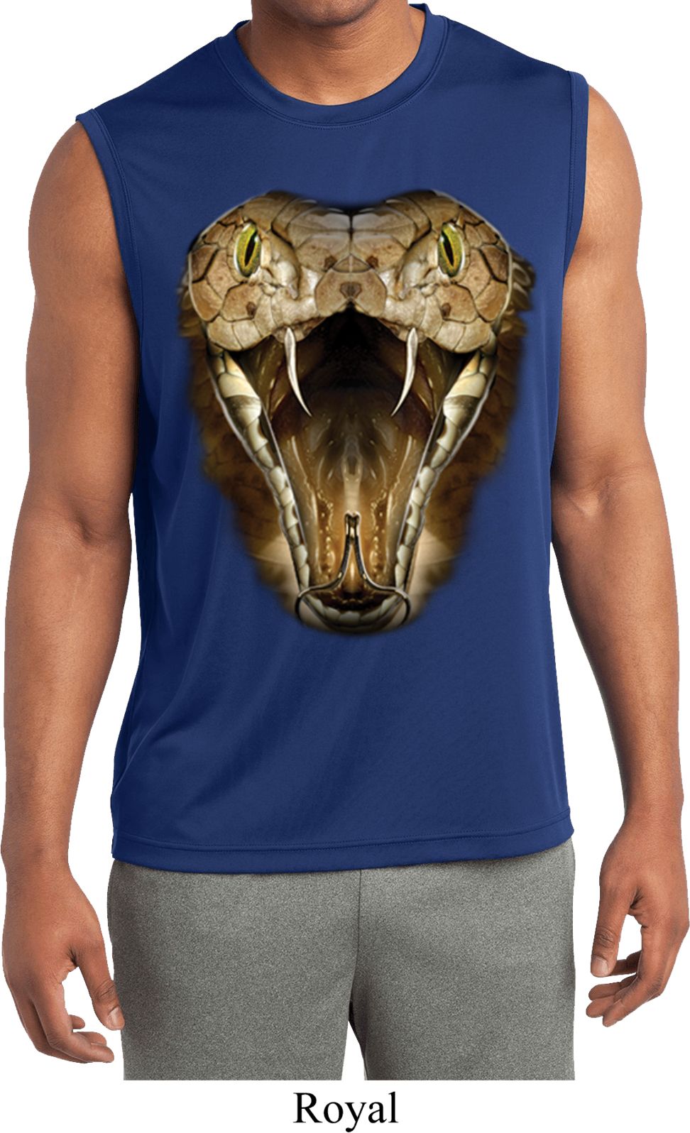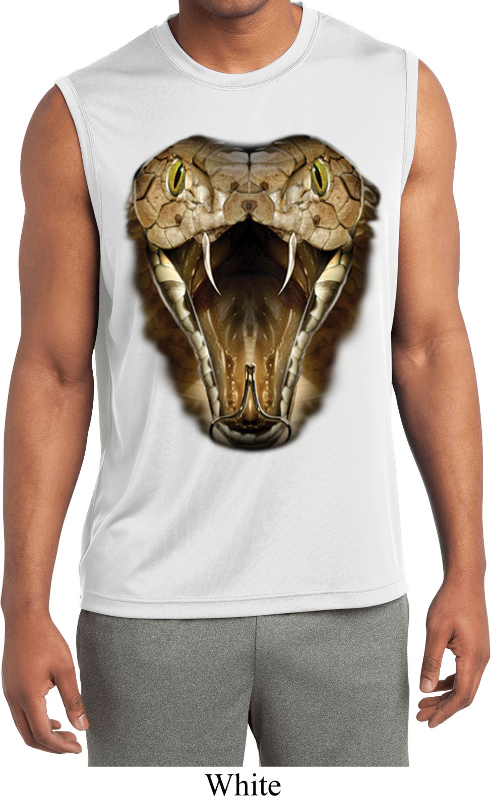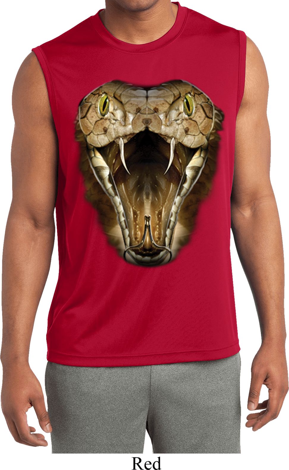| | Mens Big Cobra Snake Face Sleeveless Moisture Wicking Tee T-ShirtMens Big Cobra Snake Face Sleeveless Moisture Wicking Tee T-Shirt 100% polyester Available in Small, Medium, Large, XL, 2XL, 3XL & 4XL Also available in colors Black, Lime, Navy, Red, Royal, Silver, and White |
