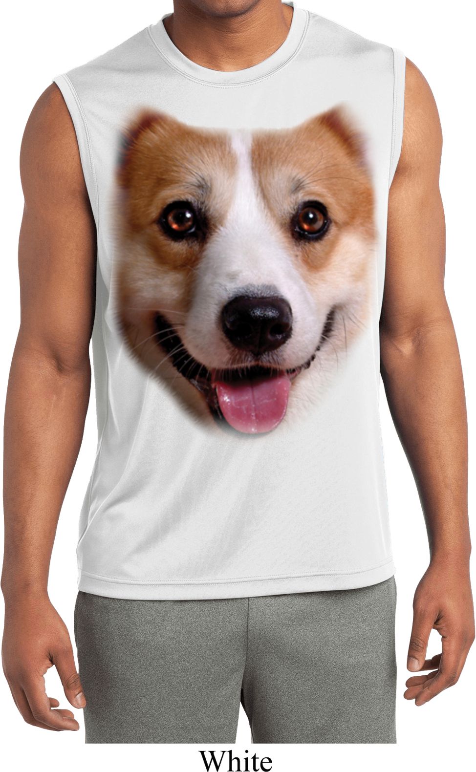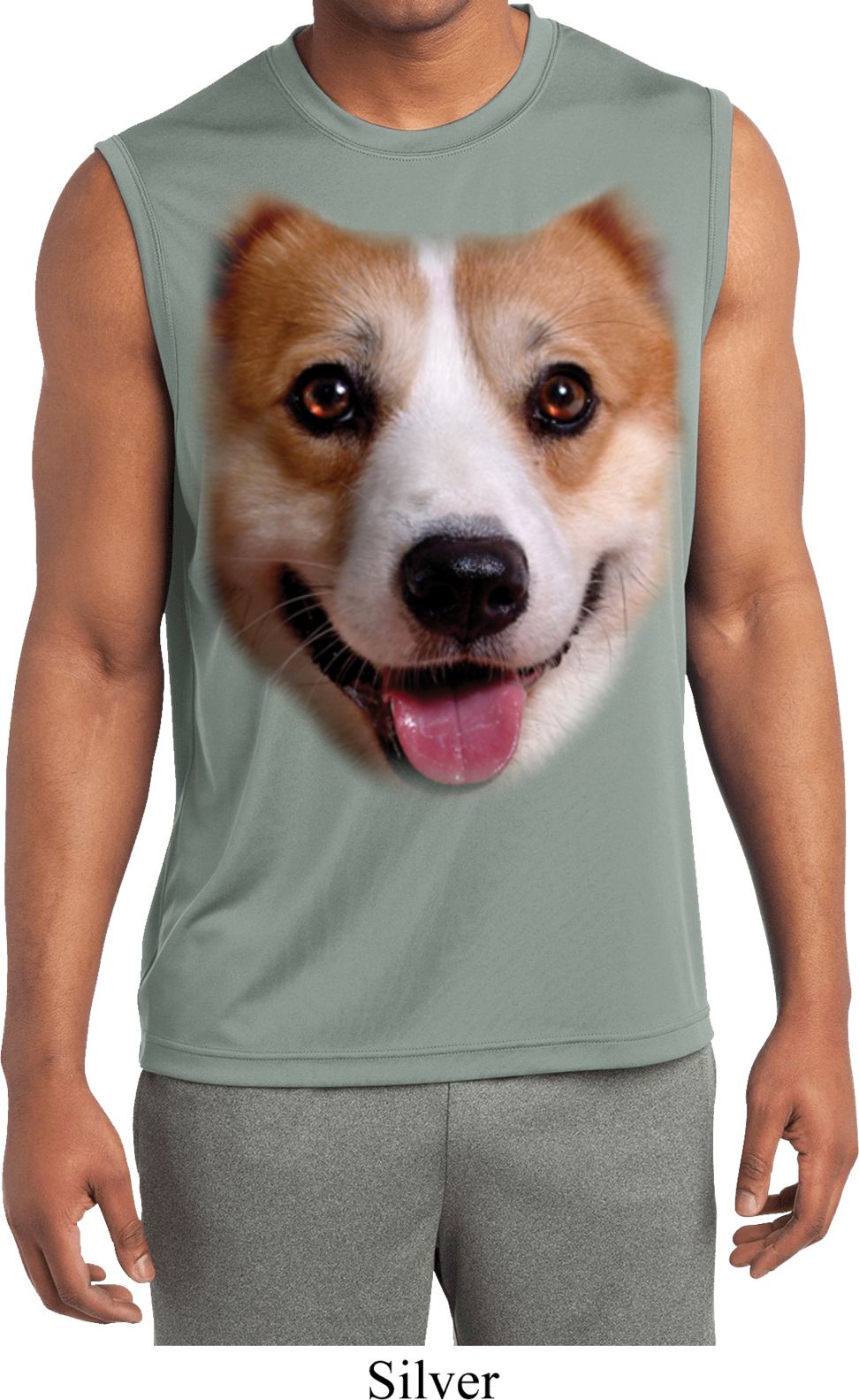 Mens Big Corgi Face Sleeveless Moisture Wicking Tee T-Shirt