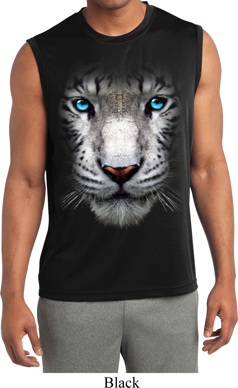 | | Mens Big White Tiger Face Sleeveless Moisture Wicking Tee T-ShirtMens Big White Tiger Face Sleeveless Moisture Wicking Tee T-Shirt 100% polyester Available in Small, Medium, Large, XL, 2XL, 3XL & 4XL Also available in colors Black, Lime, Navy, Red, Royal, Silver, and White |