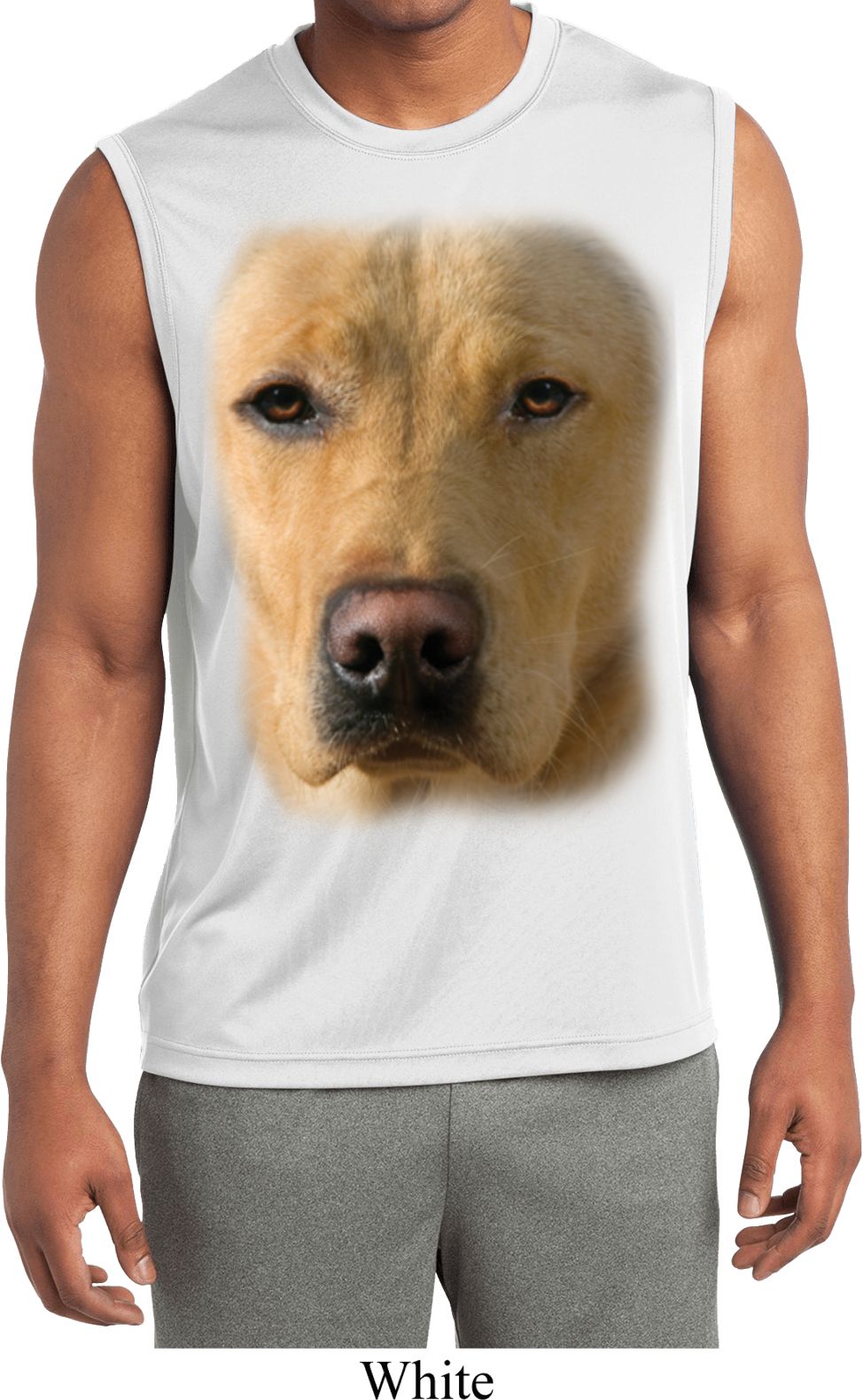 Mens Big Yellow Lab Face Sleeveless Moisture Wicking Tee T-Shirt